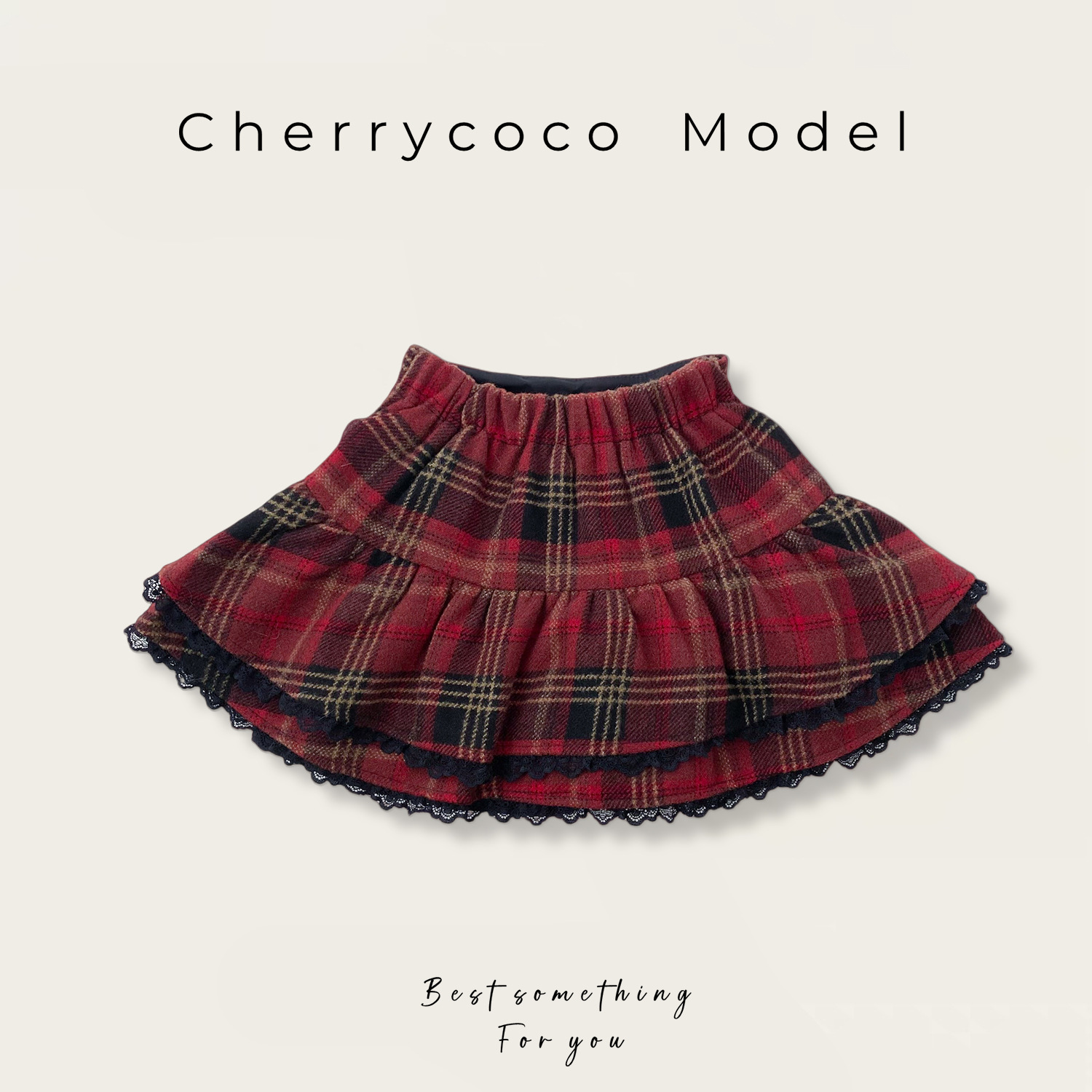 체리 코코 소녀 한국 스타일 새로운 기모 울 레이스 체크 무늬 스커트 우아한 케이크 스커트