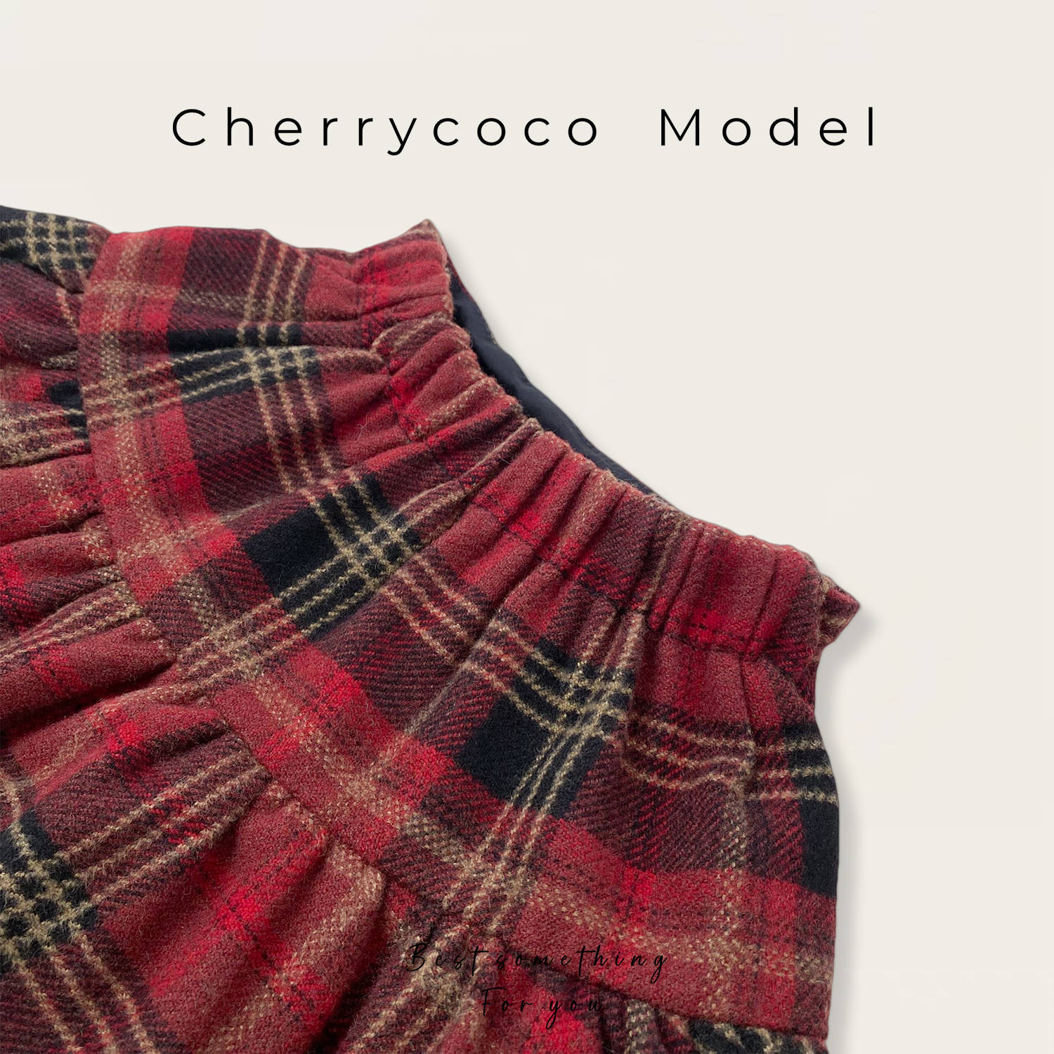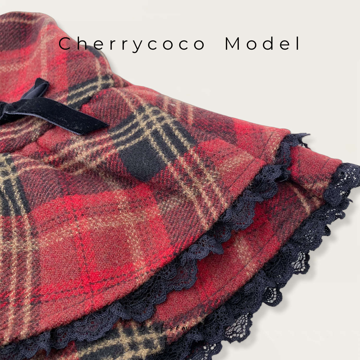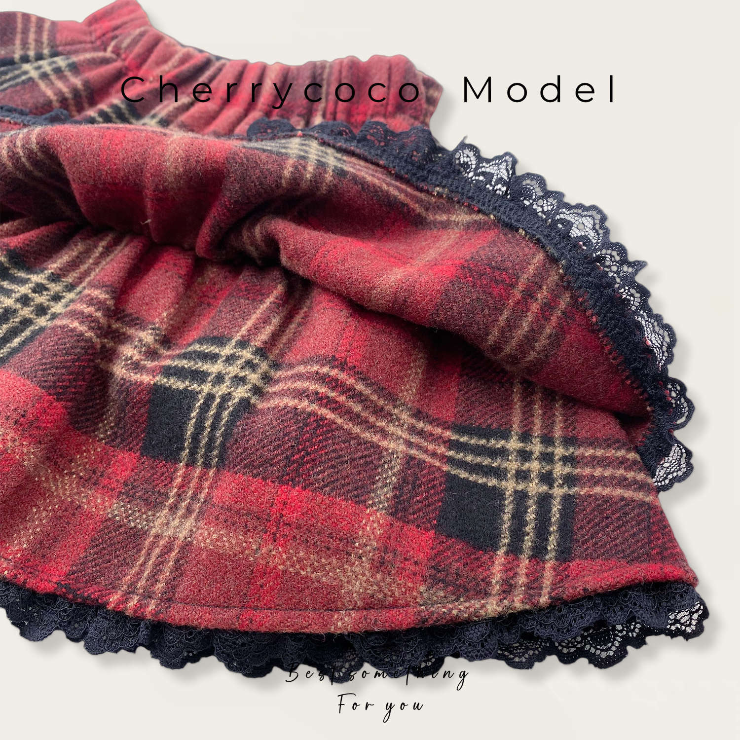 체리 코코 소녀 한국 스타일 새로운 기모 울 레이스 체크 무늬 스커트 우아한 케이크 스커트스토어 가기