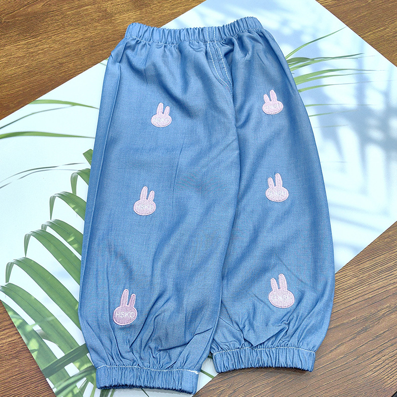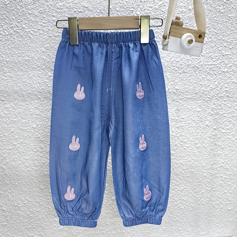 어린이 여름 얇은 아기 캐주얼 자수 통기성 느슨한 어린이 안티 모기 바지 토끼 청바지