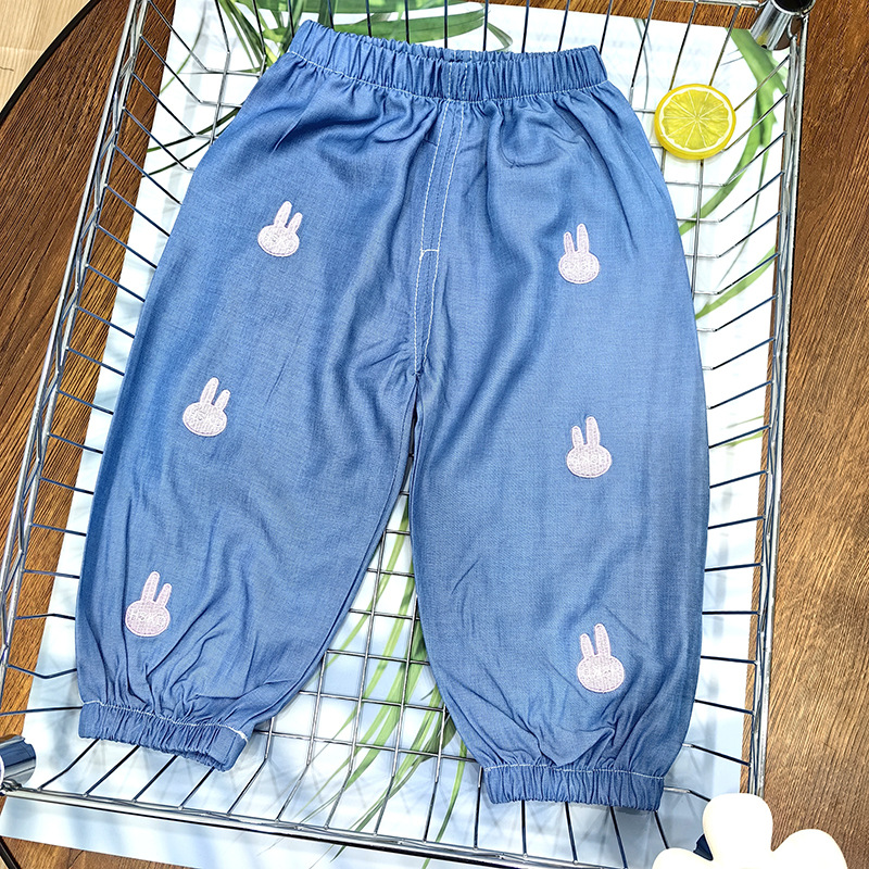 어린이 여름 얇은 아기 캐주얼 자수 통기성 느슨한 어린이 안티 모기 바지 토끼 청바지스토어 가기