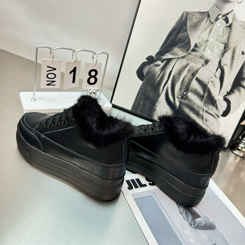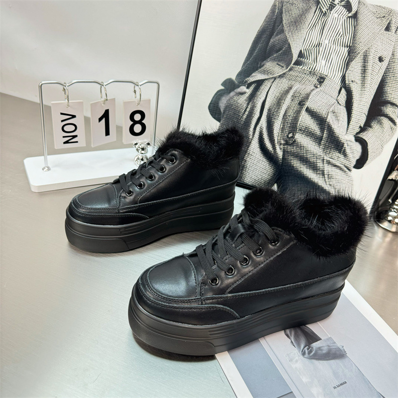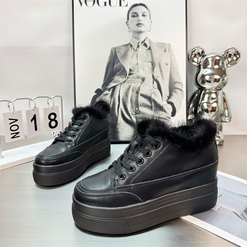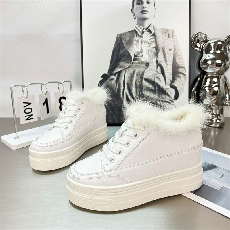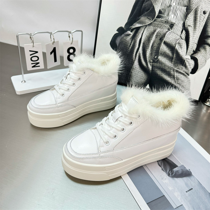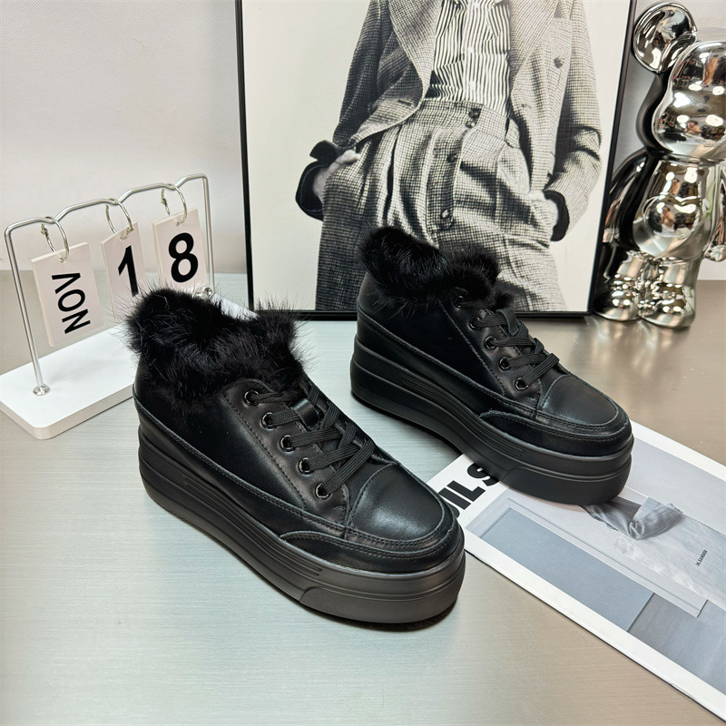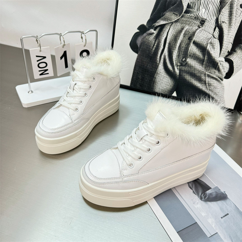 2024 마오 마오 신발 여성의 겨울 두꺼운 유일한 외부 착용 새로운 스타일 기모 내부 높이 코튼 신발 플랫폼 신발 정품 가죽 스노우 부츠 여성 신발스토어 가기