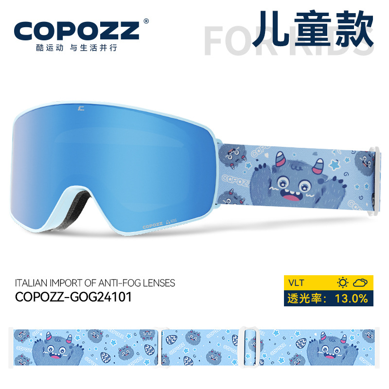 COPOZZ 어린이 스키 고글 이중층 안개 방지 자기 흡입 원통형 카드 근시 등산 방풍 스키 안경
