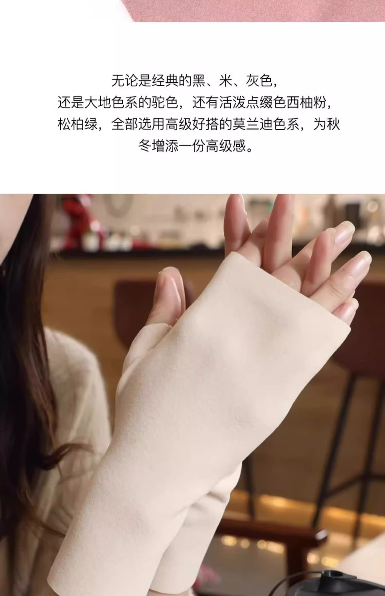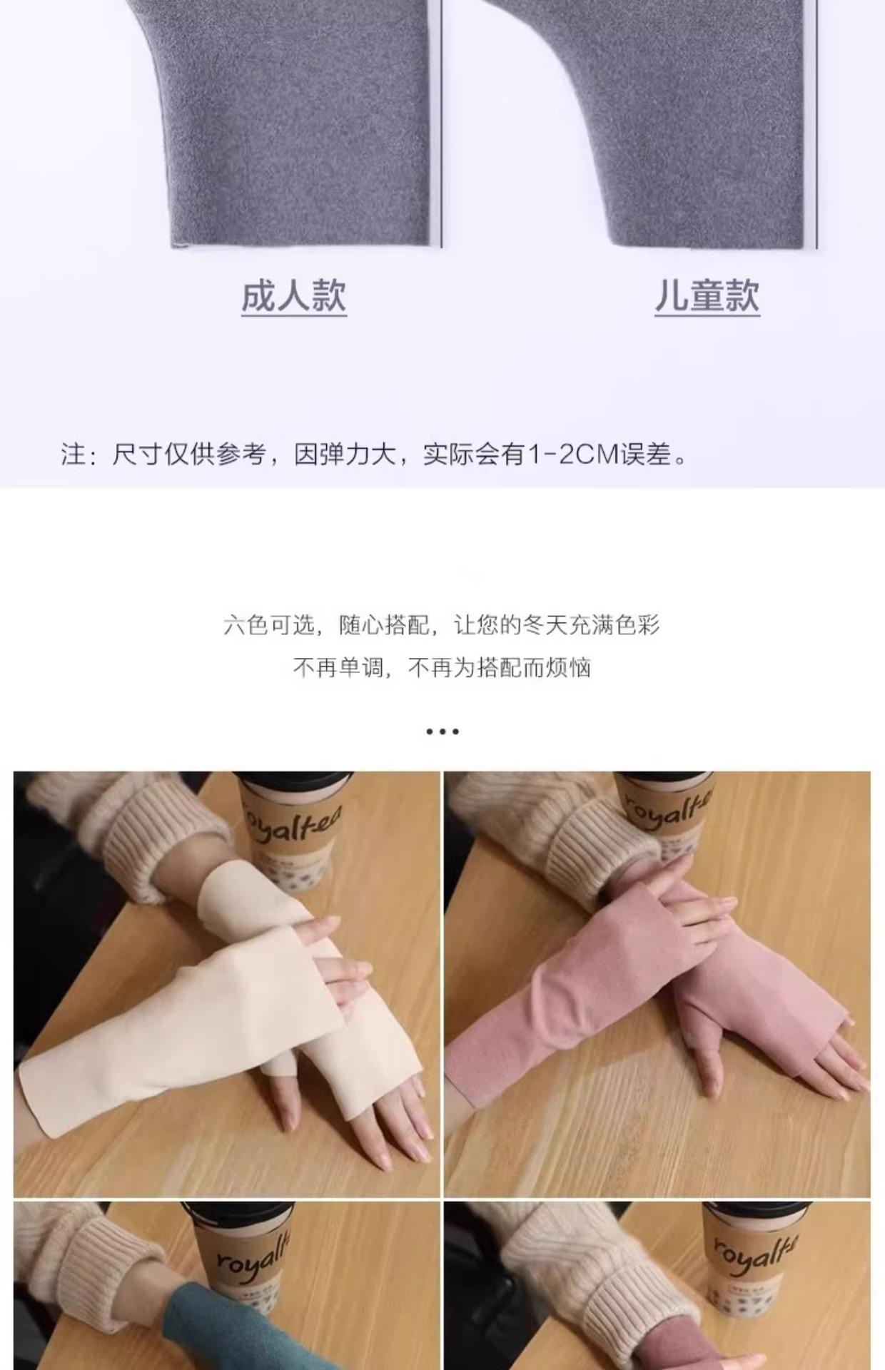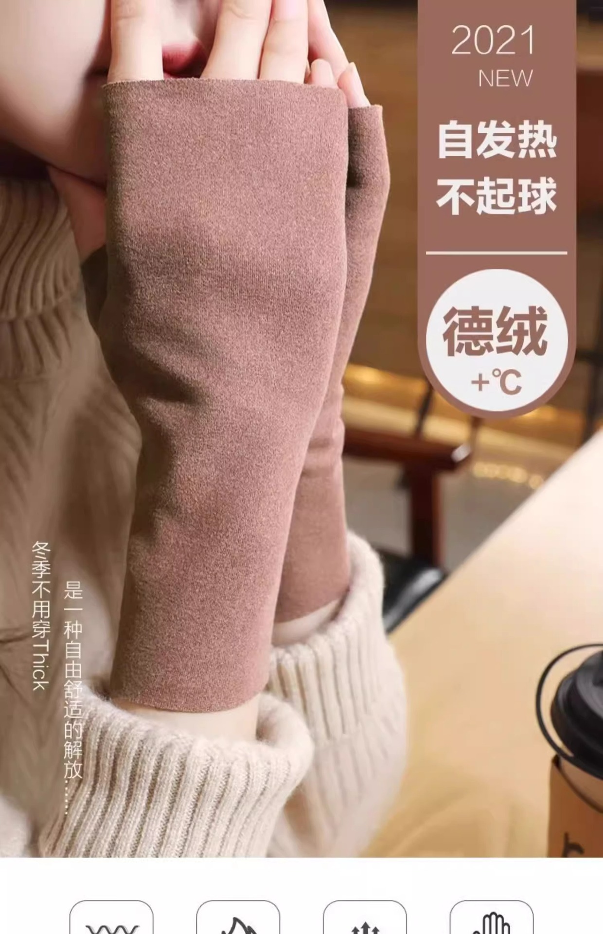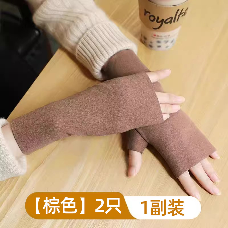 De Rong 하프 핑거 장갑 여성의 겨울 반 누설 손가락 기모 따뜻한 피부 친화적 인 냉장 운전 학생 터치 스크린 쓰기