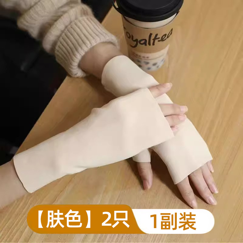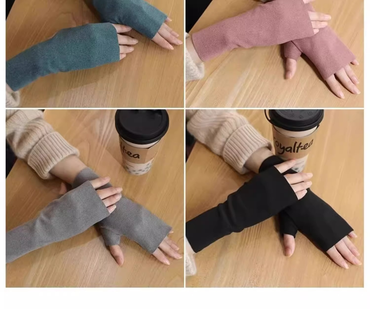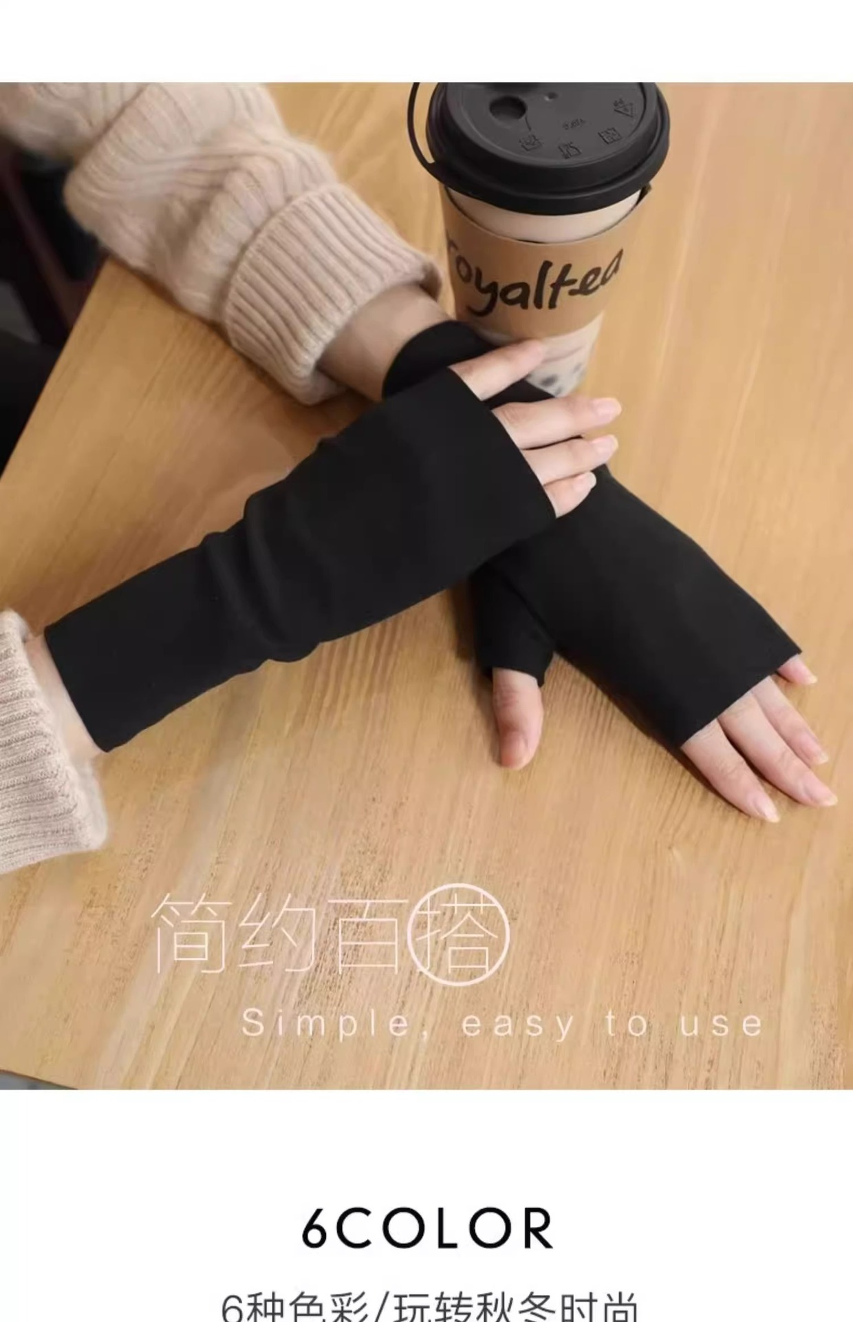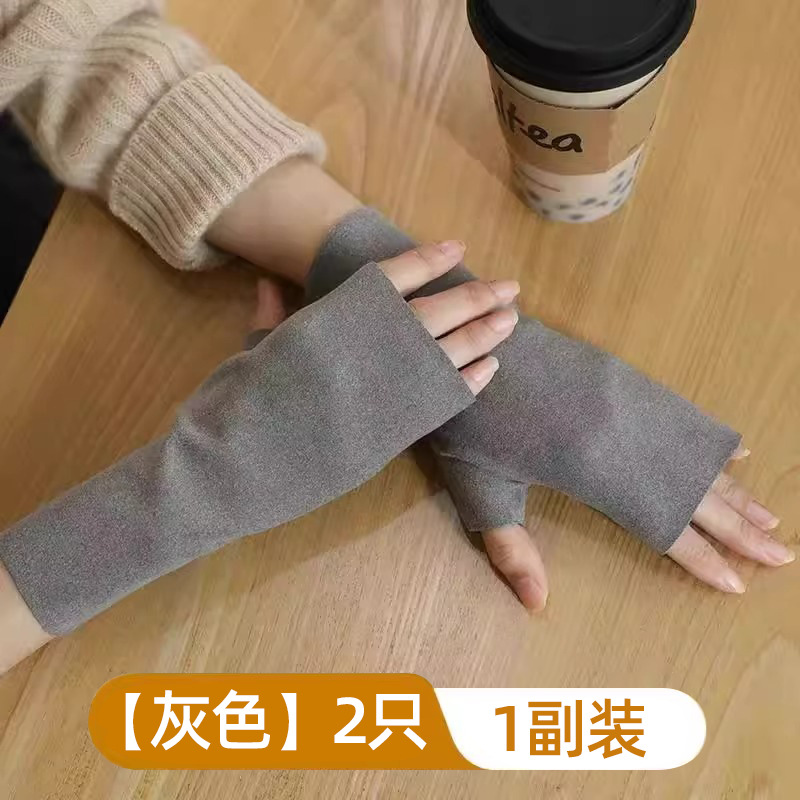 De Rong 하프 핑거 장갑 여성의 겨울 반 누설 손가락 기모 따뜻한 피부 친화적 인 냉장 운전 학생 터치 스크린 쓰기
