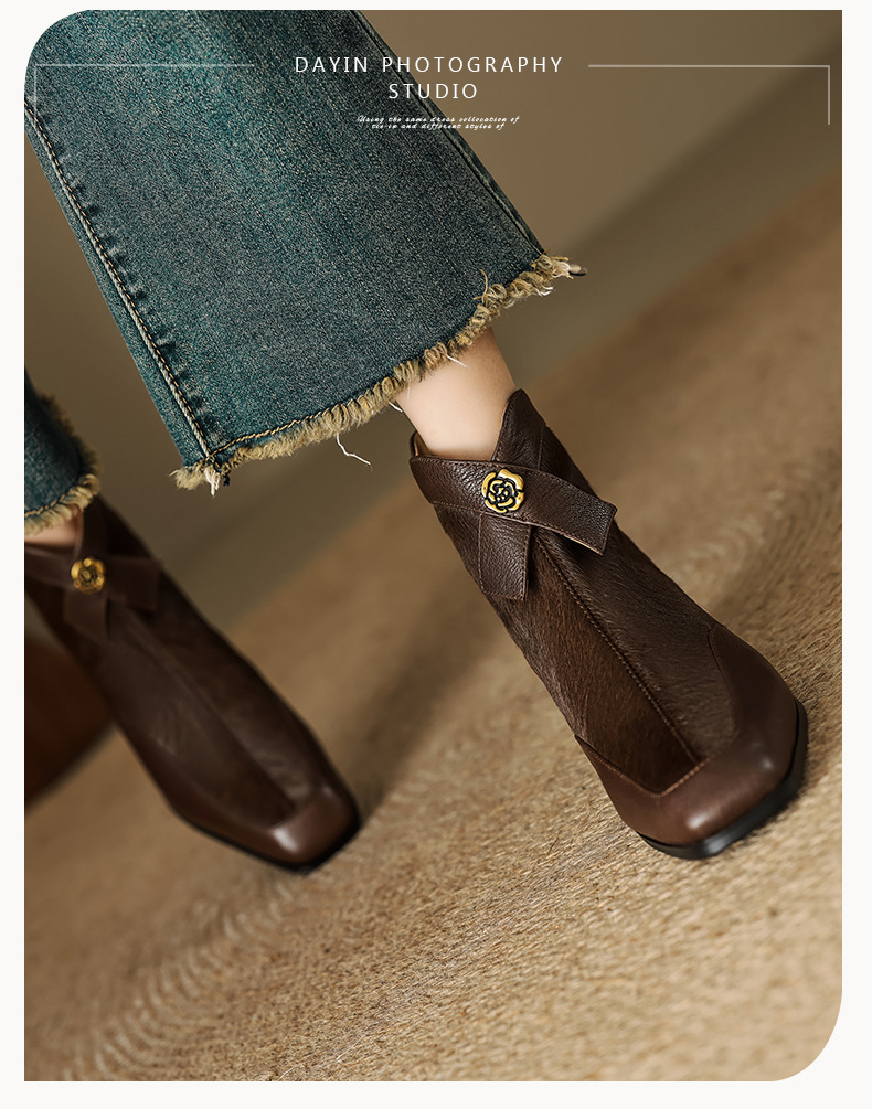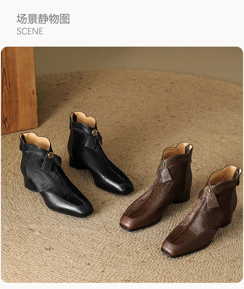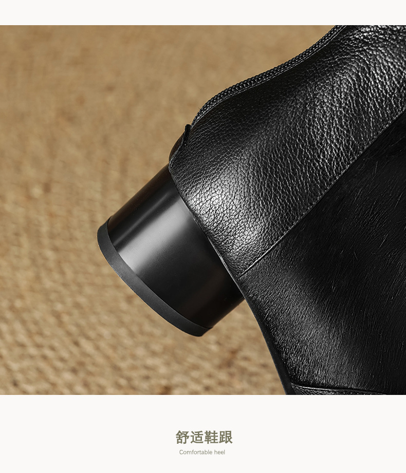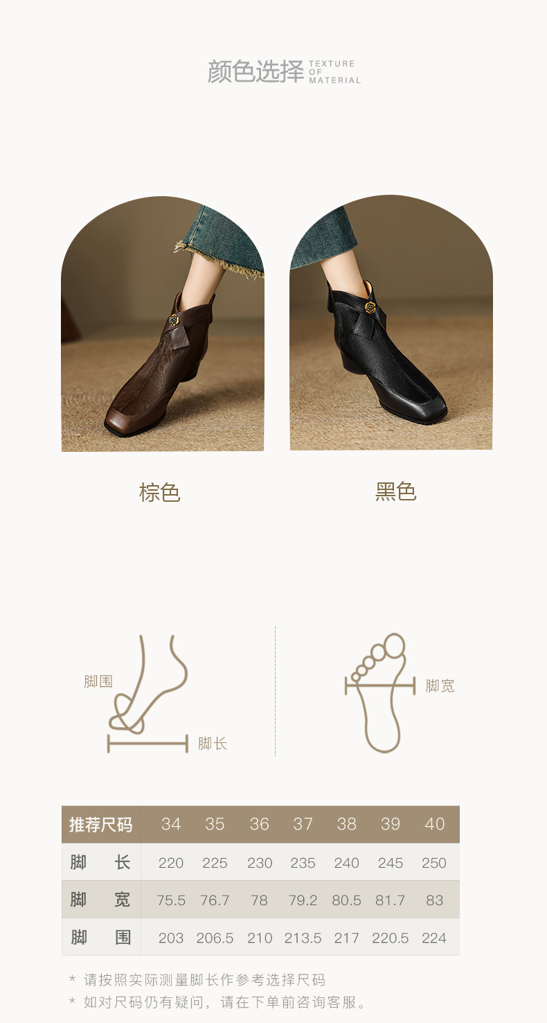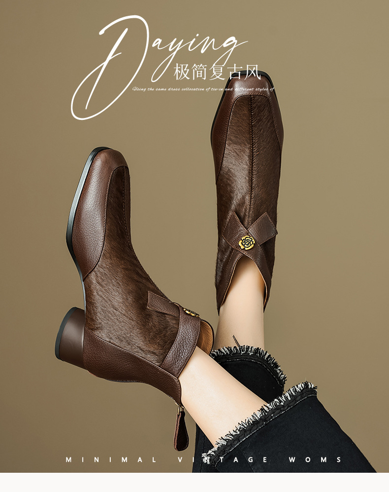 거대한 좋은 짧은 부츠 여성의 봄과 가을 싱글 부츠 2024 새로운 사각형 활 미드 힐 두꺼운 가죽 백 지퍼 기모스토어 가기