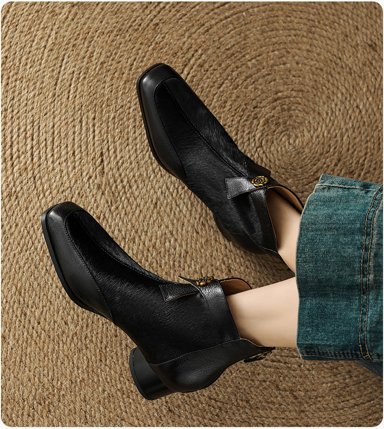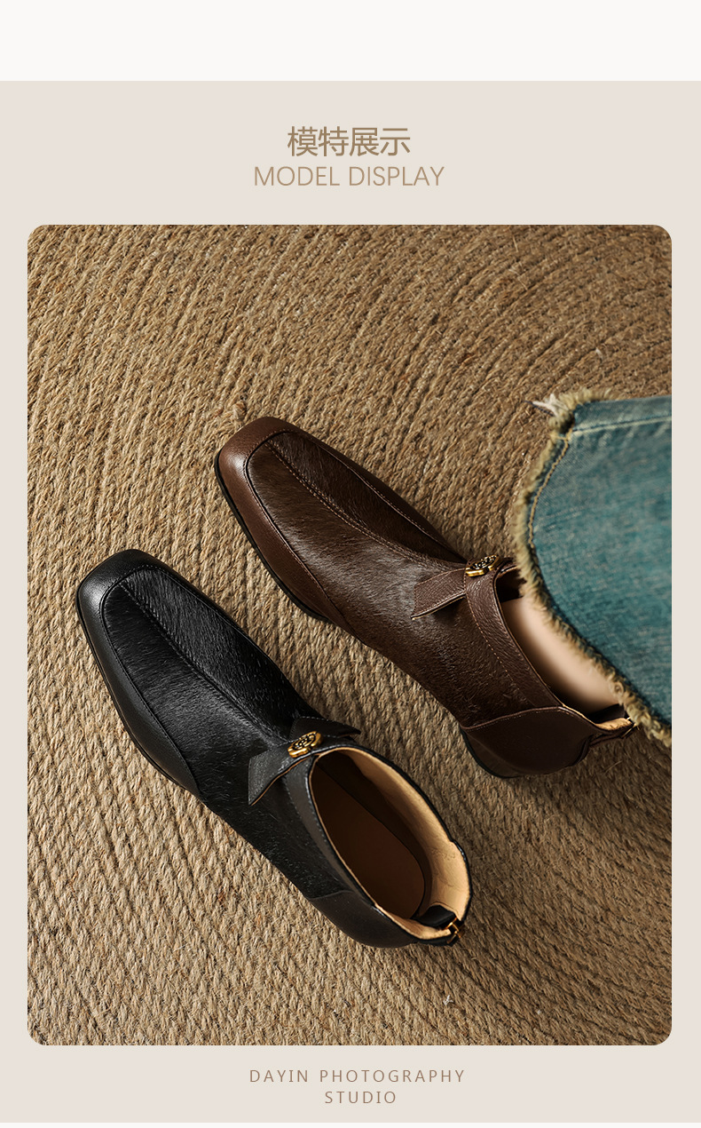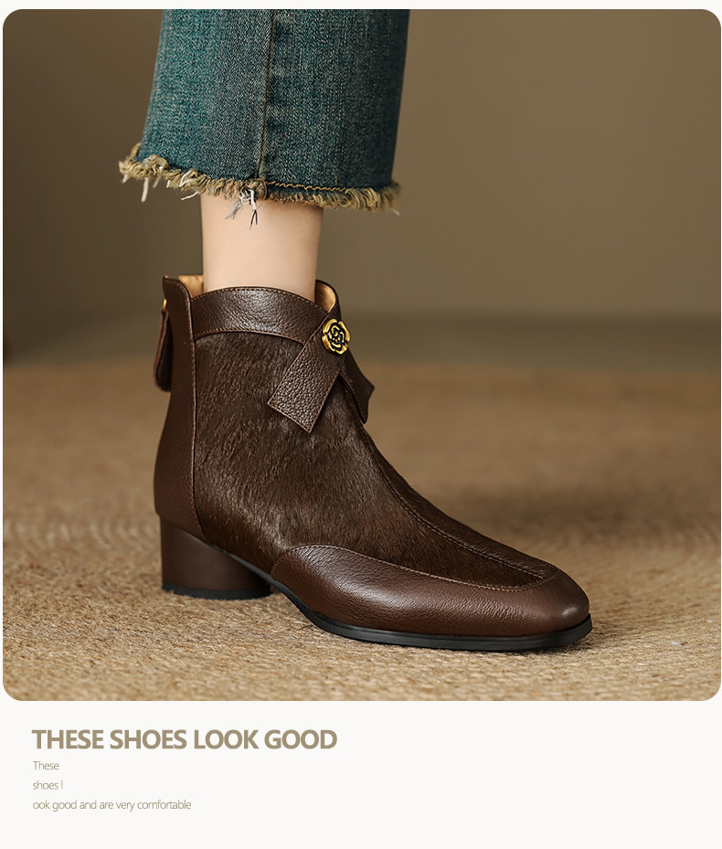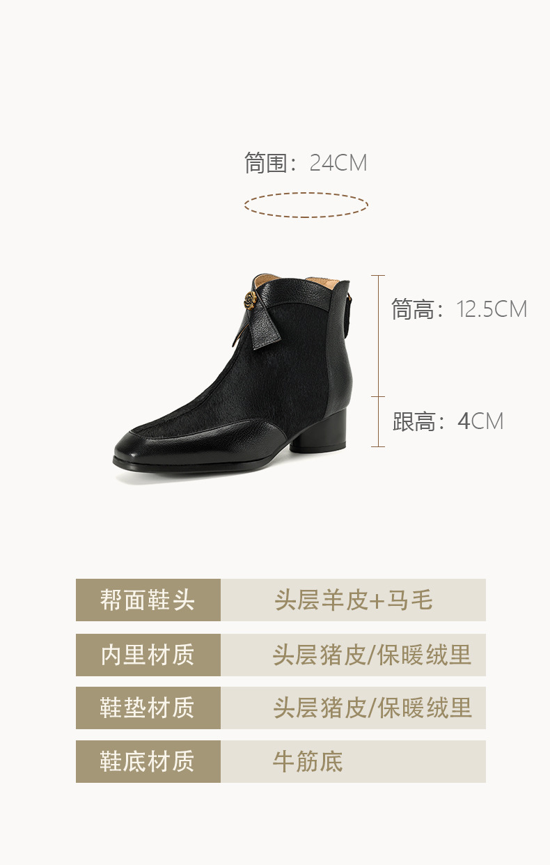 거대한 좋은 짧은 부츠 여성의 봄과 가을 싱글 부츠 2024 새로운 사각형 활 미드 힐 두꺼운 가죽 백 지퍼 기모스토어 가기