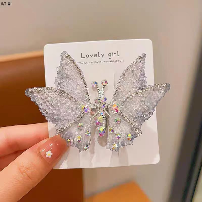 어린이 움직이는 나비 머리핀 소녀 공주 슈퍼 요정 3 차원 라인스톤 쌍 아기 머리핀 작은 소녀 헤어 액세서리