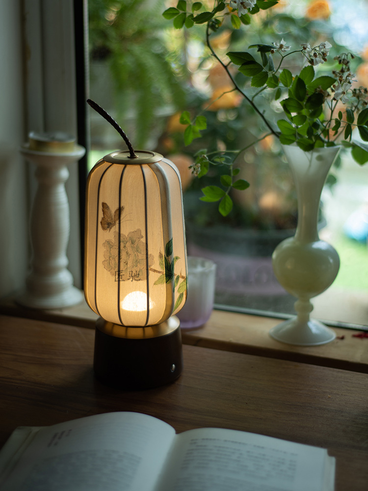 • 옅은 고풍스러운 색감의 바탕에 손으로 그린 나비 연꽃 무늬 + USB + 터치 스위치