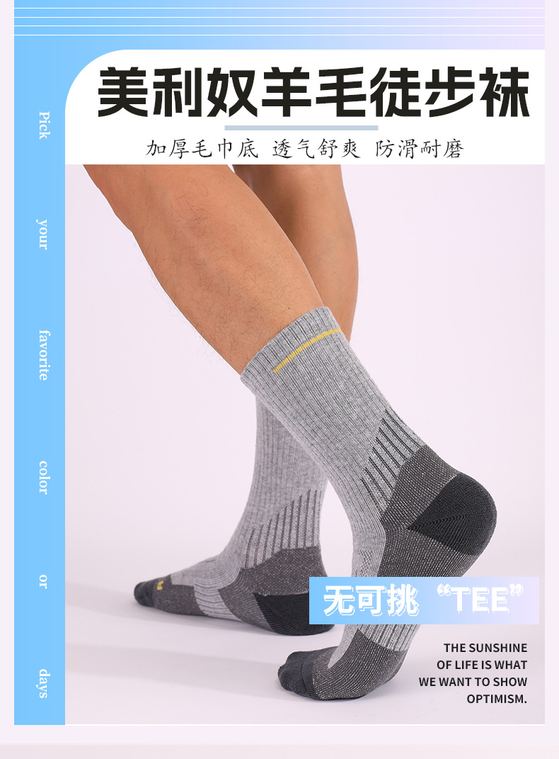 메리노 울 양말 따뜻한 두꺼운 야외 전문 스포츠 양말 비 슬립 땀 흡수 통기성 미드 튜브 하이킹 양말
