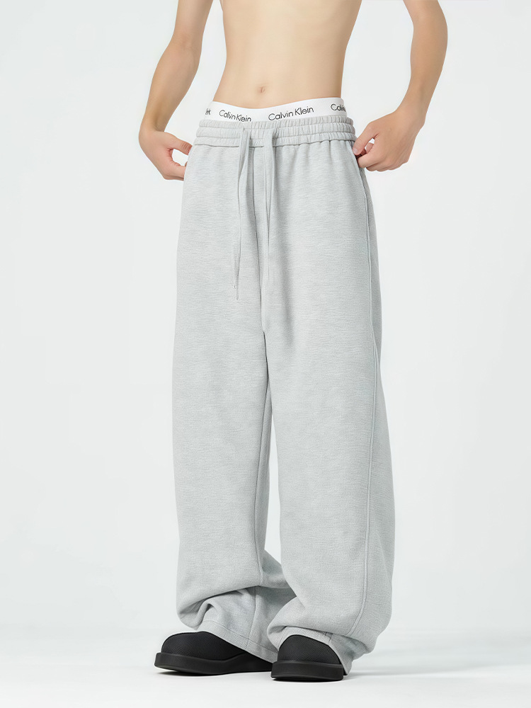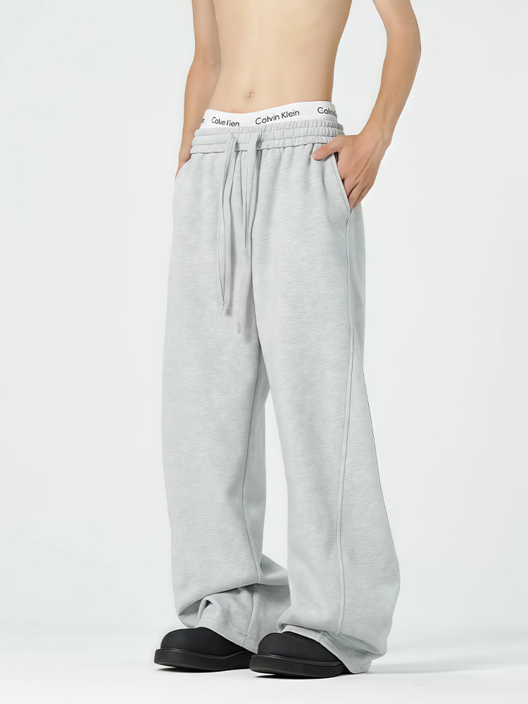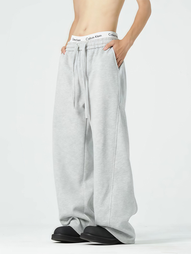 회색 아메리칸 스타일 바나나 땀 바지 남자 봄과 가을 캐주얼 스트레이트 더미 넓은 다리 바지 게으른 스타일 스포츠 바지