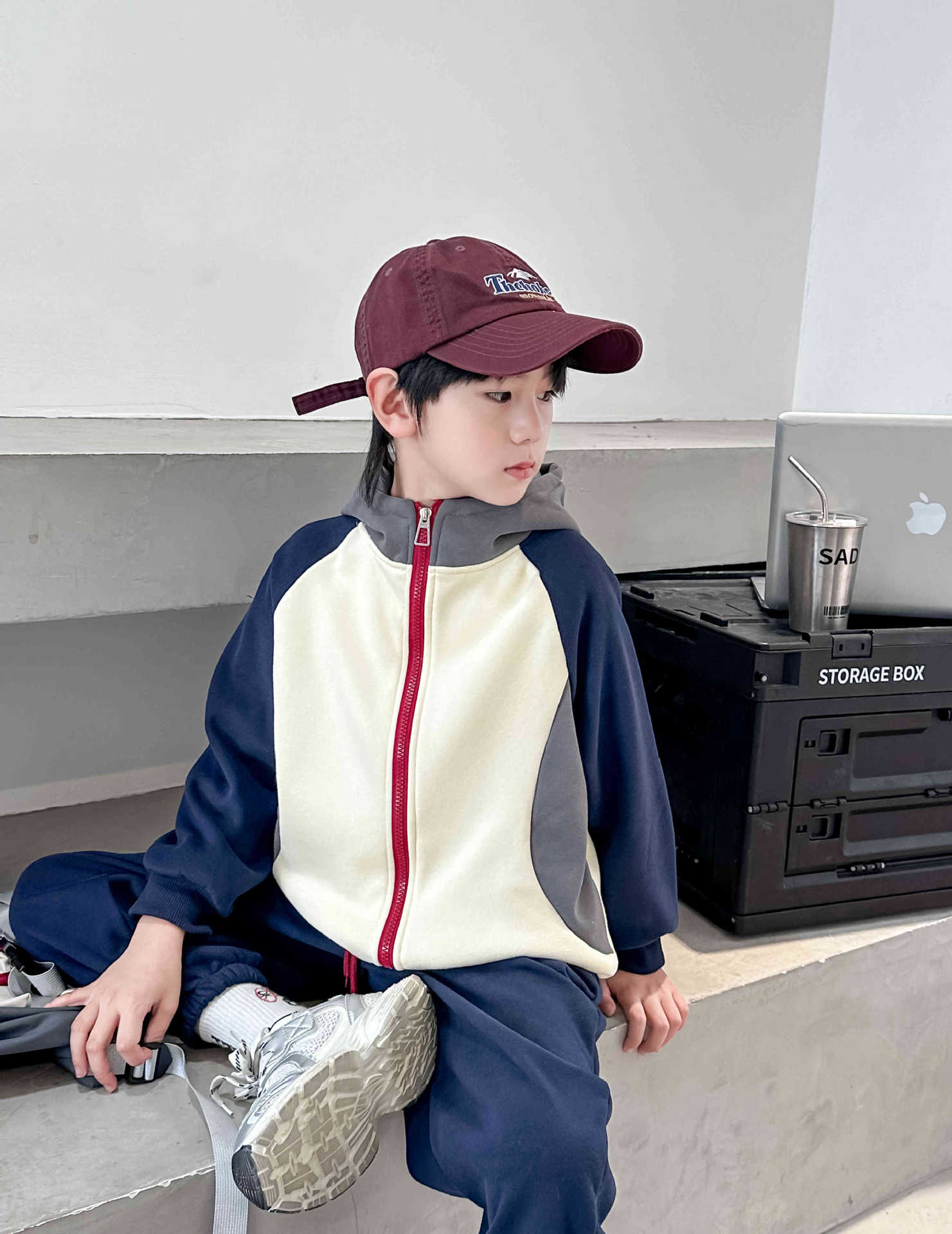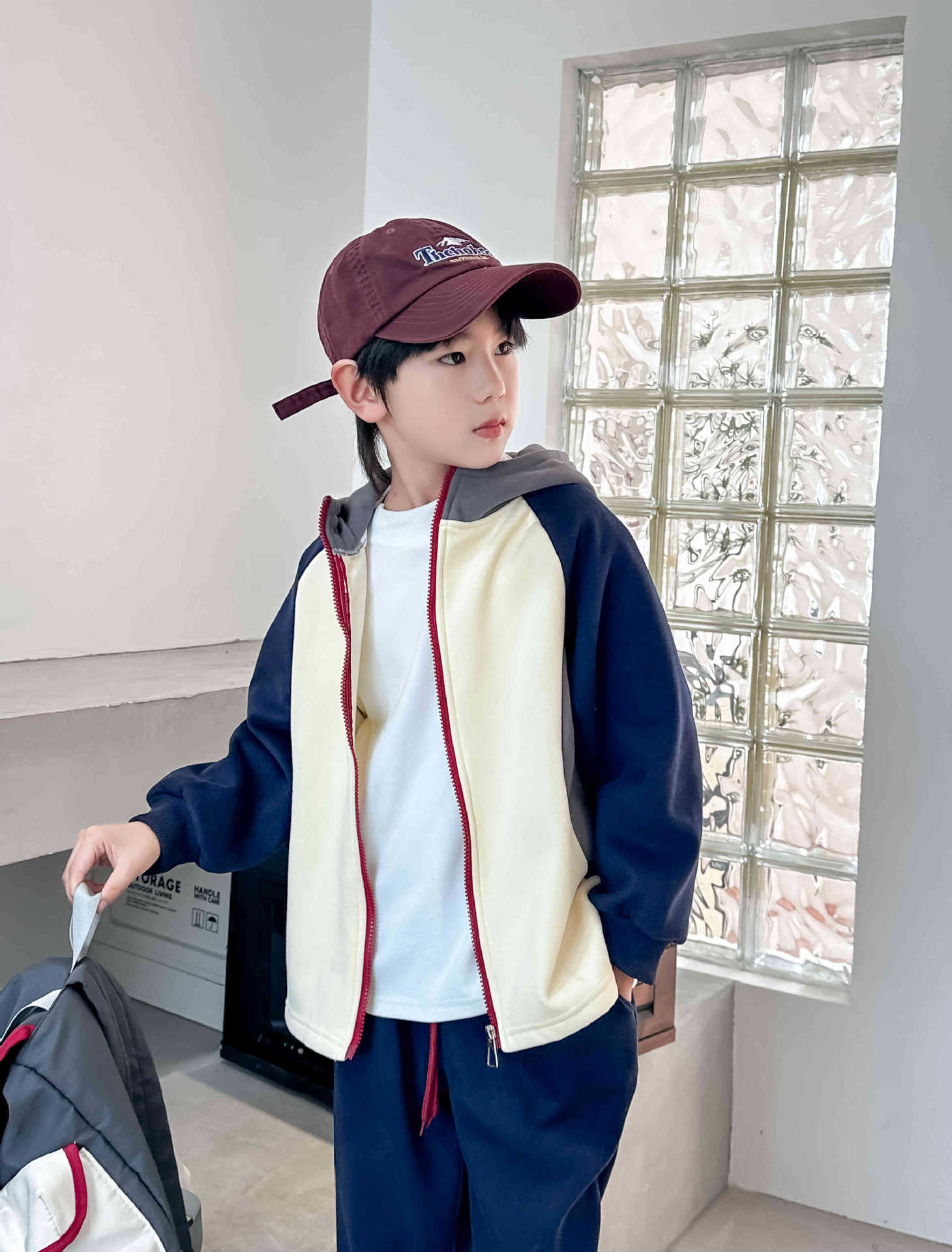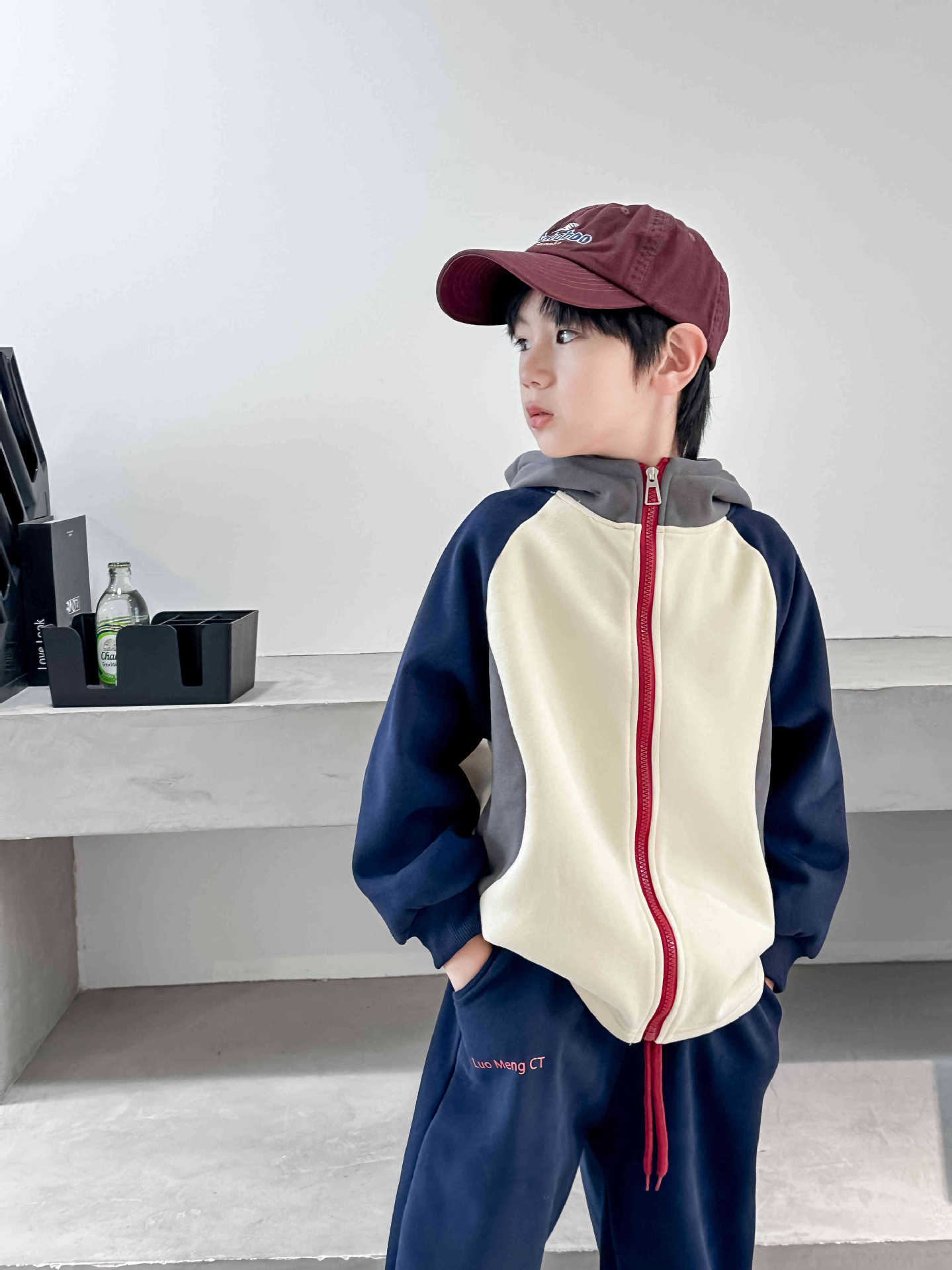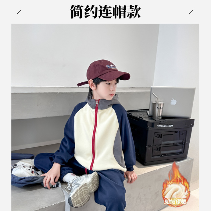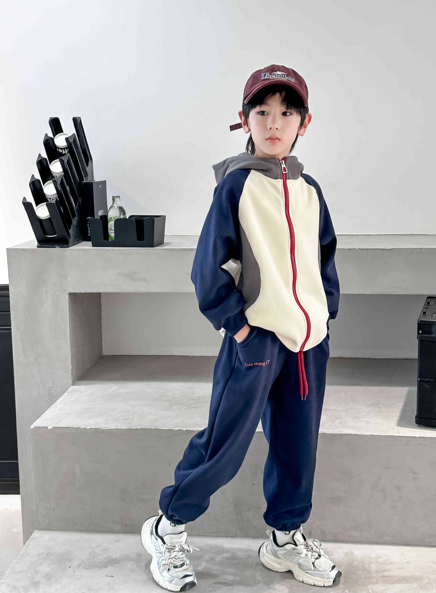남학생과 여학생 겨울 플러스 벨벳 세트 2024 새로운 스타일 컬러 매칭 코트 바지 투피스 세트스토어 가기