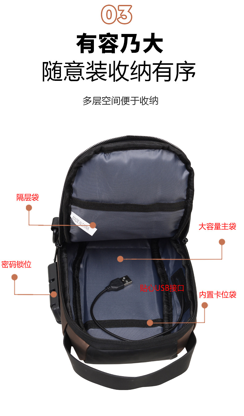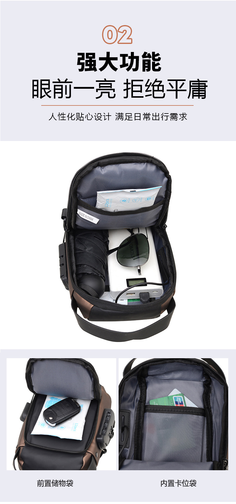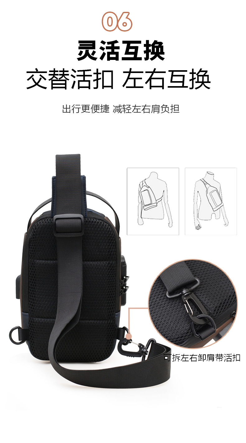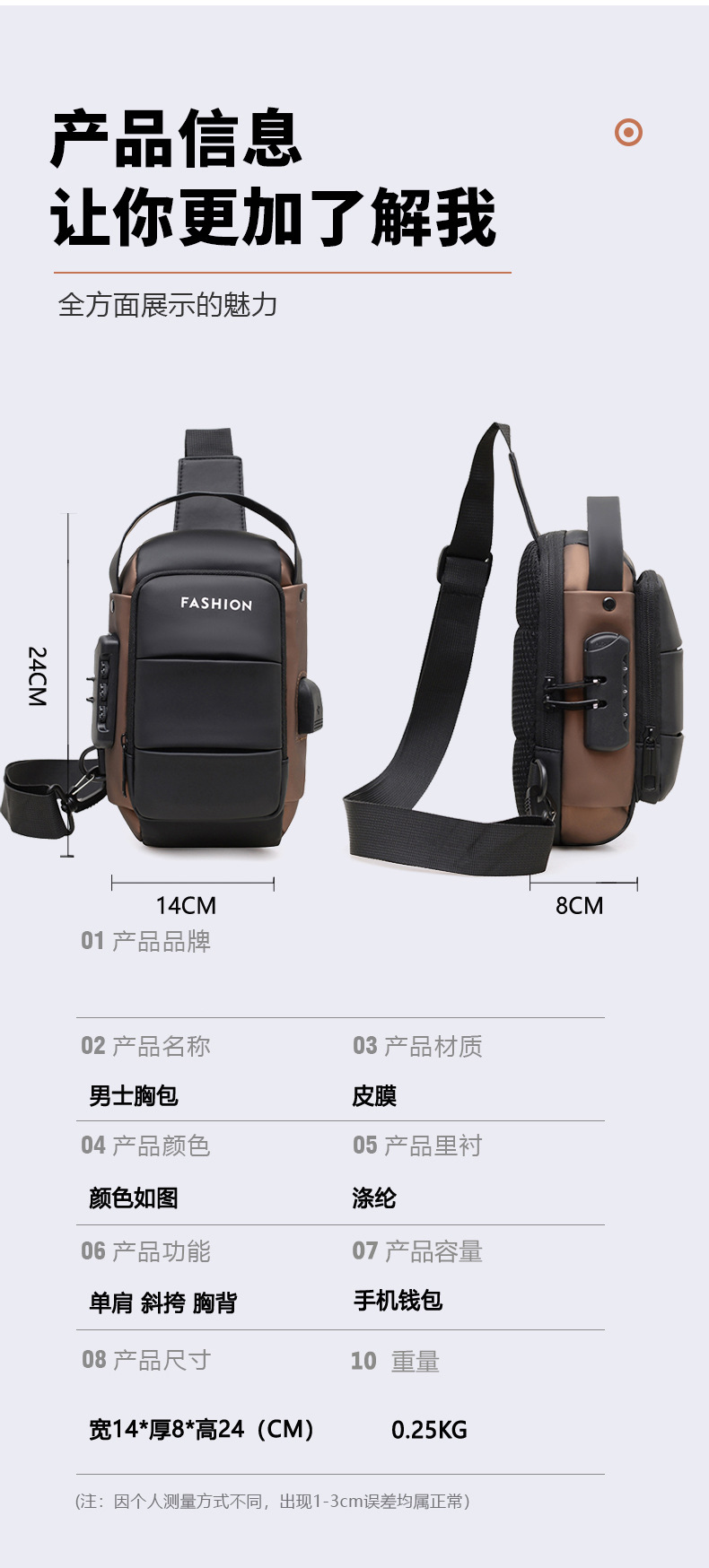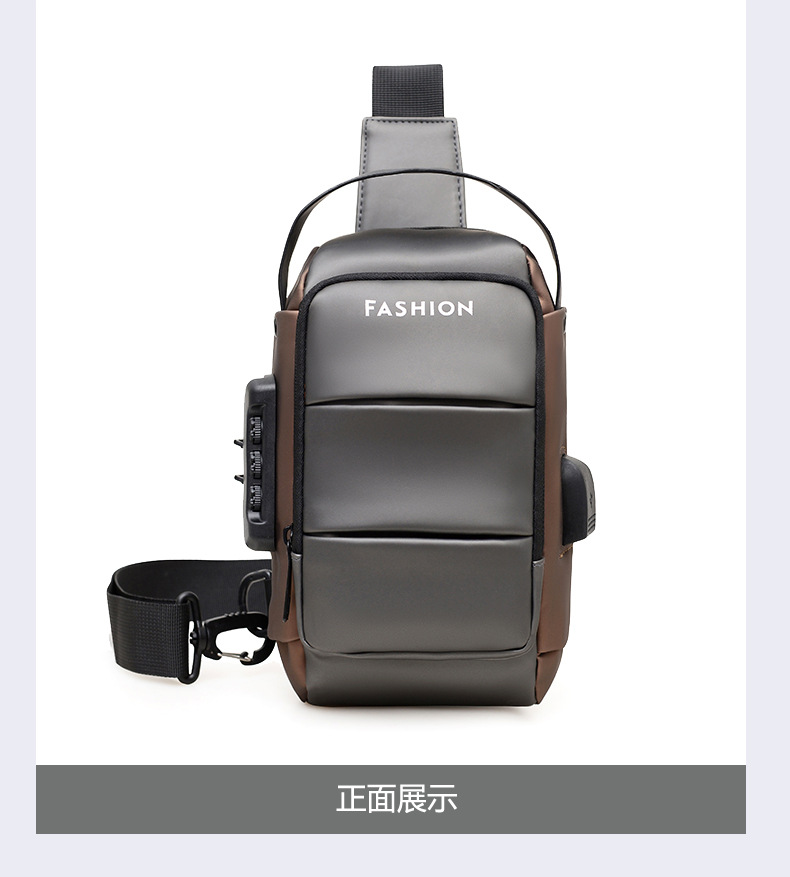 새로운 남자 가슴 가방 USB 충전 다기능 휴대용 어깨 가방 암호 잠금 통근 스포츠 승마 크로스 바디 가방