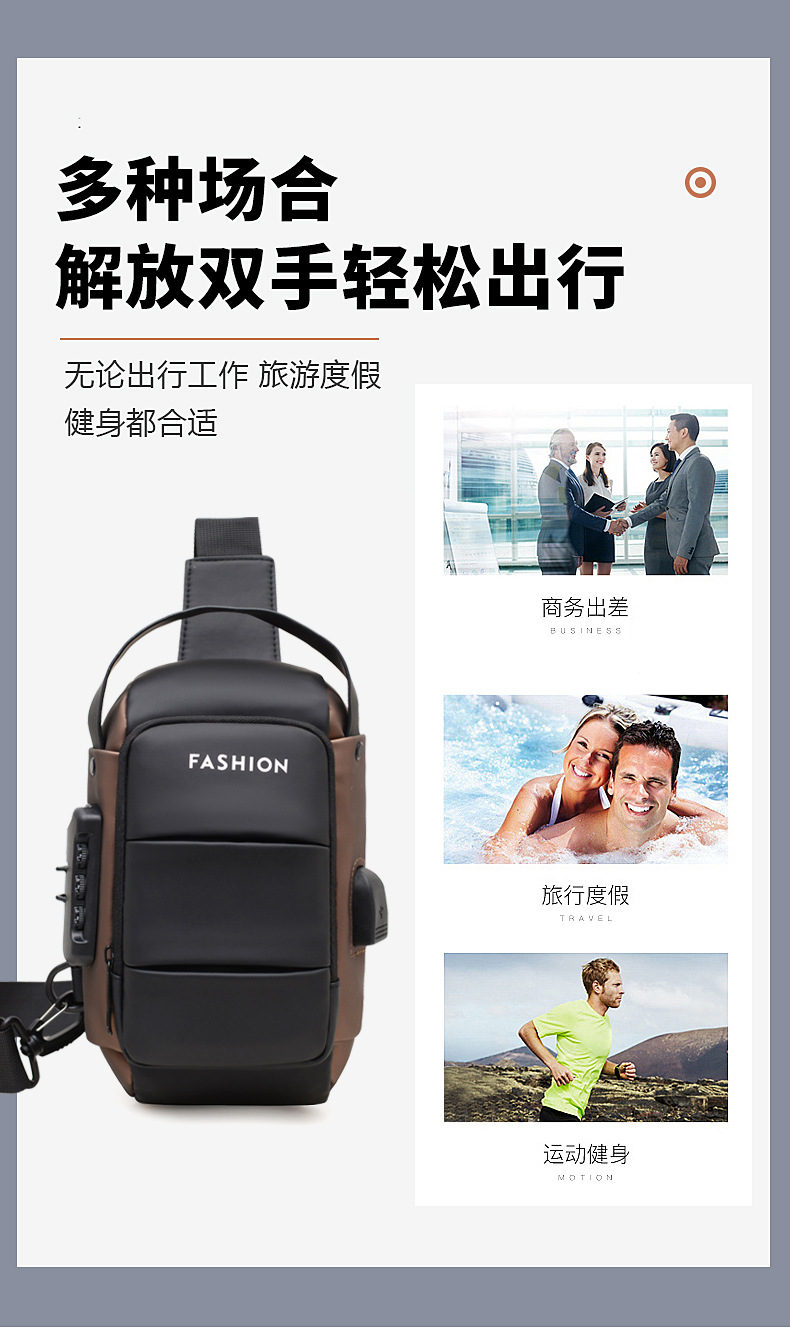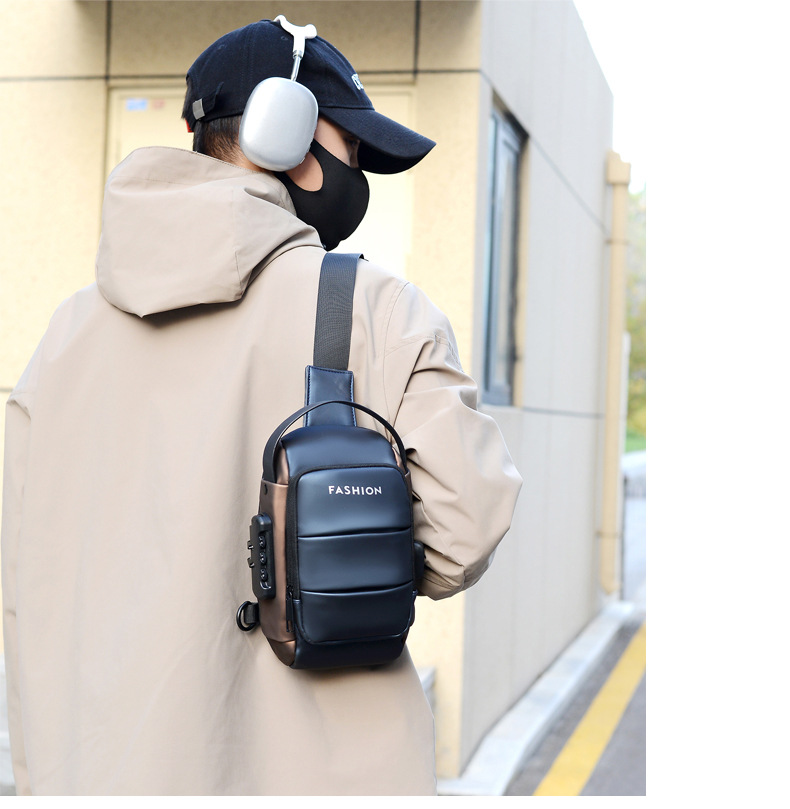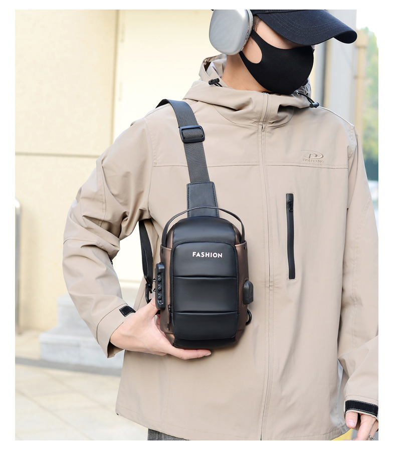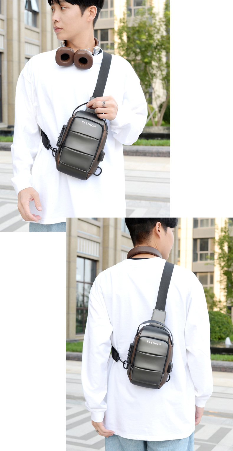 새로운 남자 가슴 가방 USB 충전 다기능 휴대용 어깨 가방 암호 잠금 통근 스포츠 승마 크로스 바디 가방스토어 가기
