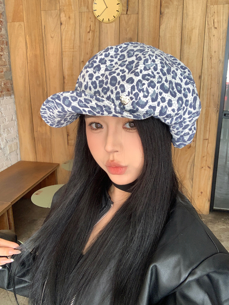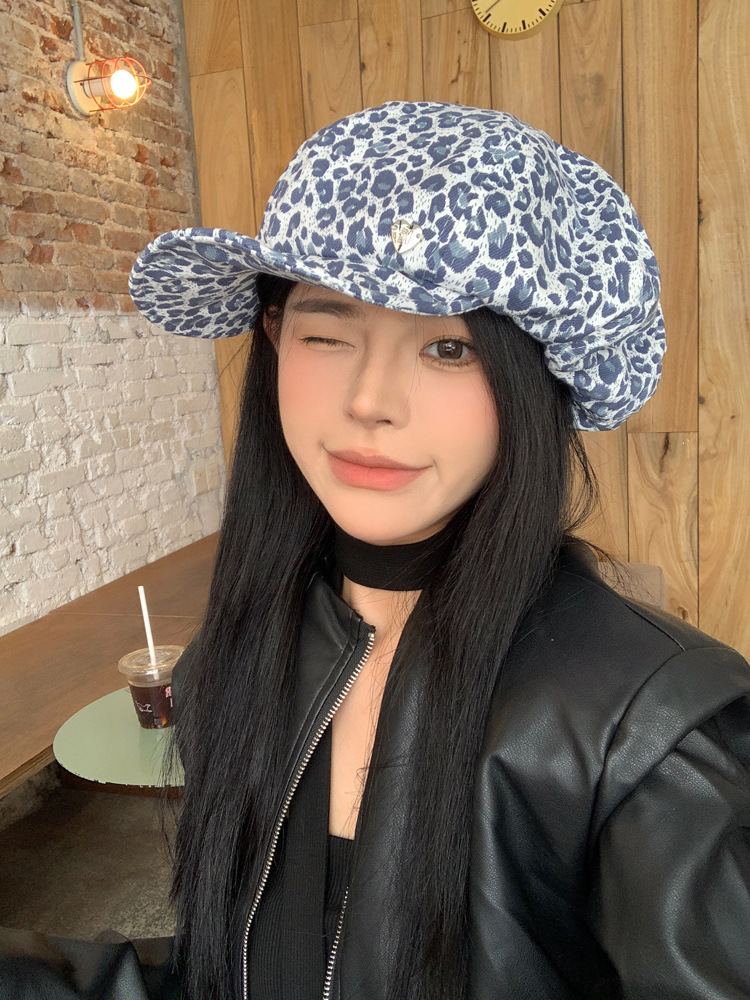 스파이스 걸 레오파드 무늬 구름 팔각형 모자 베레 여자 올 매치 페이스 쇼케이스 작은 레트로 페인터 모자 큰 머리 팔각형 모자스토어 가기