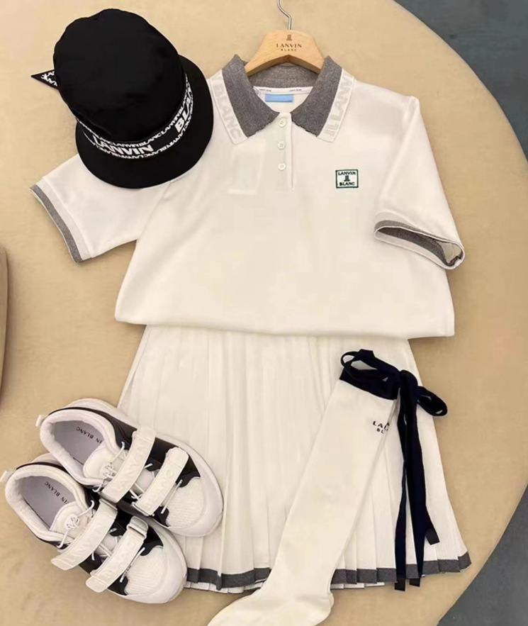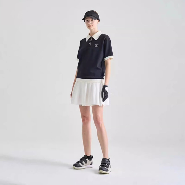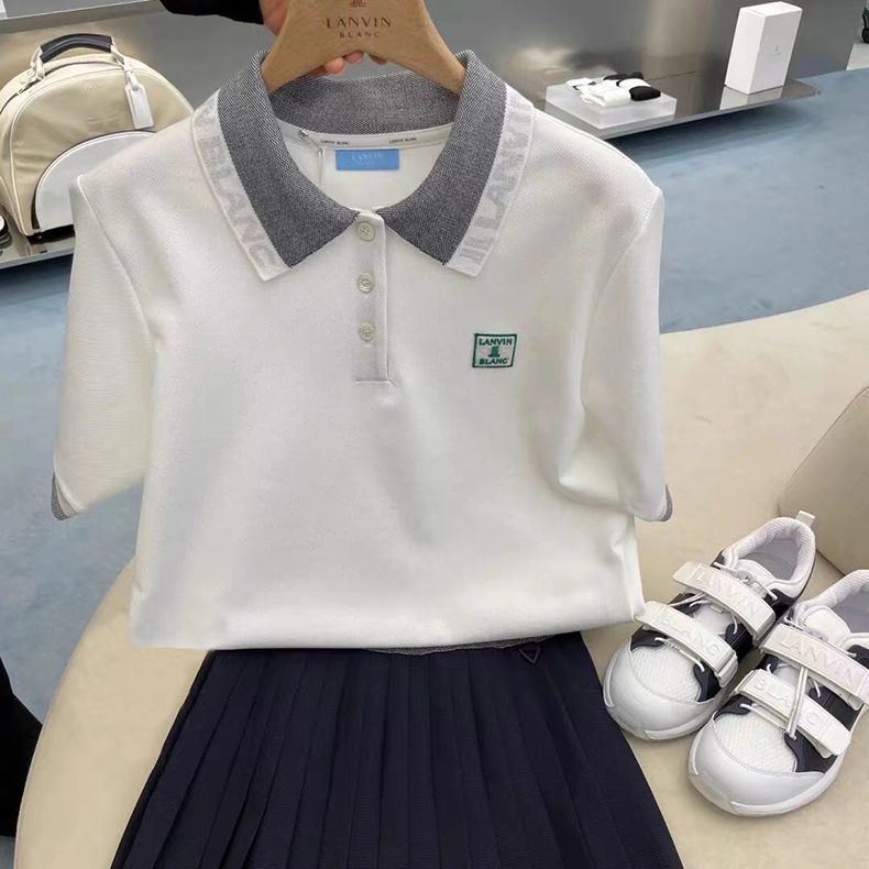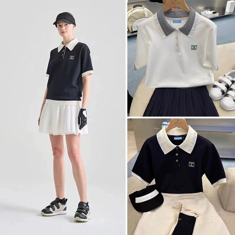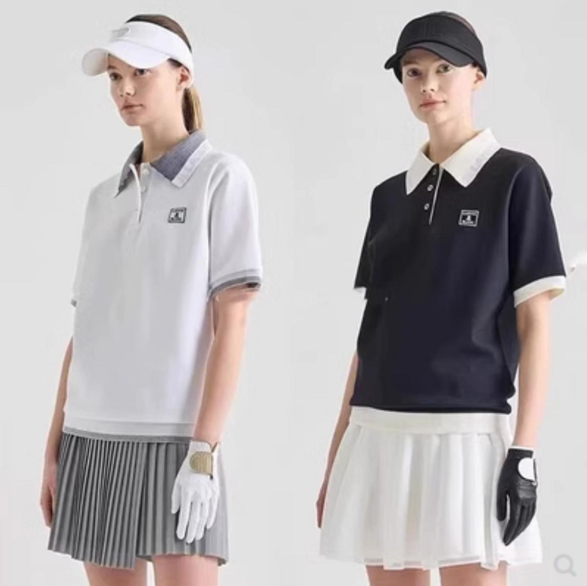 여름 새로운 도착 한국 골프 여성 라르 컬러 대비 통기성 짧은 소매 스포츠 빠른 건조 느슨한 레트로 탑스토어 가기