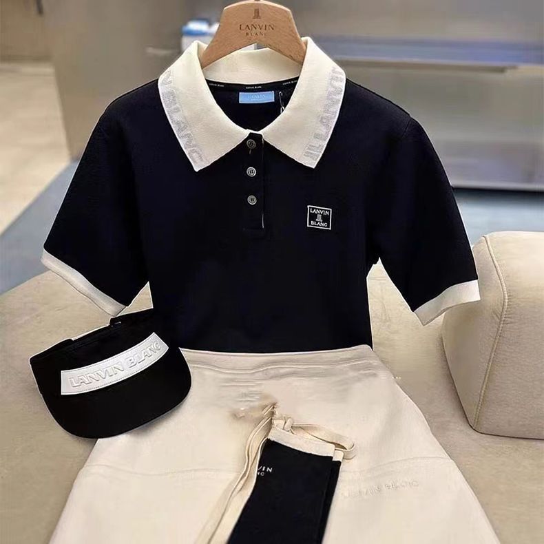 여름 새로운 도착 한국 골프 여성 라르 컬러 대비 통기성 짧은 소매 스포츠 빠른 건조 느슨한 레트로 탑