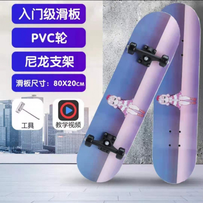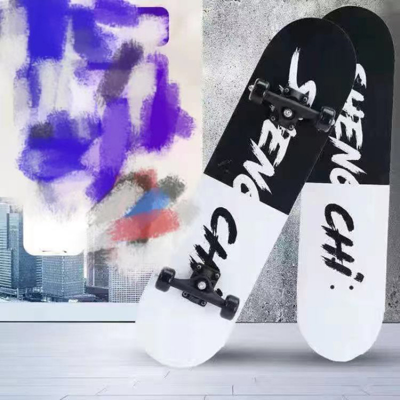 스쿠터 10 ~ 18 세 스케이트 보드 4 륜 남녀 초보자 더블 워프 플래시 휠 스트리트 브러시 보드스토어 가기