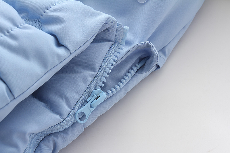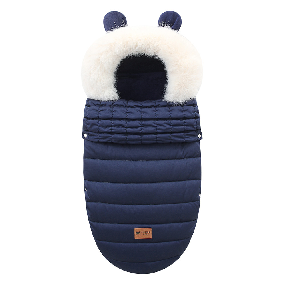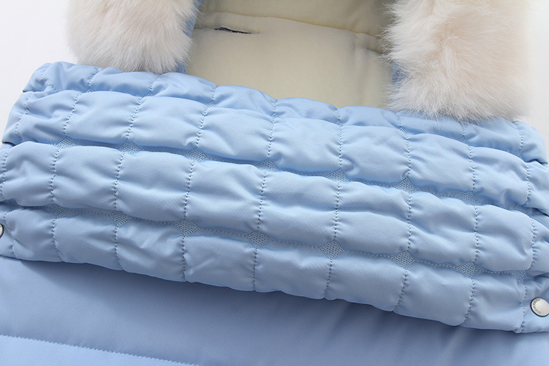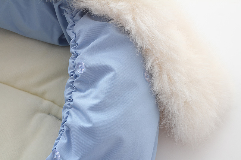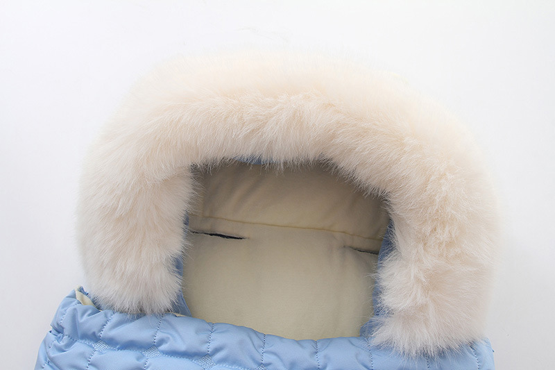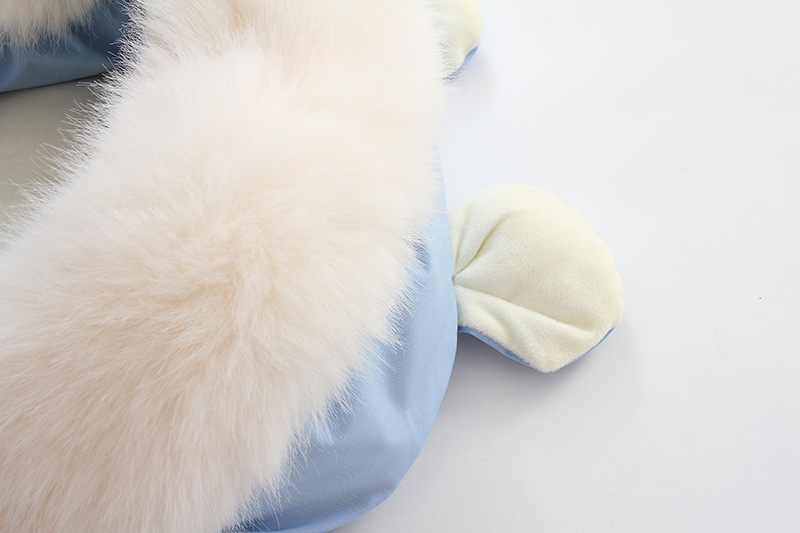 高品质睡袋,填充厚实羽绒棉,厚实保暖,内里摇粒绒,非常柔软,双向拉链可以完全打开,方便换纸尿裤。领口位置可以翻上去,也可以卷起来,好看又实用。背面有五个孔,方便婴儿车的安全带固定,真的是好看又实用。两个小熊耳朵超级萌,毛领可以脱卸,出口品质,长期供货。