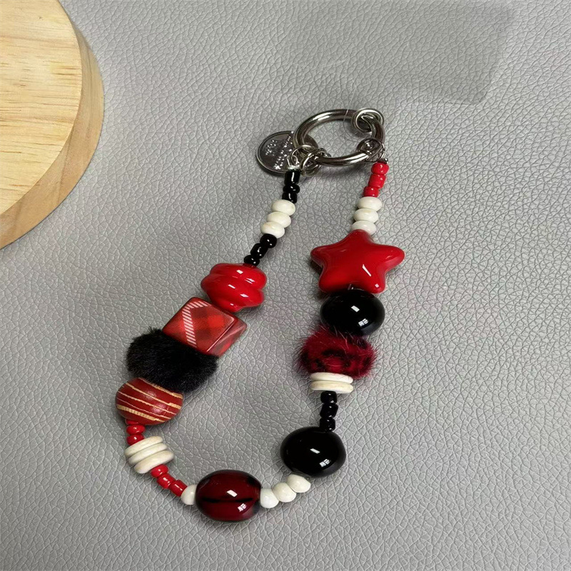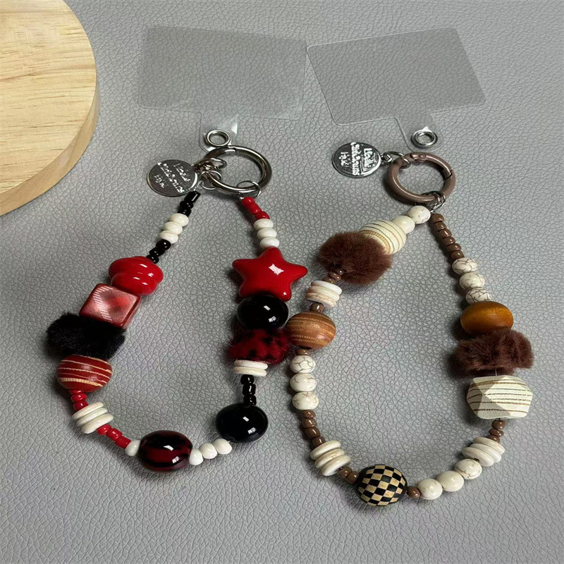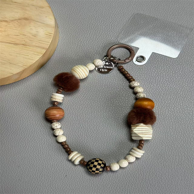 • 격자 무늬 비즈 플러시 행잉 체인 + 카드