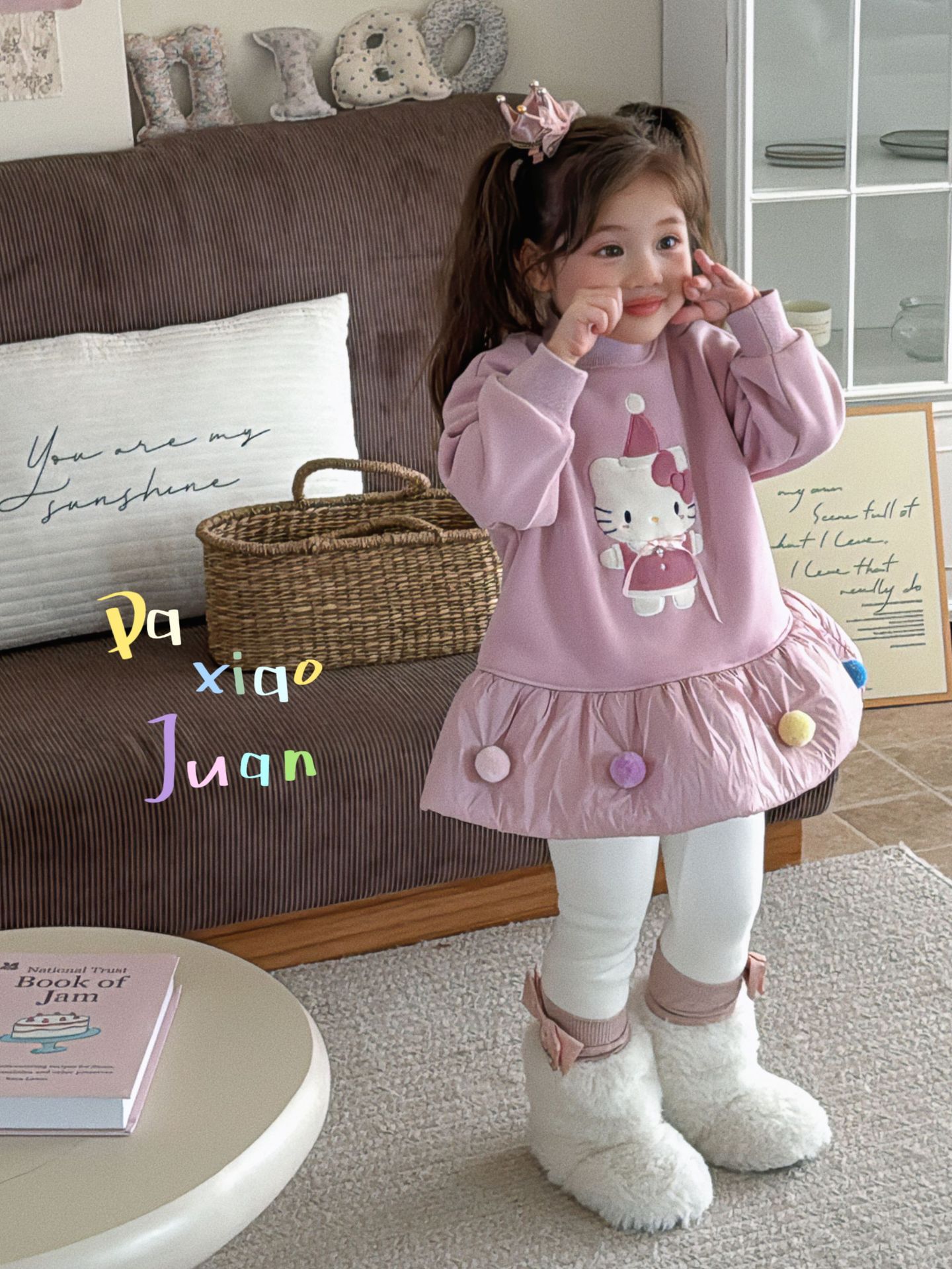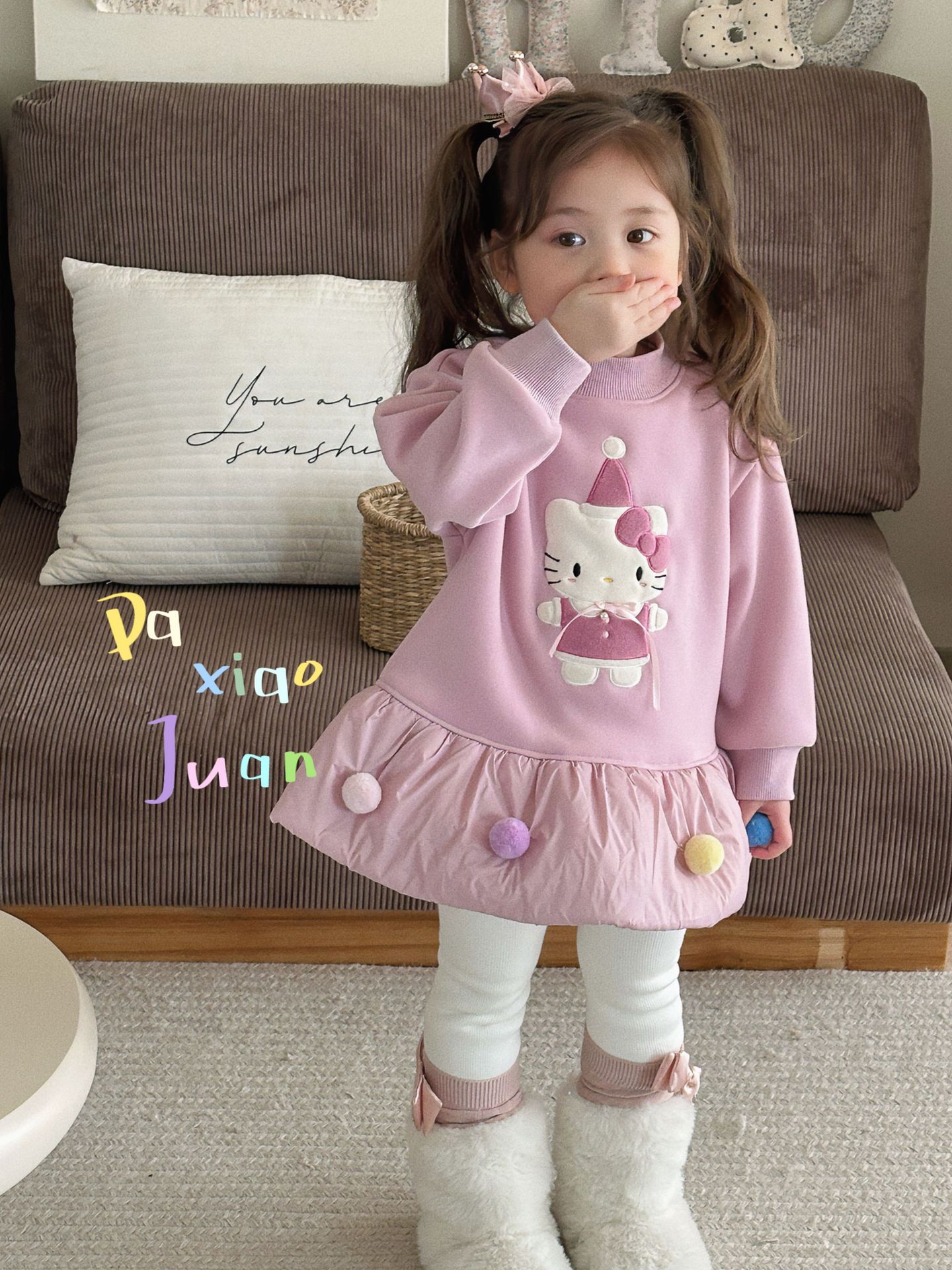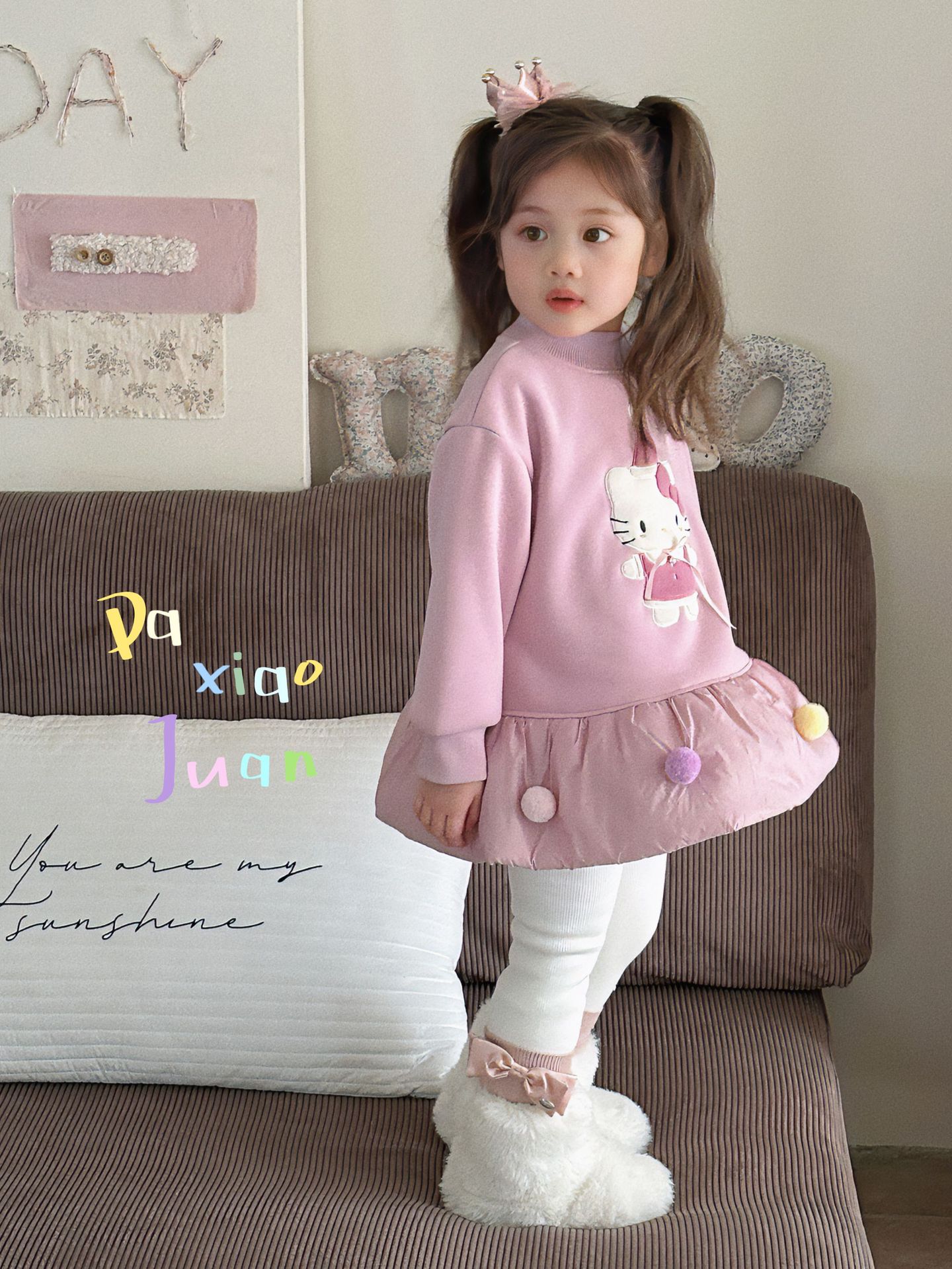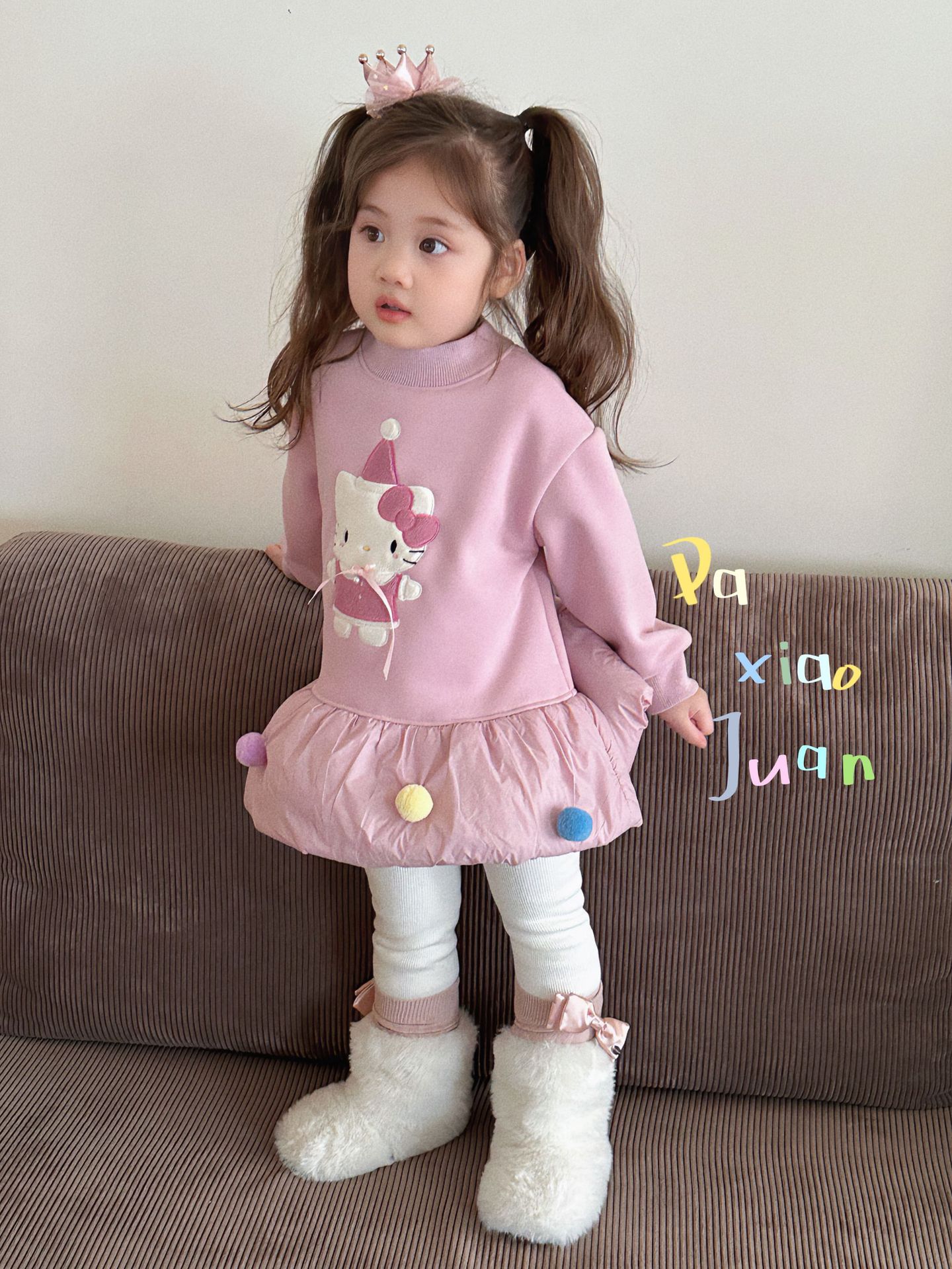 사이즈 롤 기모 두꺼운 원피스 한국 유치원 서양식 달콤한 소녀 겨울 스커트 26368