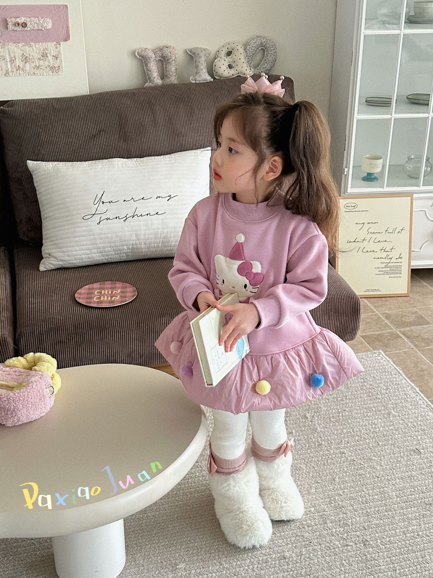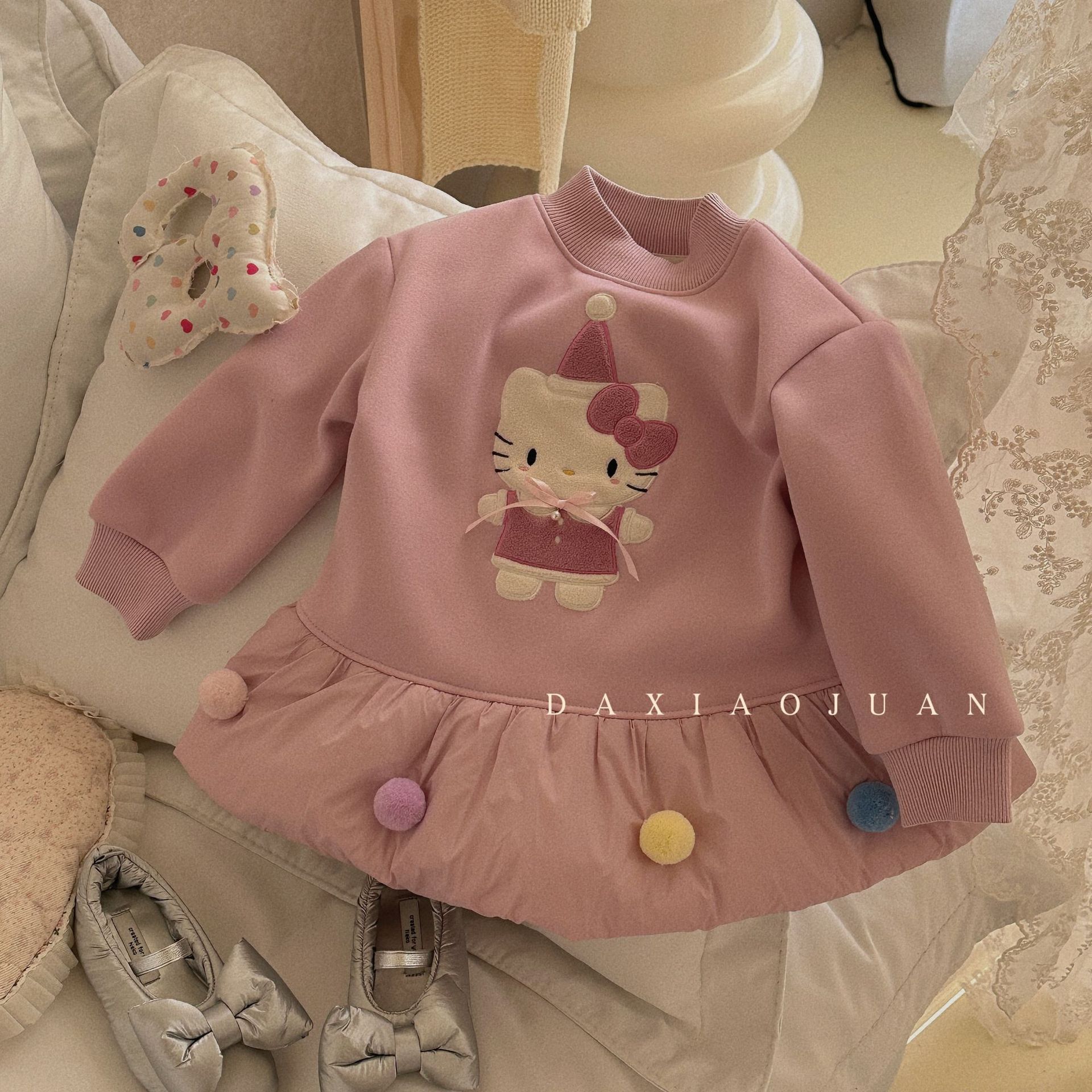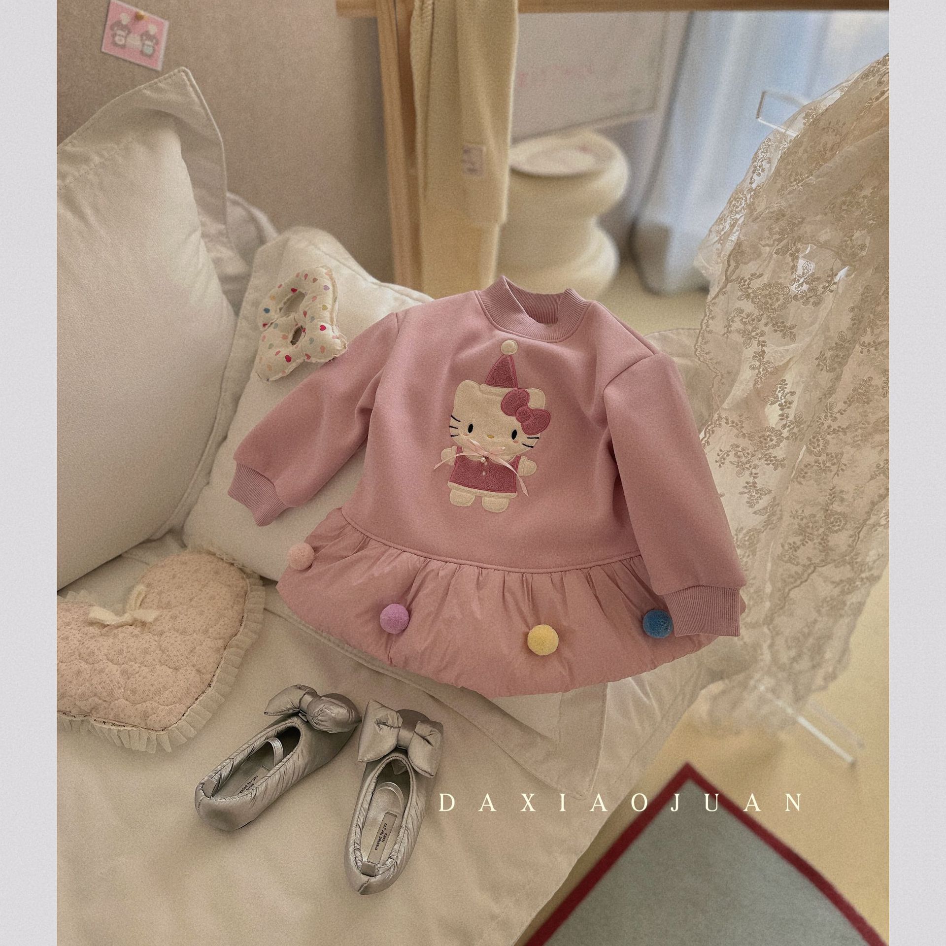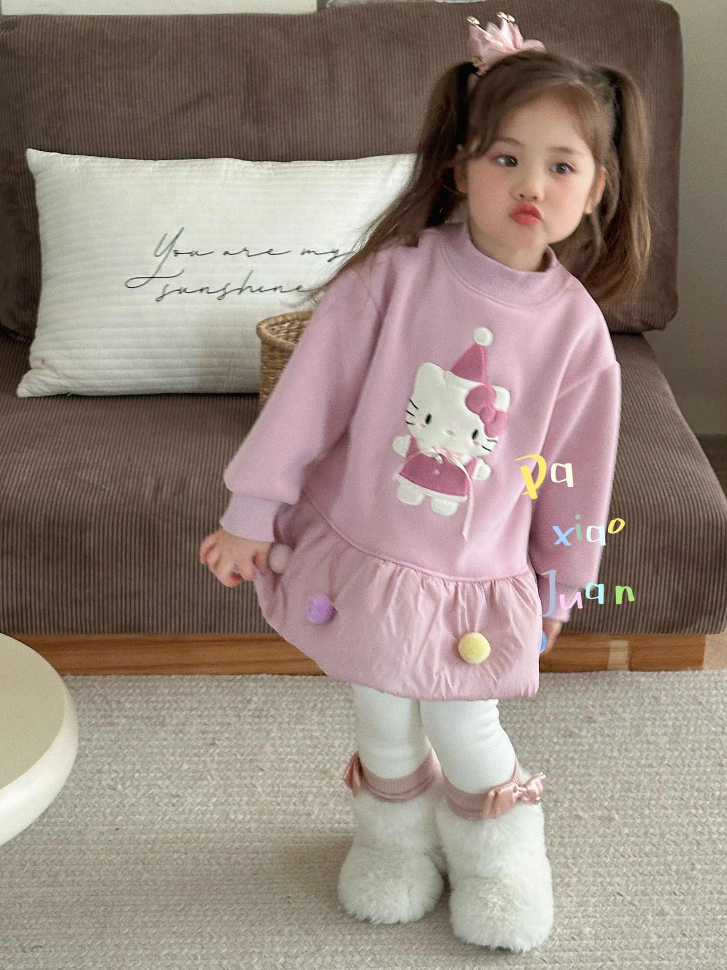 사이즈 롤 기모 두꺼운 원피스 한국 유치원 서양식 달콤한 소녀 겨울 스커트 26368