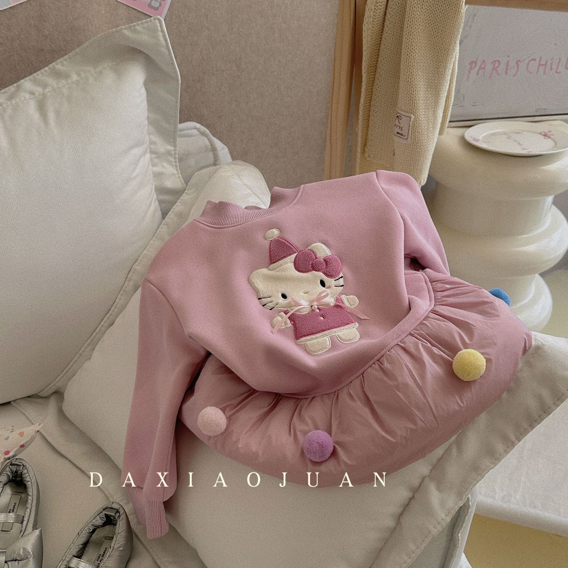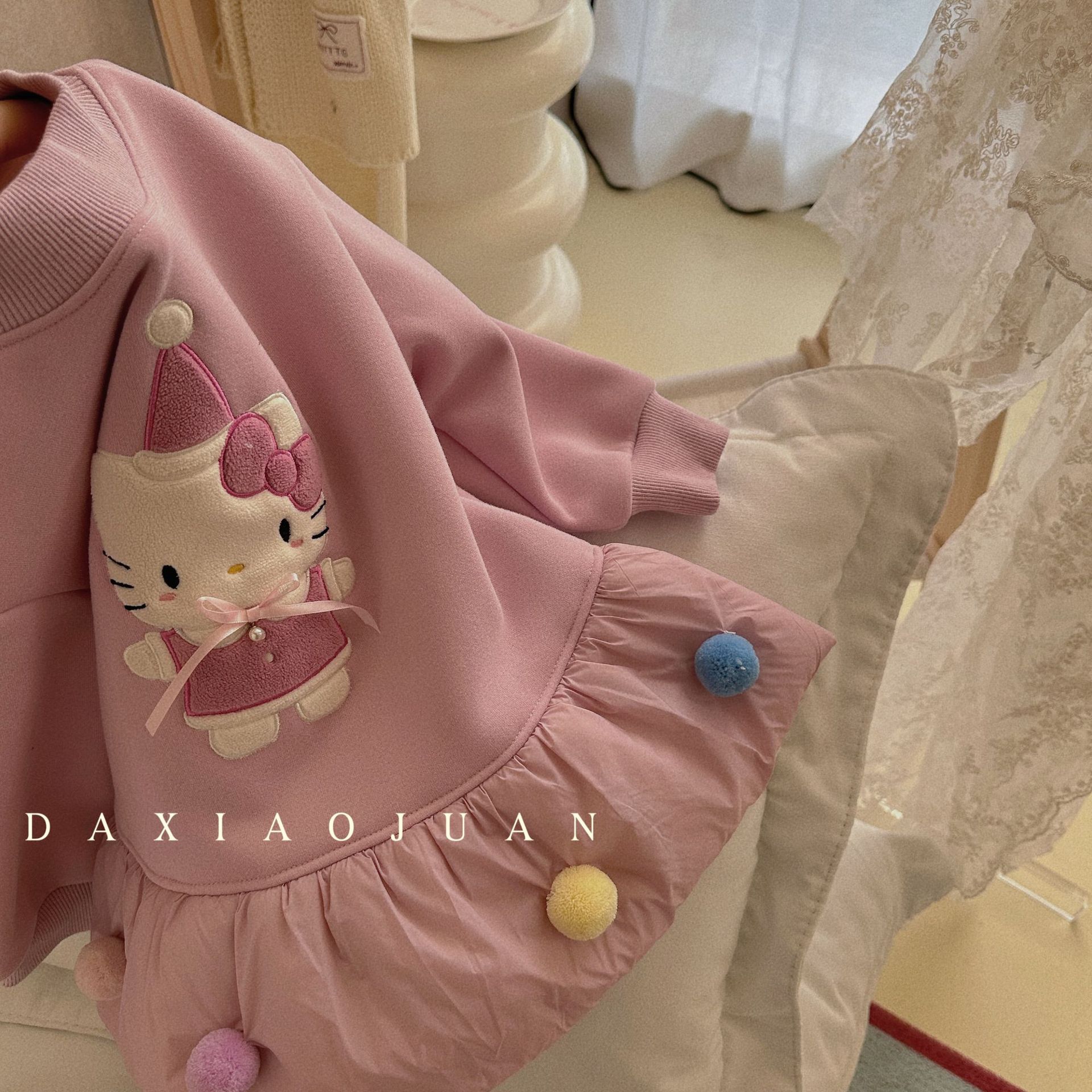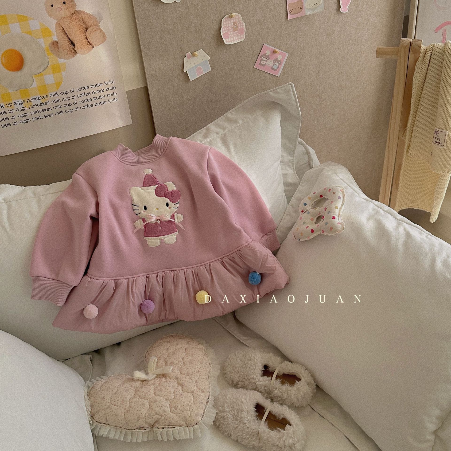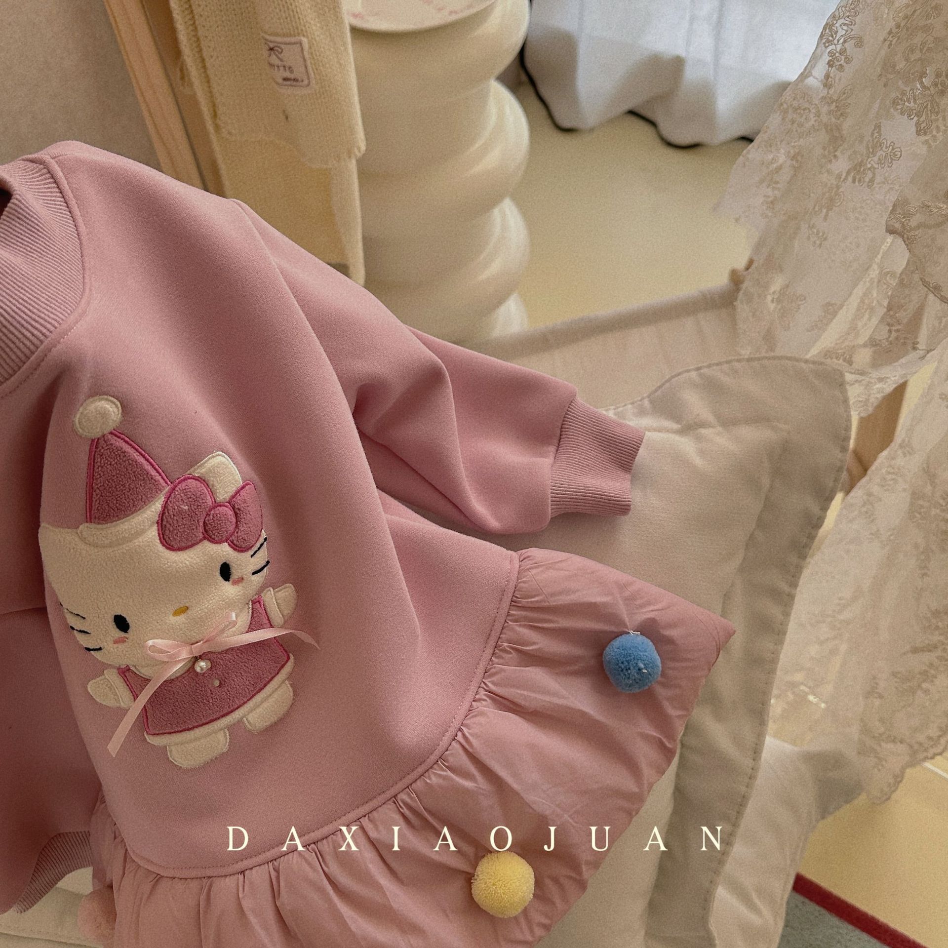 사이즈 롤 기모 두꺼운 원피스 한국 유치원 서양식 달콤한 소녀 겨울 스커트 26368