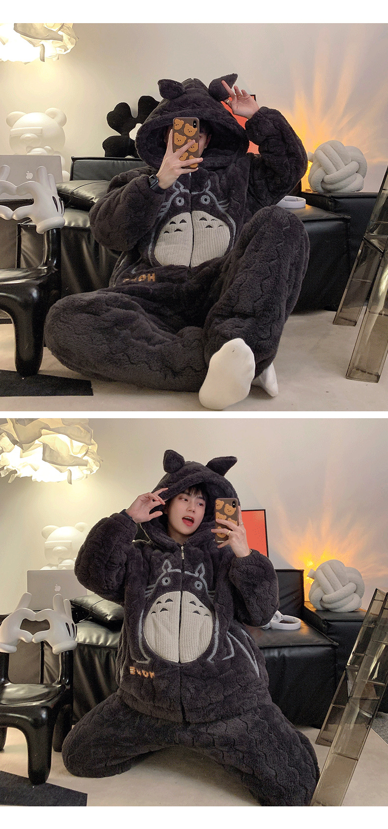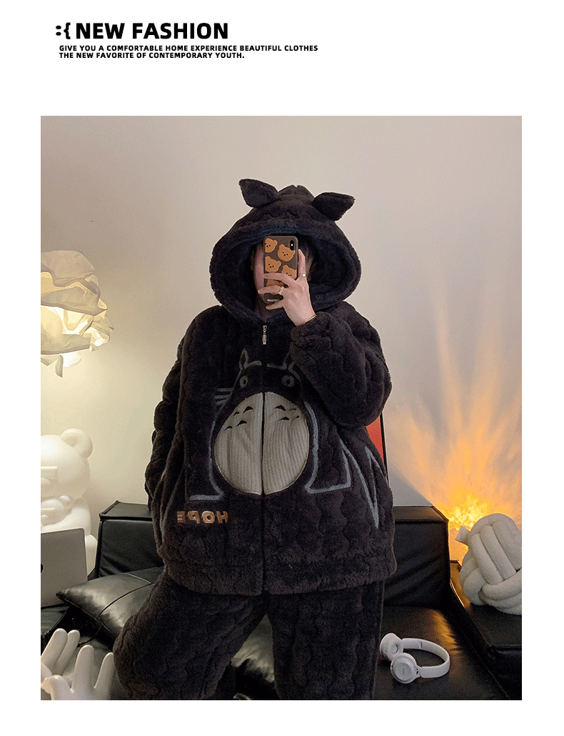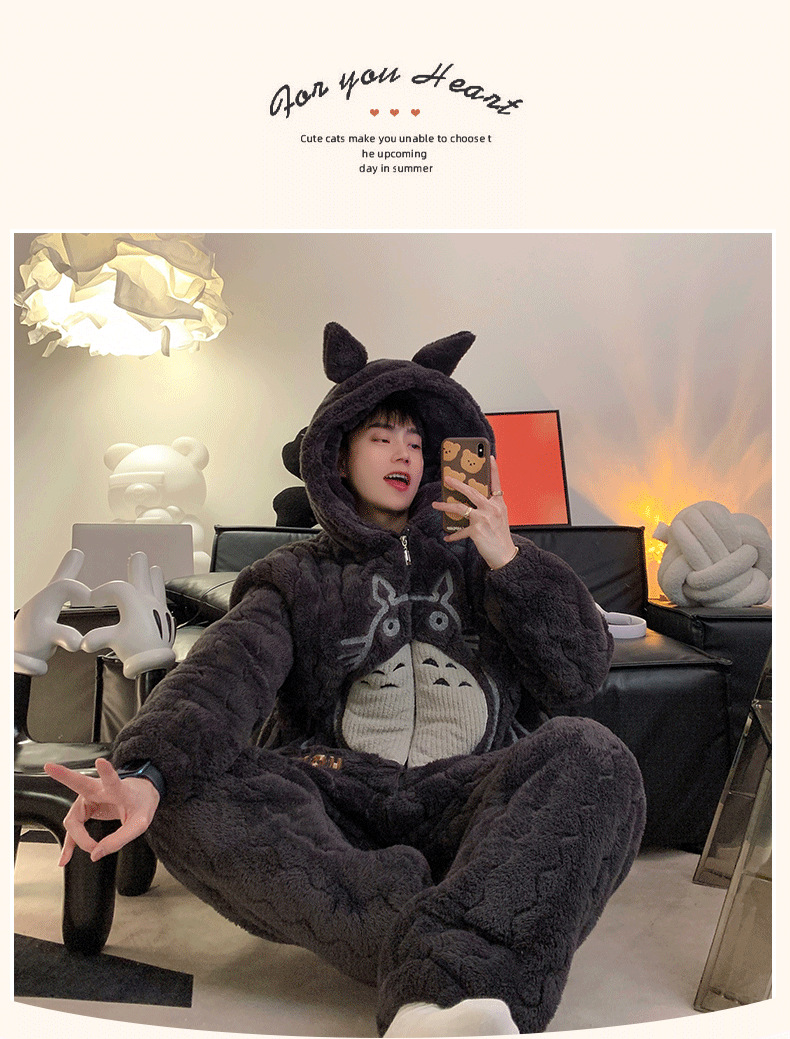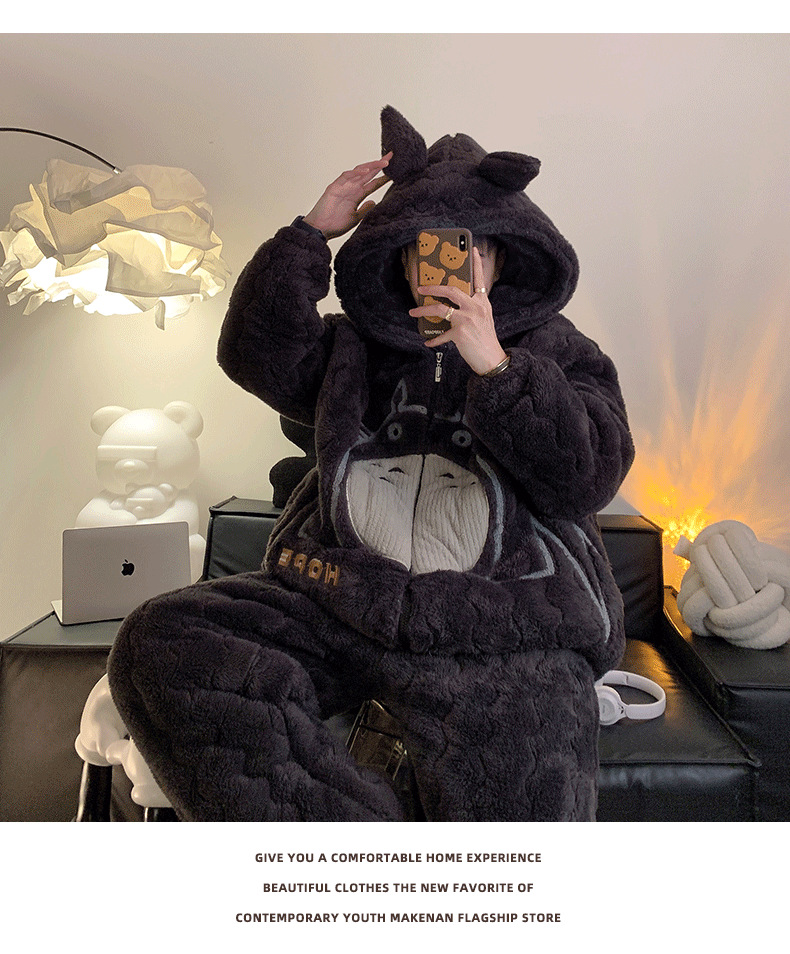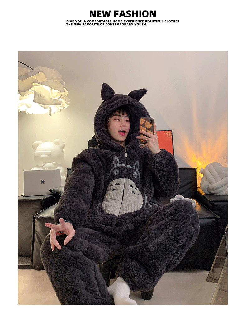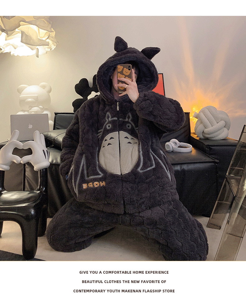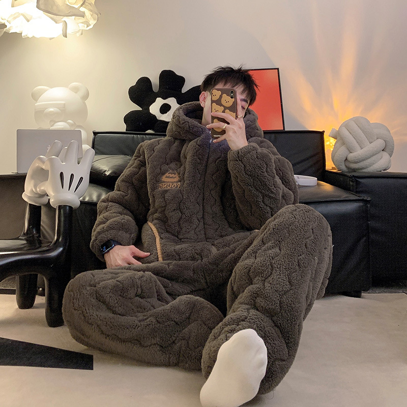남자 잠옷 가을과 겨울 3 층 퀼트 산호 양털 후드가 기모 두꺼운 겨울 플란넬 따뜻한 집 옷