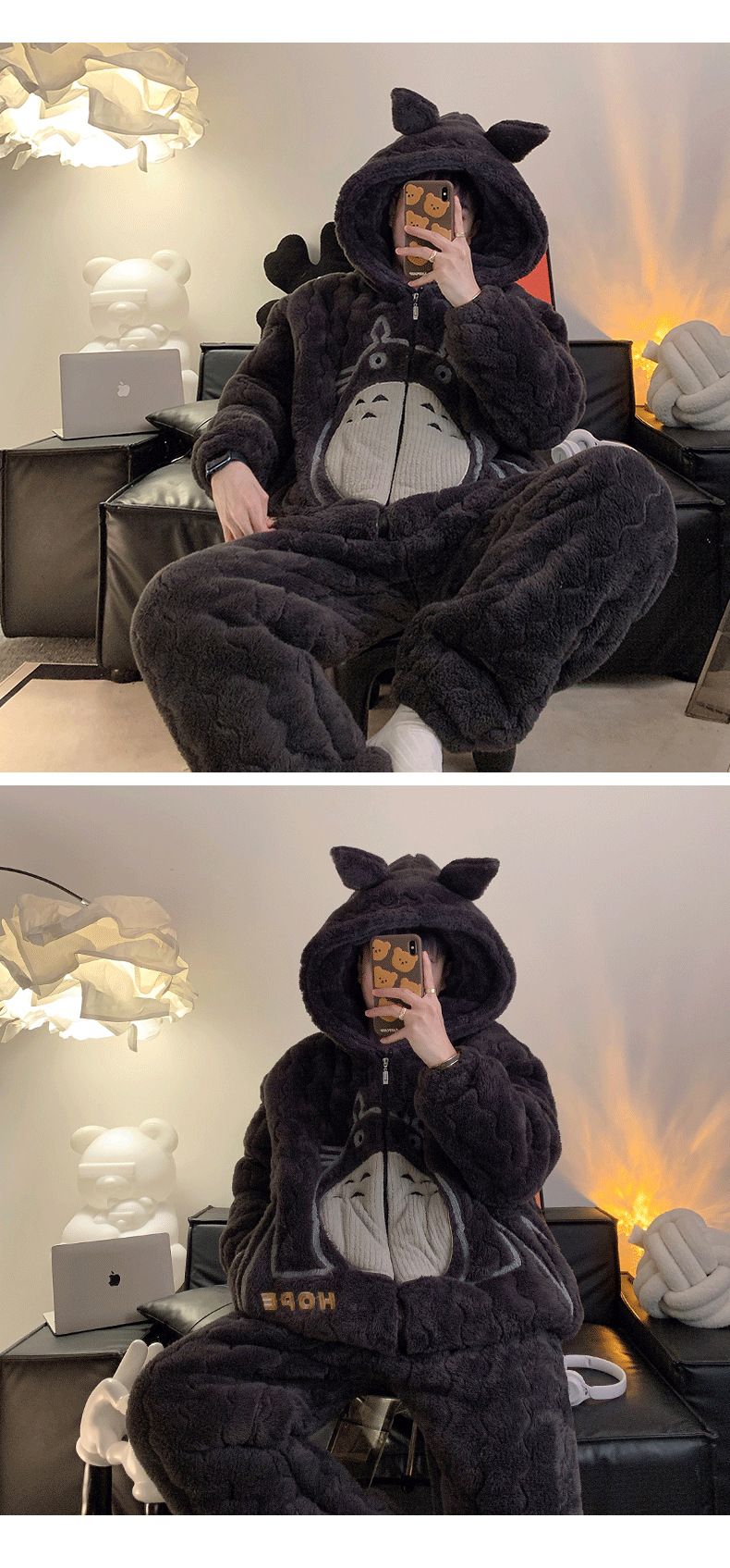 남자 잠옷 가을과 겨울 3 층 퀼트 산호 양털 후드가 기모 두꺼운 겨울 플란넬 따뜻한 집 옷스토어 가기
