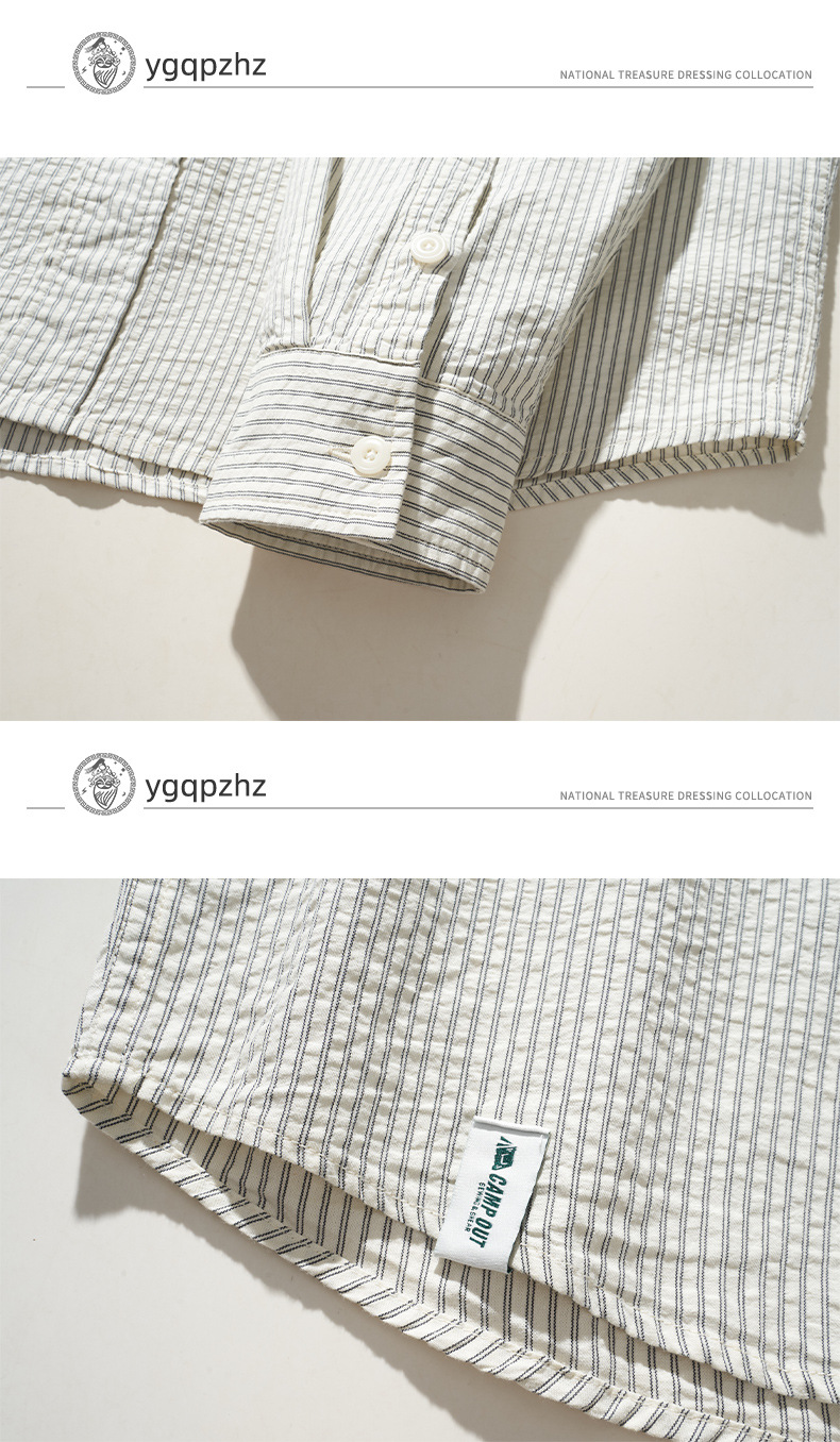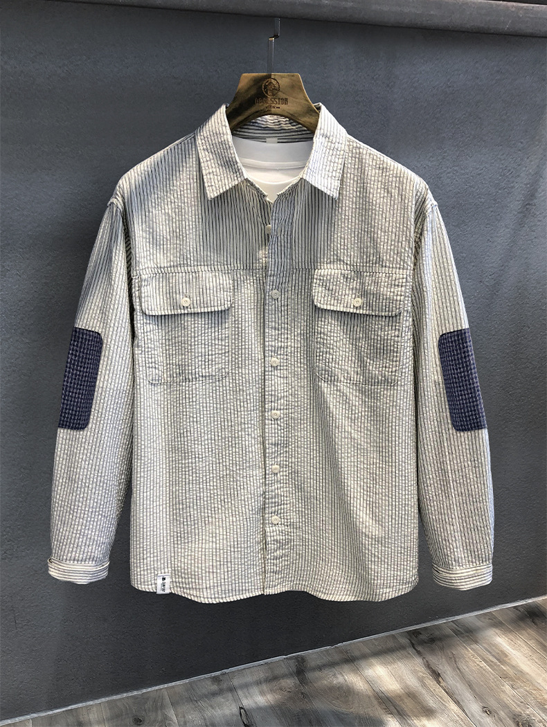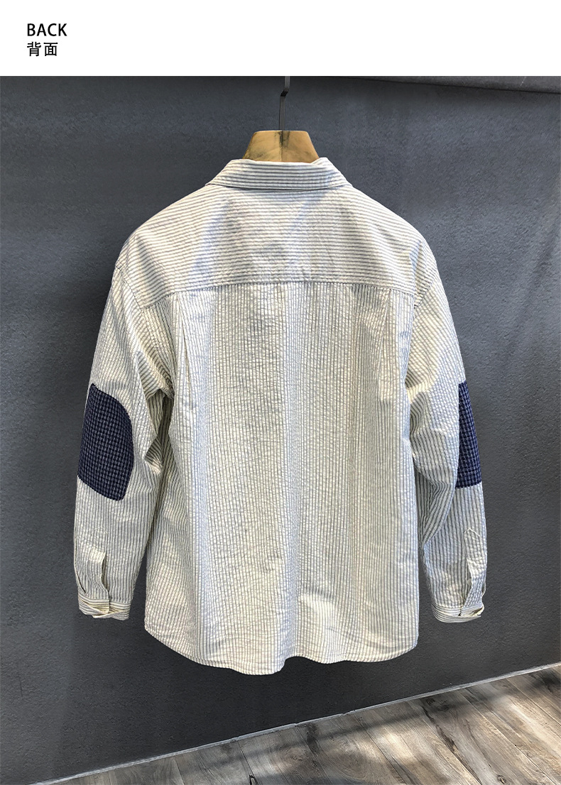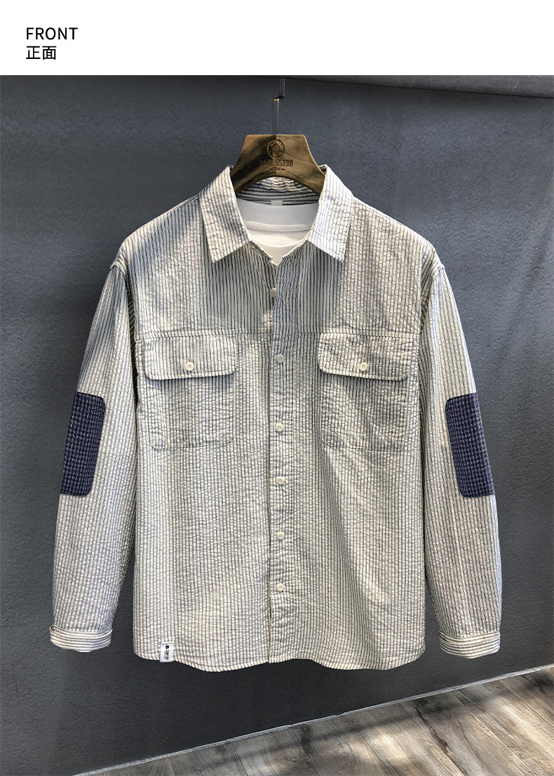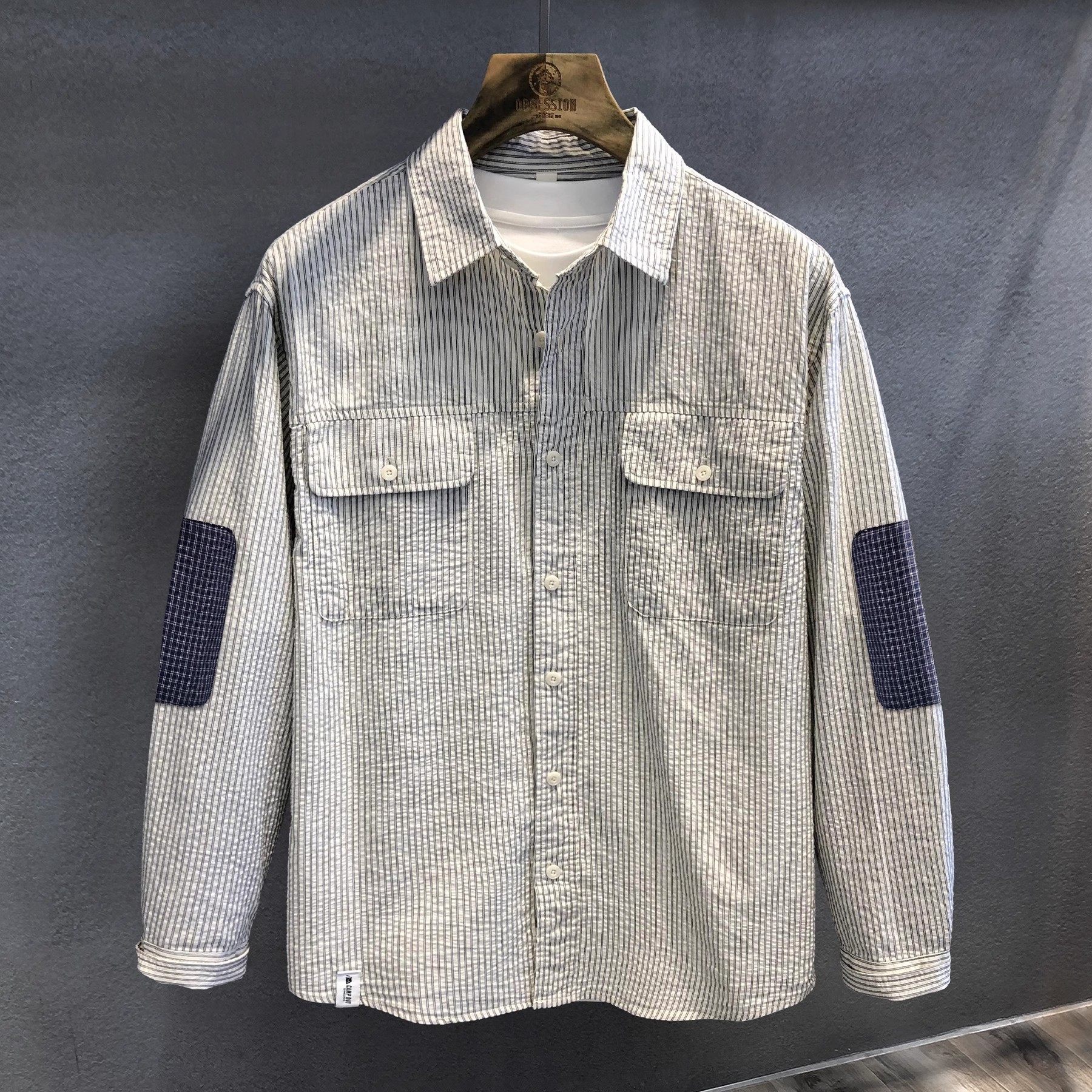 버블 텍스처 스트라이프 고급 센스 레트로 패치 버블 잘 생긴 셔츠 남자의 봄과 가을 새로운 캐주얼 긴 소매 셔츠 트렌디스토어 가기