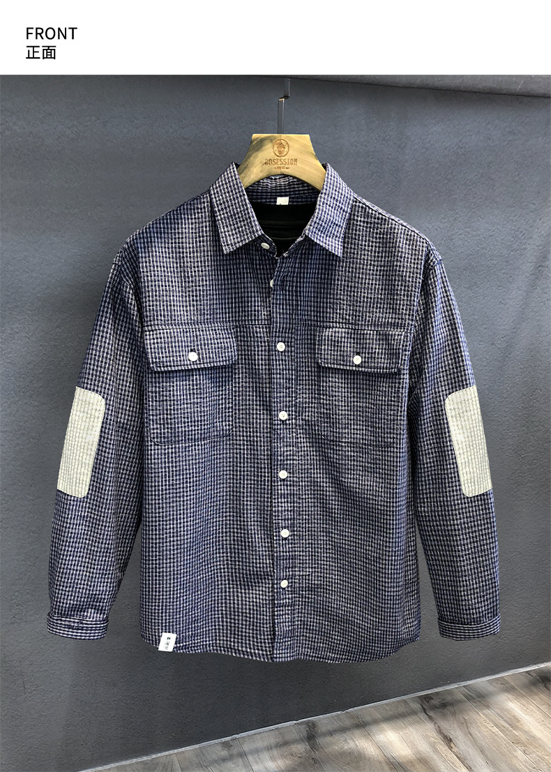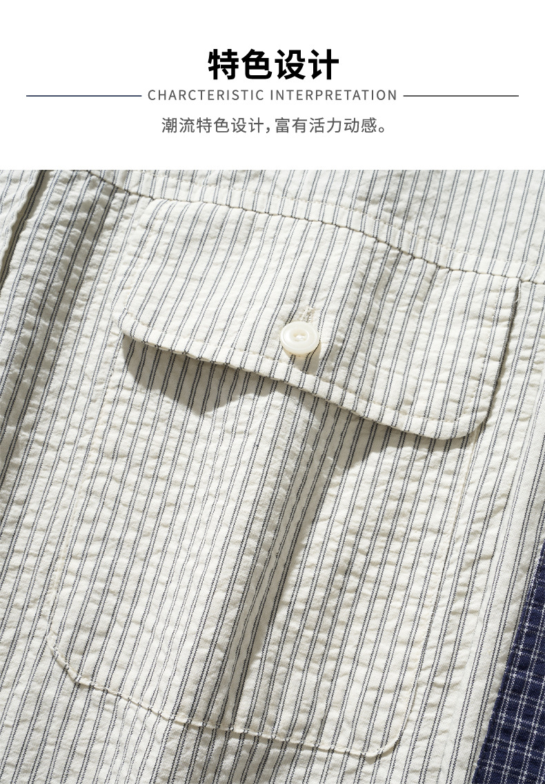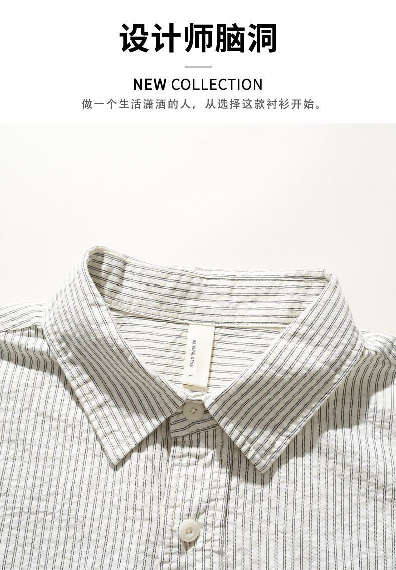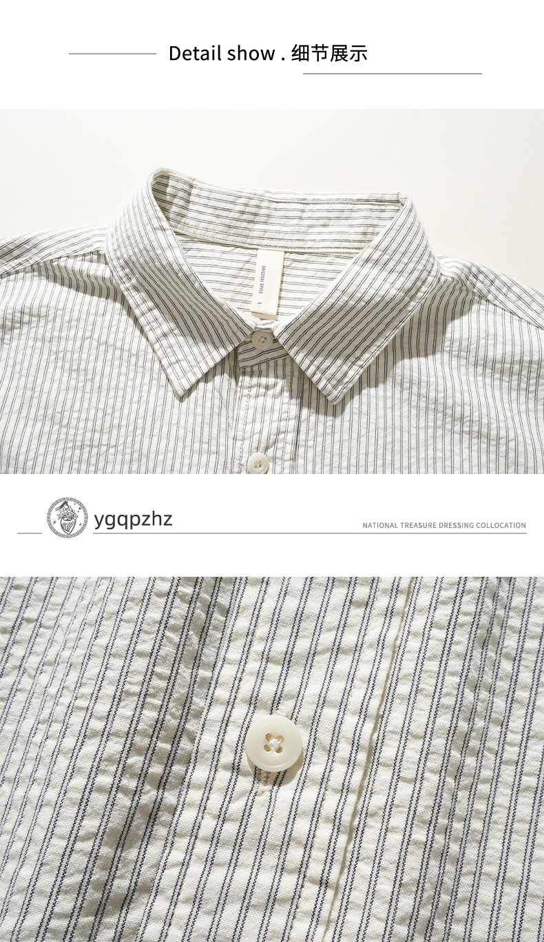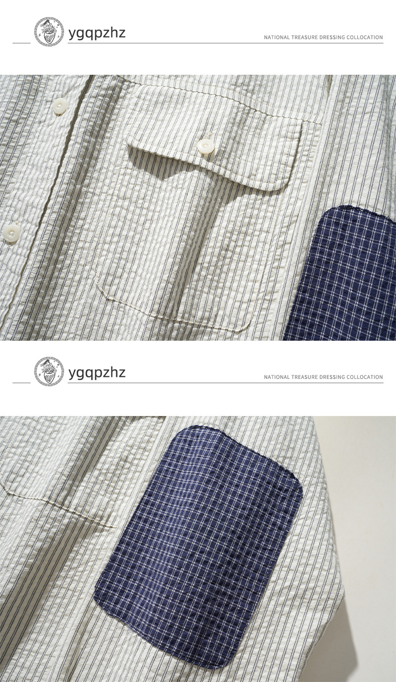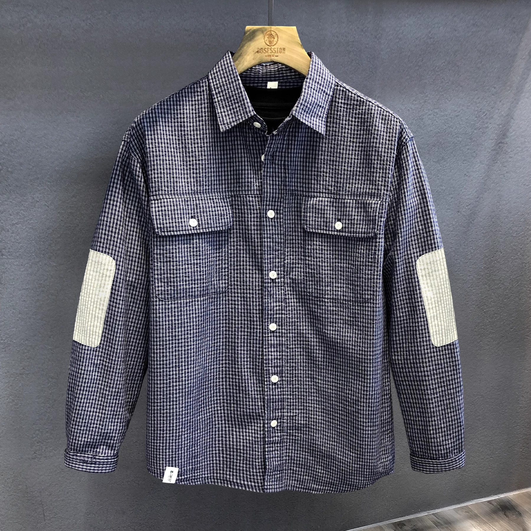 버블 텍스처 스트라이프 고급 센스 레트로 패치 버블 잘 생긴 셔츠 남자의 봄과 가을 새로운 캐주얼 긴 소매 셔츠 트렌디스토어 가기