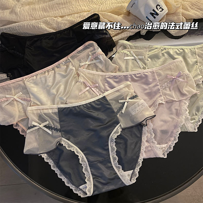 달빛 반짝임 ~ 고급 진주 새틴 바느질 레이스 추적없는 섹시한 활 대나무 잎 녹색 Crotch 플러스 사이즈 속옷 여성스토어 가기