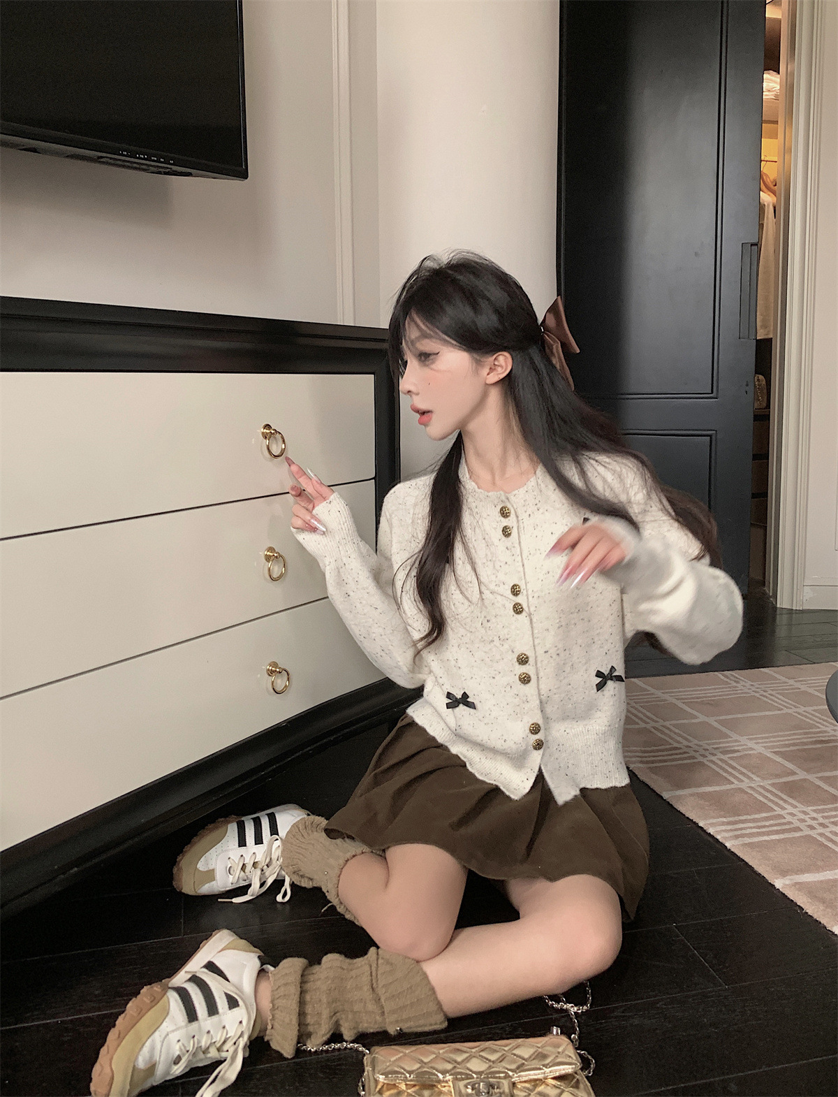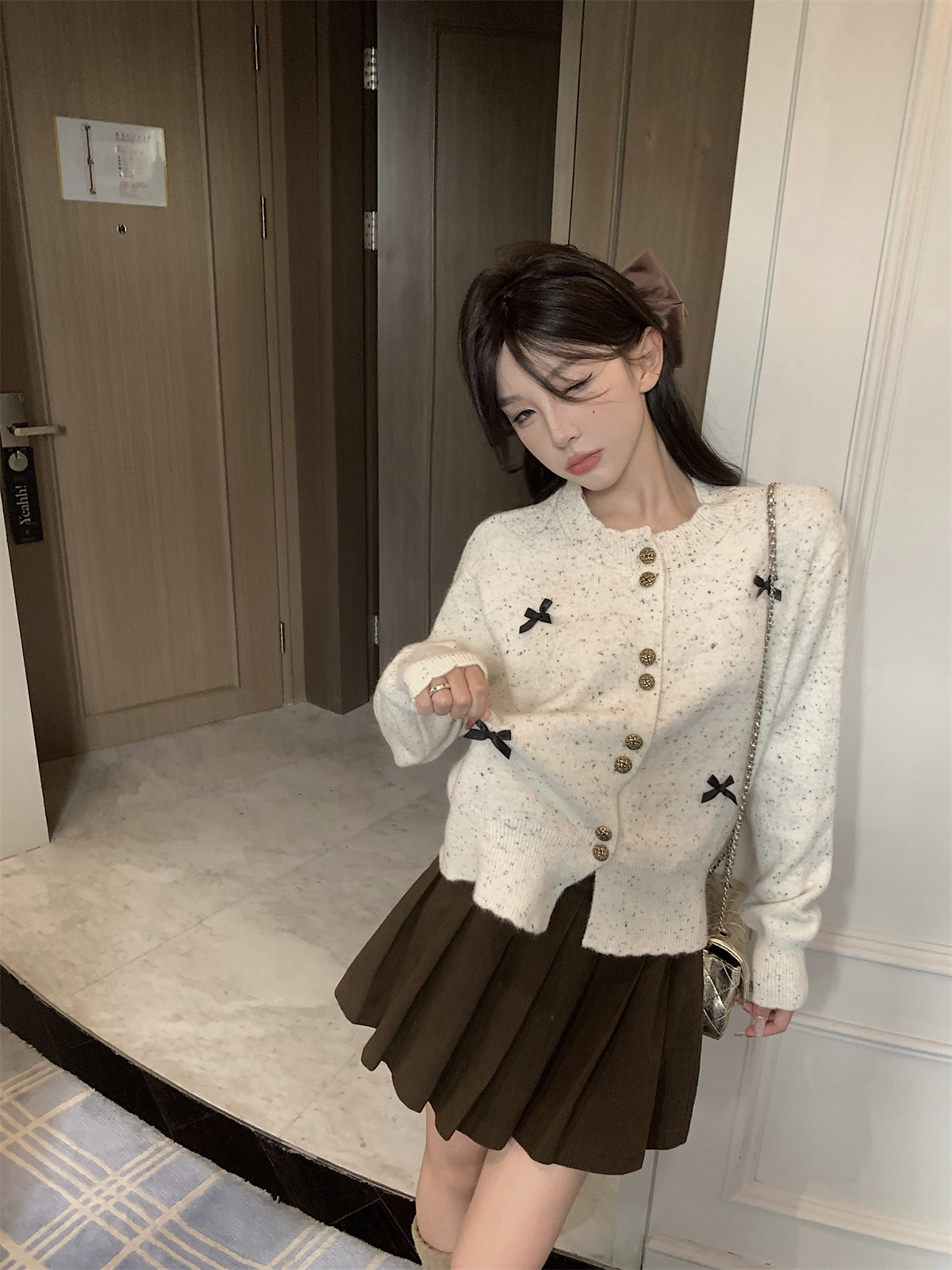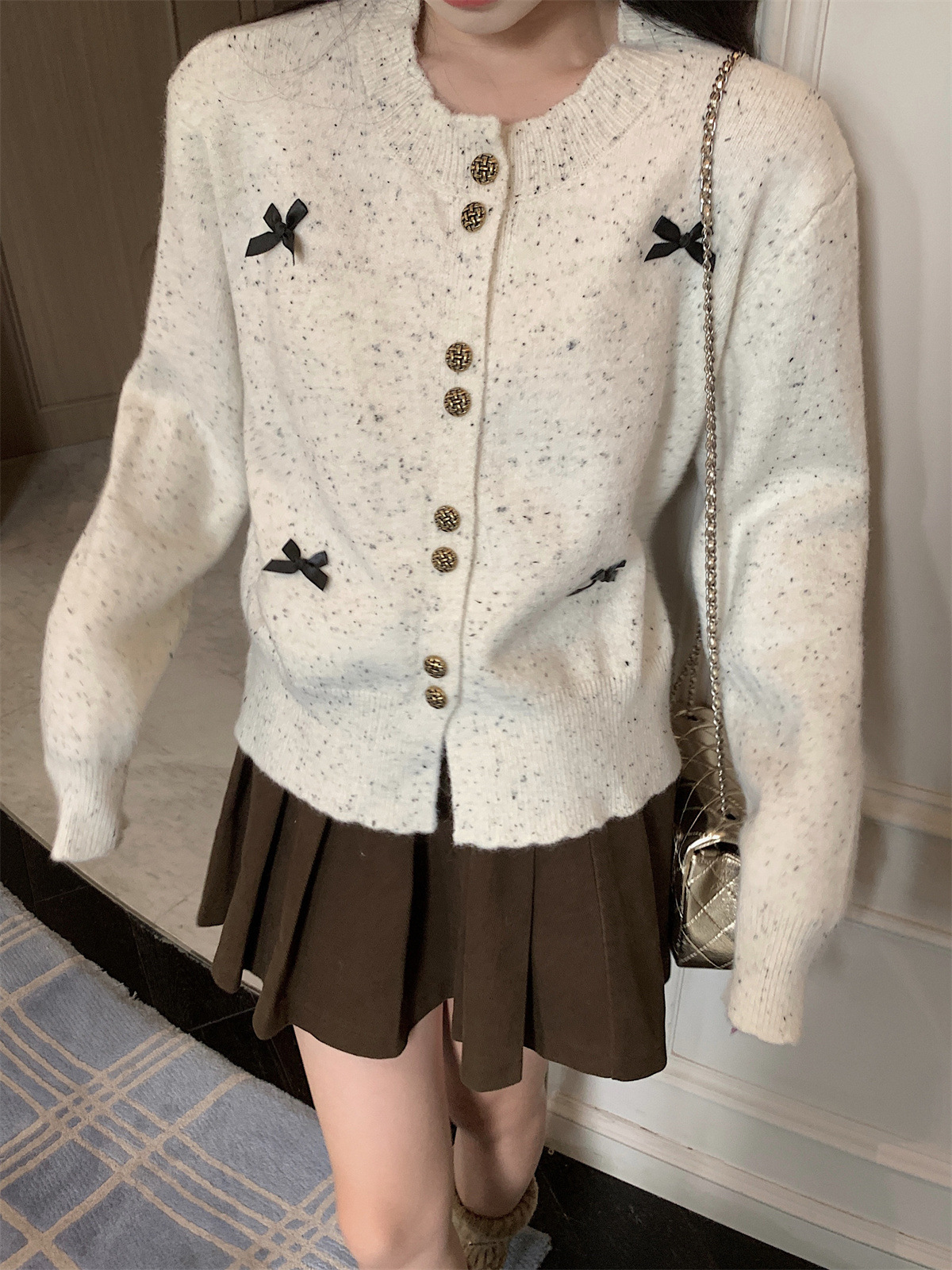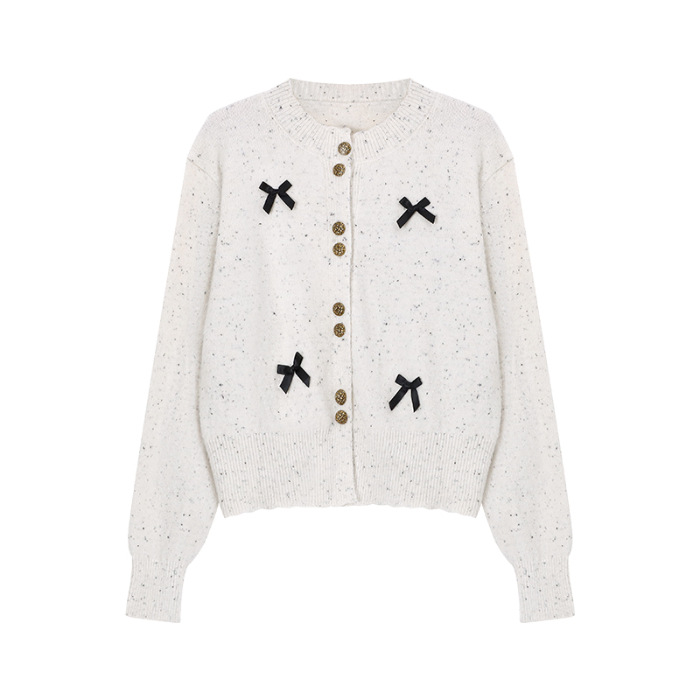 부드러운 스타일 달콤한 활 싱글 브레스트 긴팔 스웨터 니트웨어 여성용 초가을 하이 엔드 기질 슬림 핏 탑스토어 가기