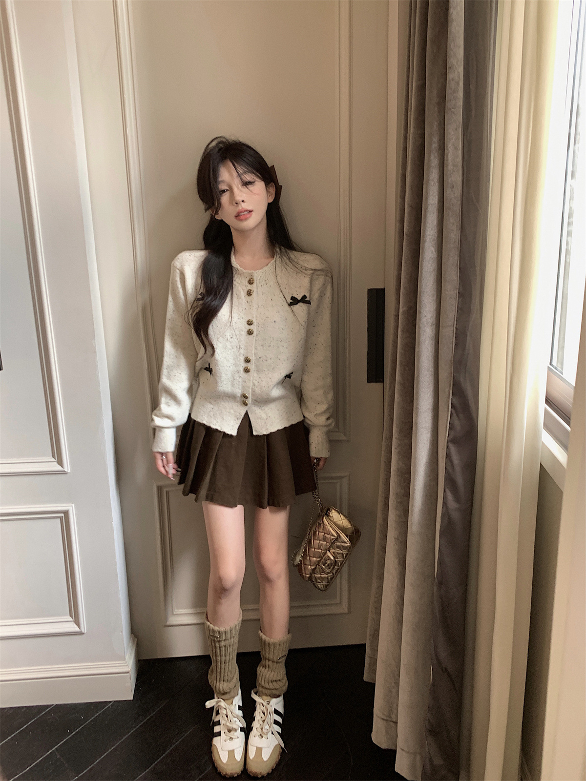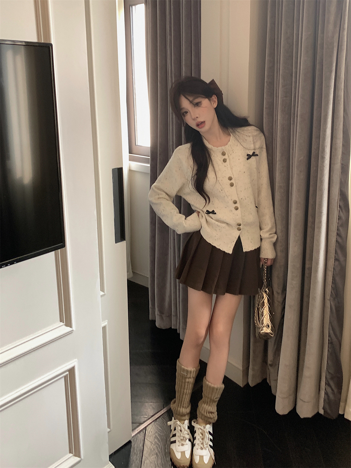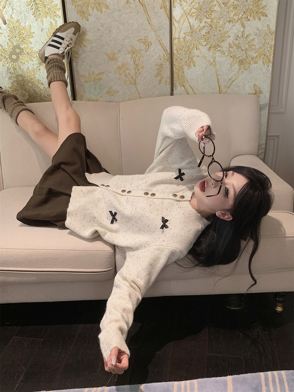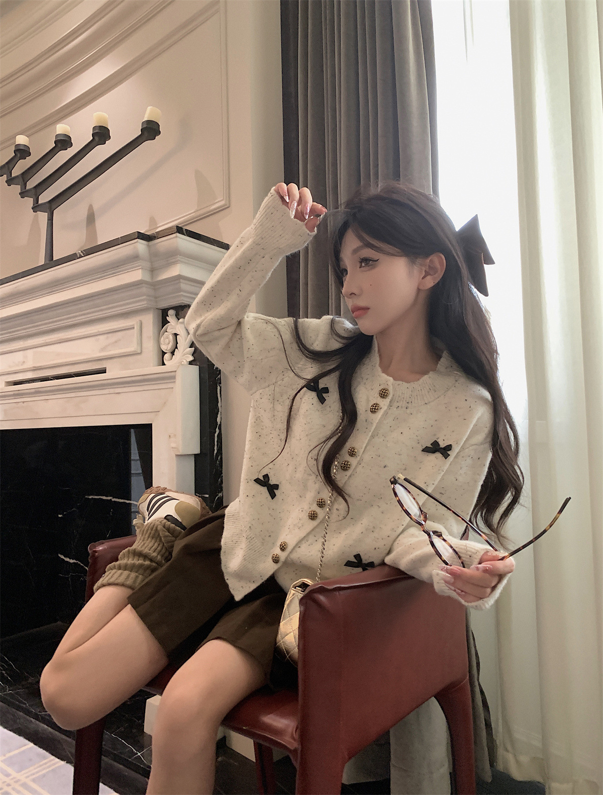 부드러운 스타일 달콤한 활 싱글 브레스트 긴팔 스웨터 니트웨어 여성용 초가을 하이 엔드 기질 슬림 핏 탑스토어 가기