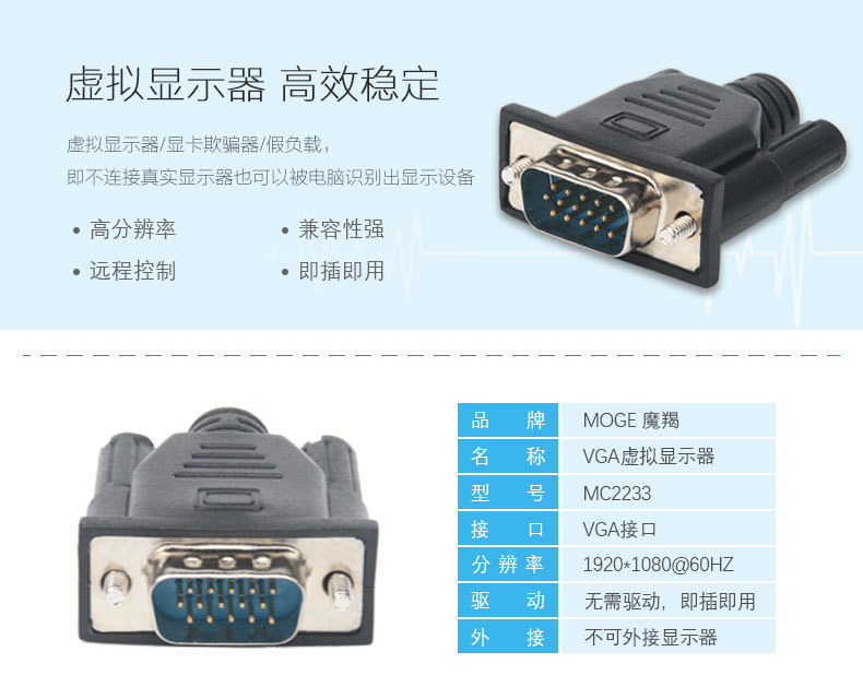VGA 그래픽 카드 스푸핑 VGA 가상화 1080P 그래픽 카드 스푸핑 게임 원격 끊기 더미로드 EDID스토어 가기