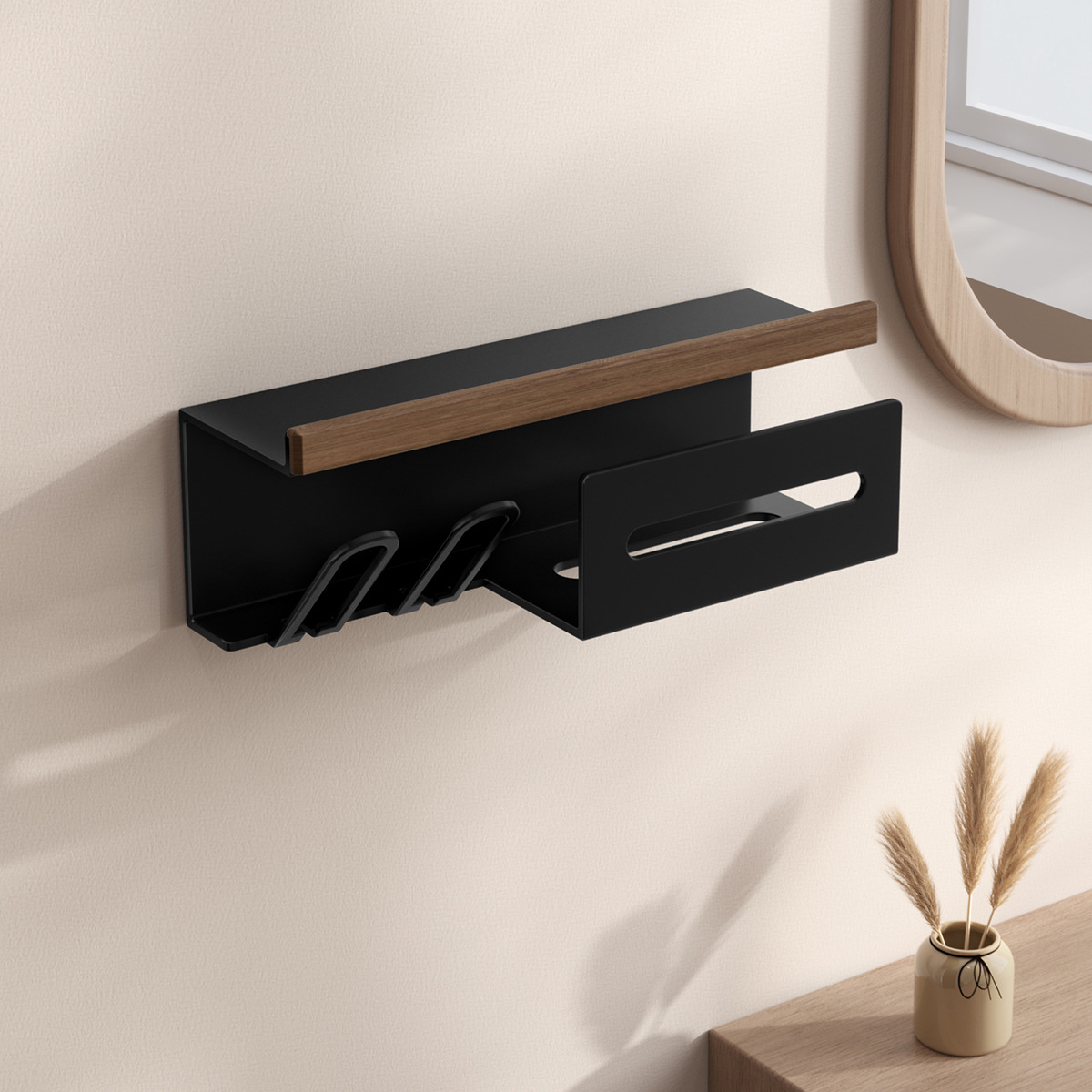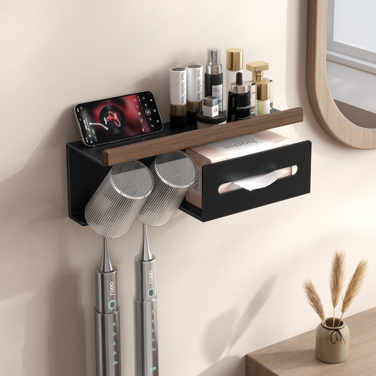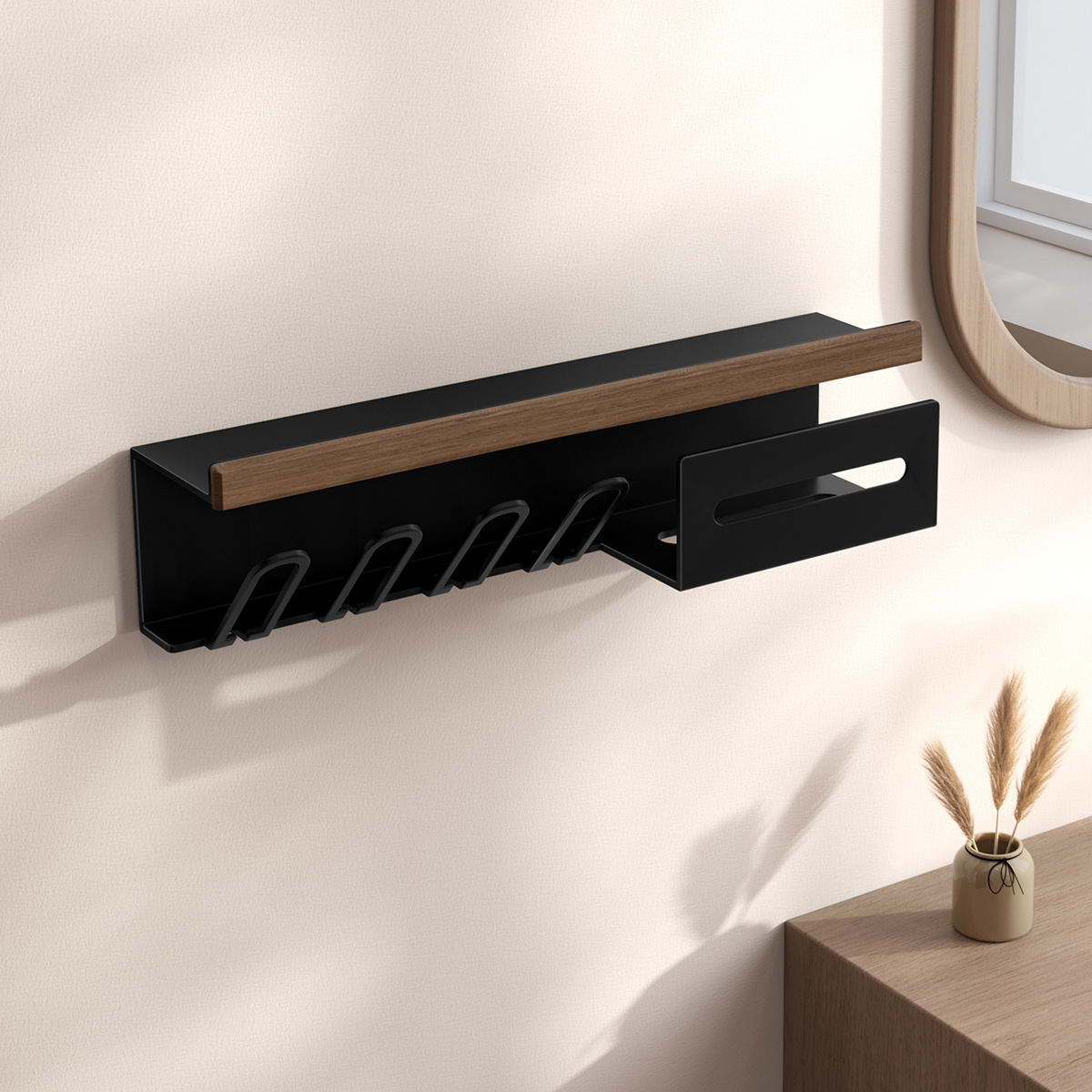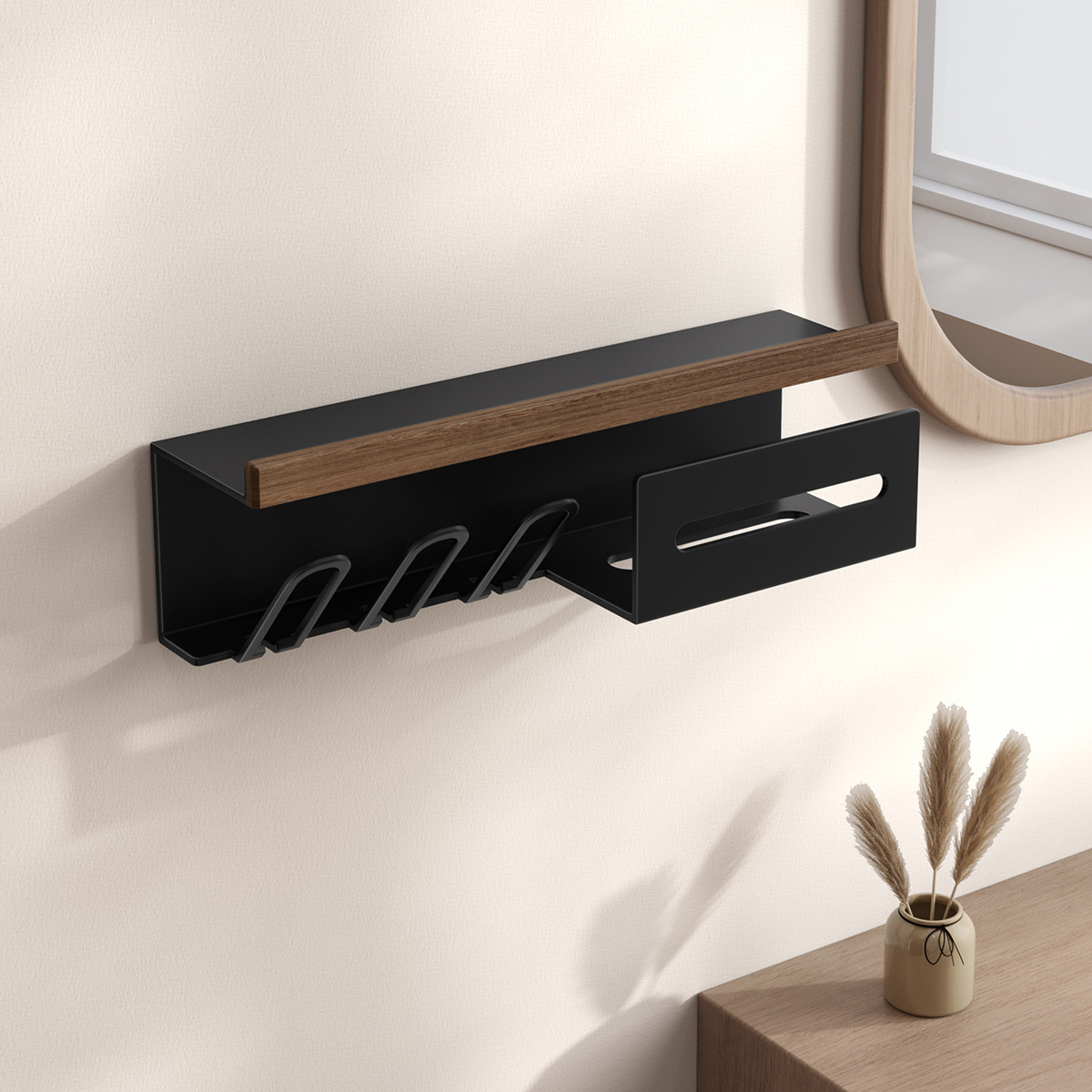 • 월넛 다기능 칫솔꽂이 - 블랙 2인용(펀칭 없음/펀칭 겸용)