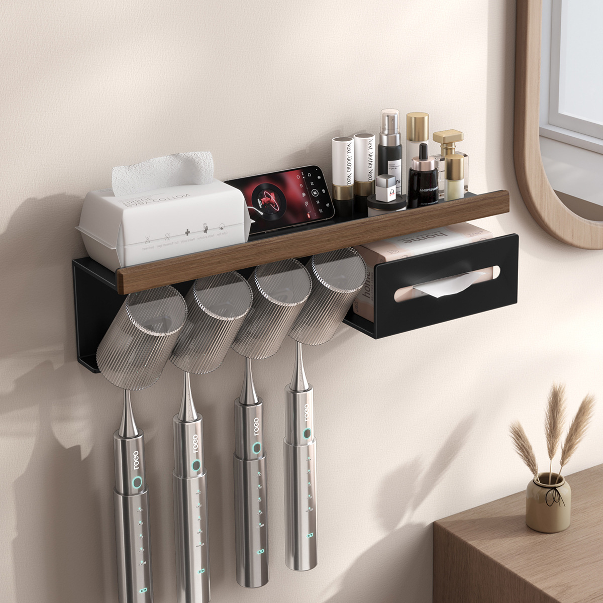 • 월넛 다기능 칫솔꽂이 - 블랙 4인용(펀칭 없음/펀칭 겸용)
