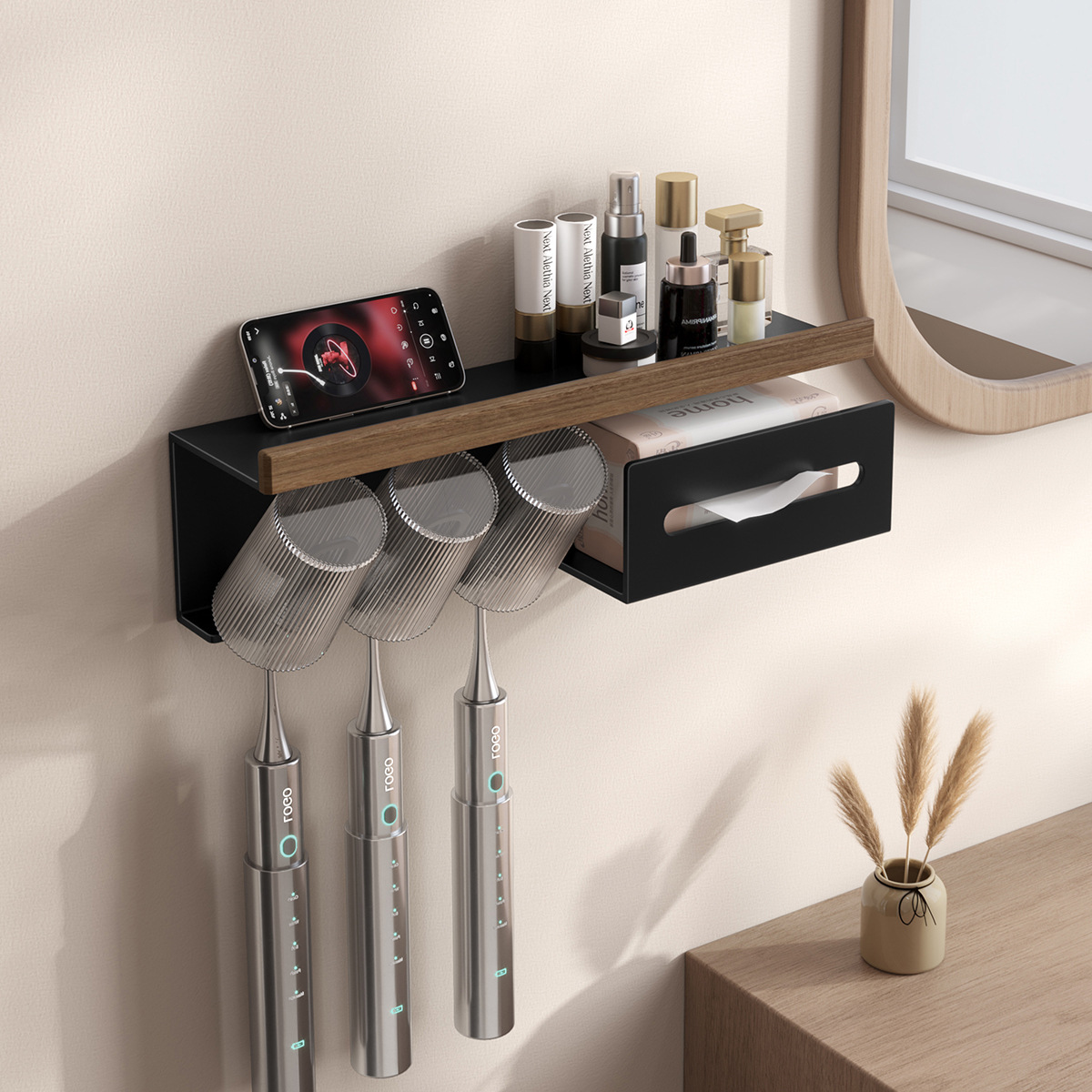 • 월넛 다기능 칫솔꽂이 - 블랙 3인용(펀칭 없음/펀칭 겸용)