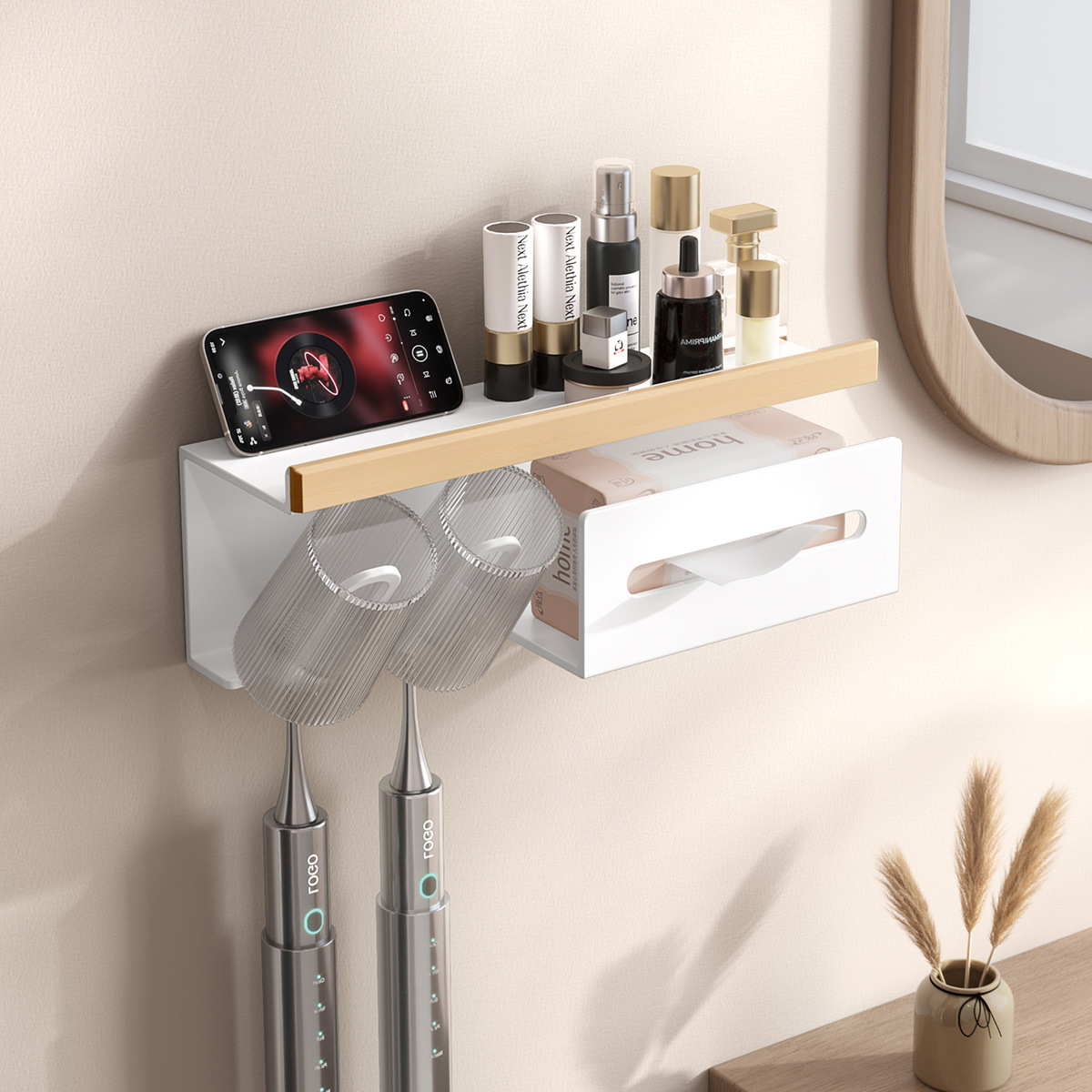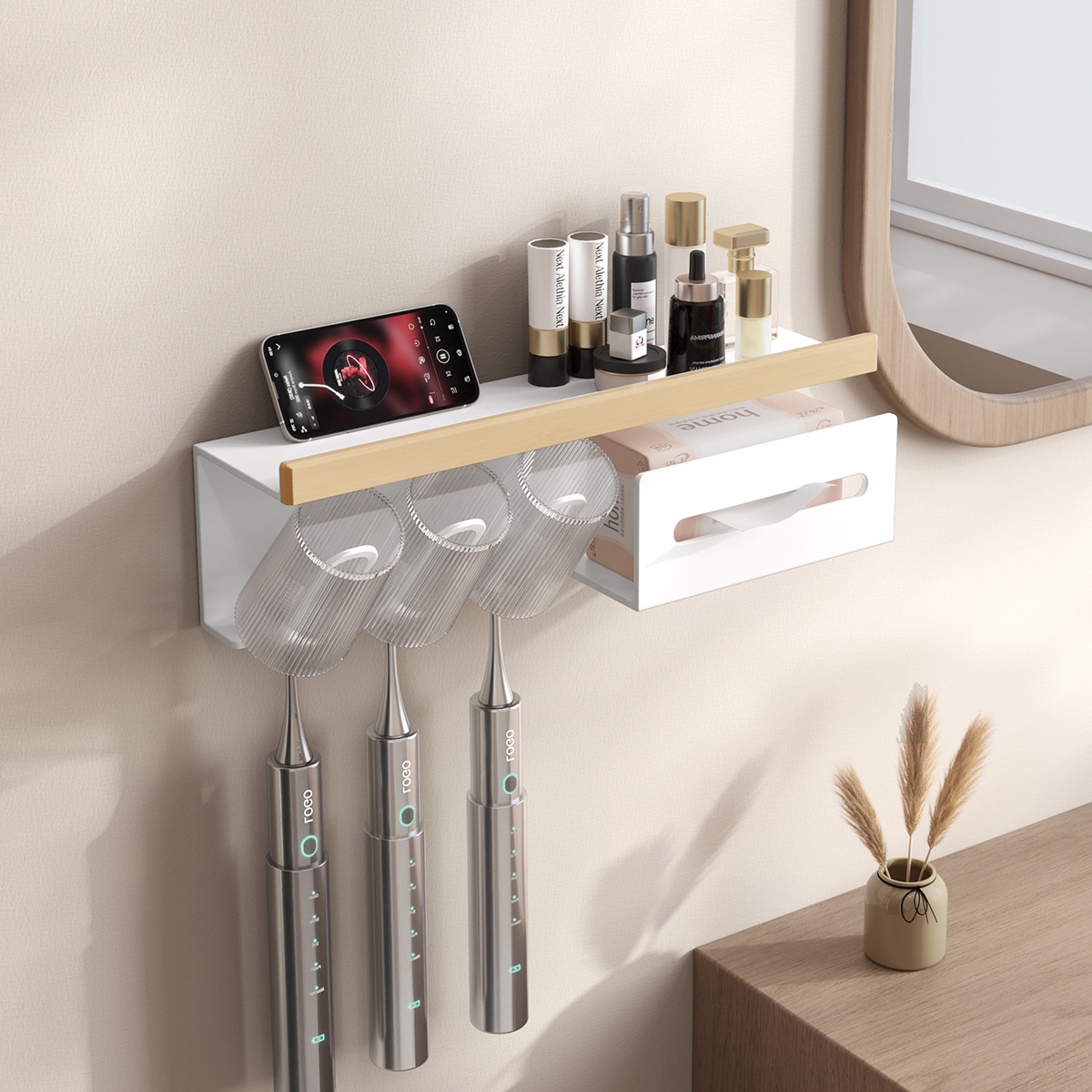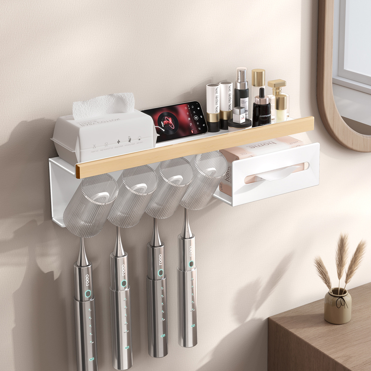 • 너도밤나무 다기능 칫솔꽂이 - 유리컵이 포함된 흰색 이중 시트(펀칭 없음/펀칭 겸용)
