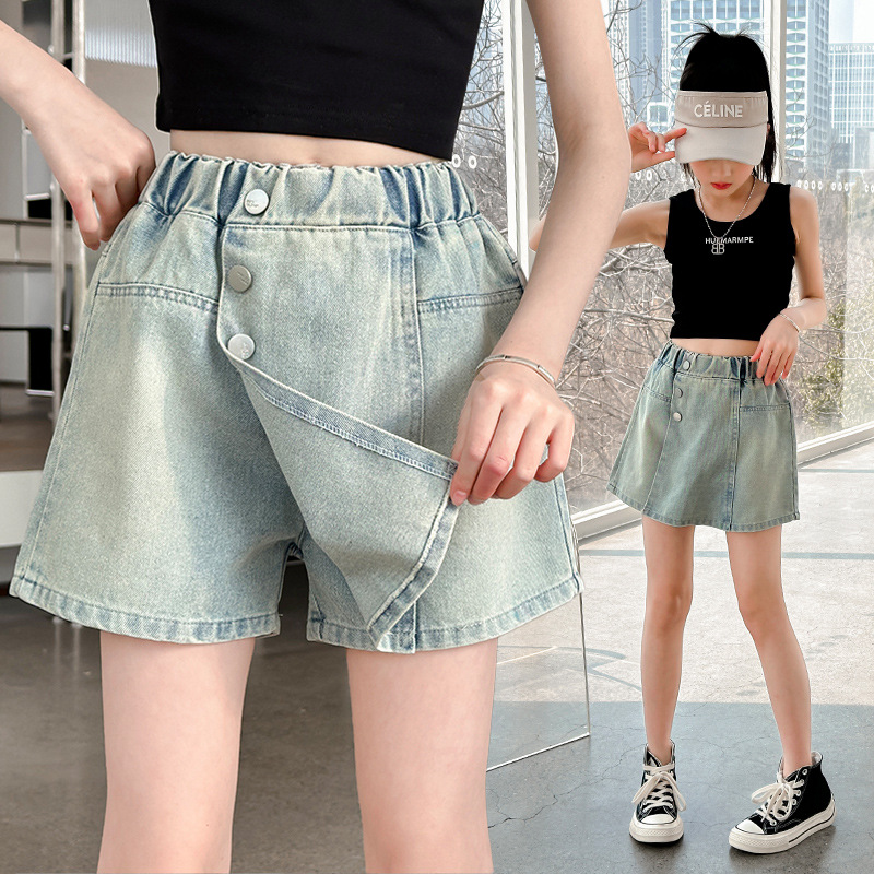외형 바지 어린이 여름 바지 소녀 큰 어린이 치마 계절 바지 서양식 청바지 여름 소녀 반바지 여름 얇은스토어 가기