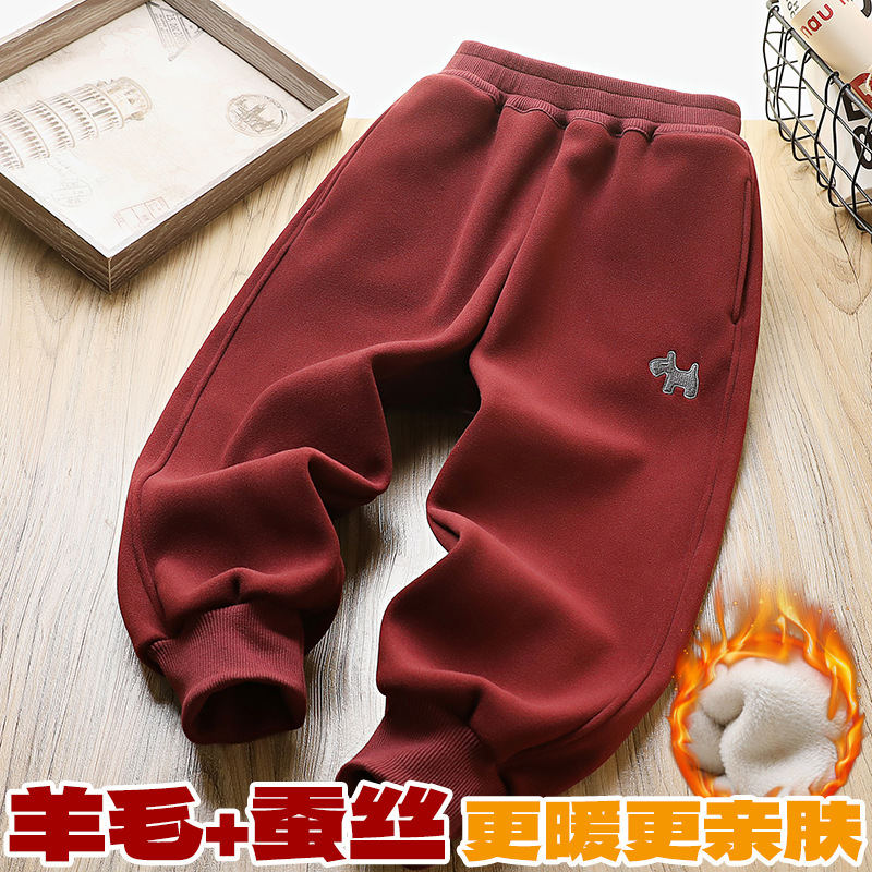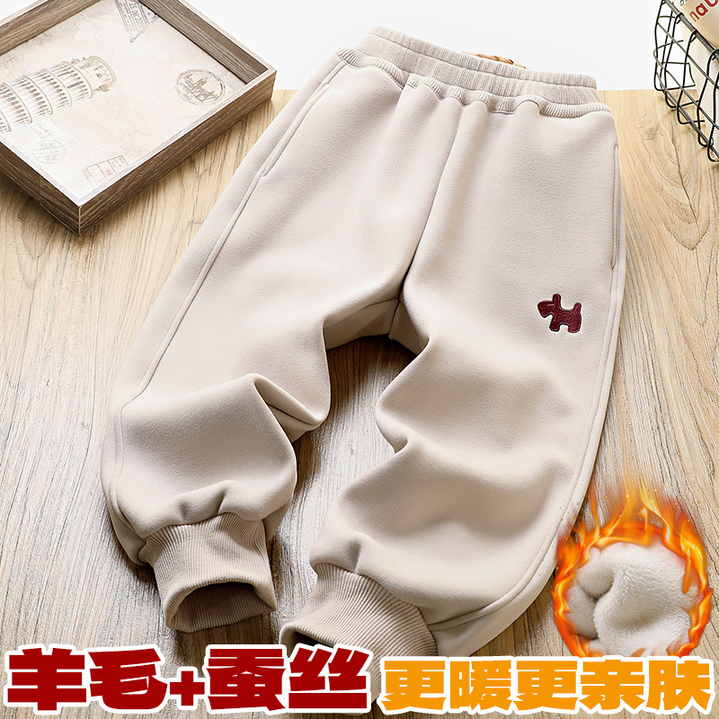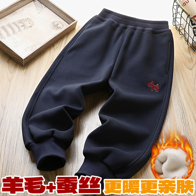 소년 바지 가을과 겨울 어린이 기모 바지 2024 겨울 새로운 중 큰 어린이 바지 소년 캐주얼 바지 트렌디스토어 가기