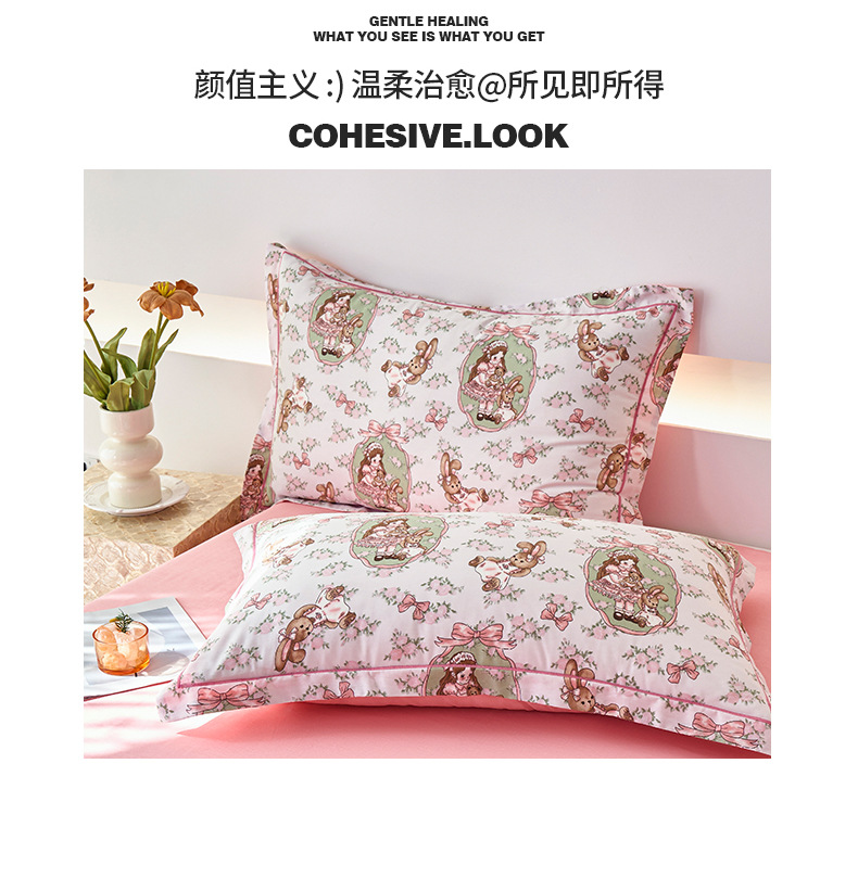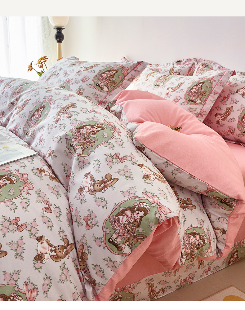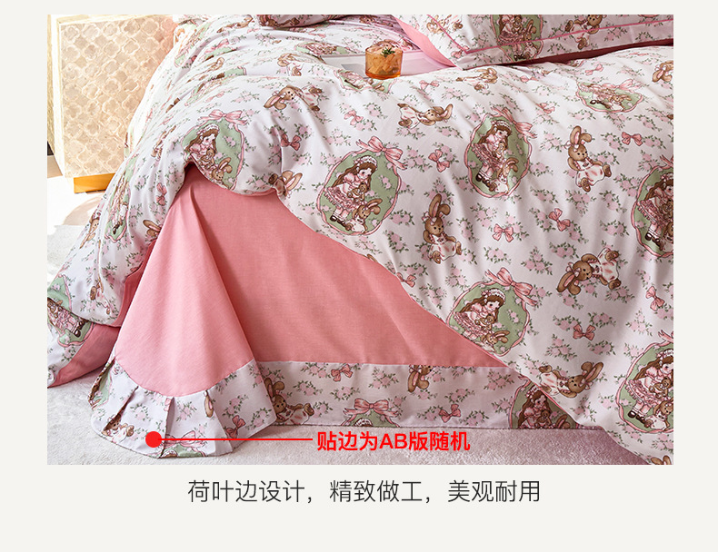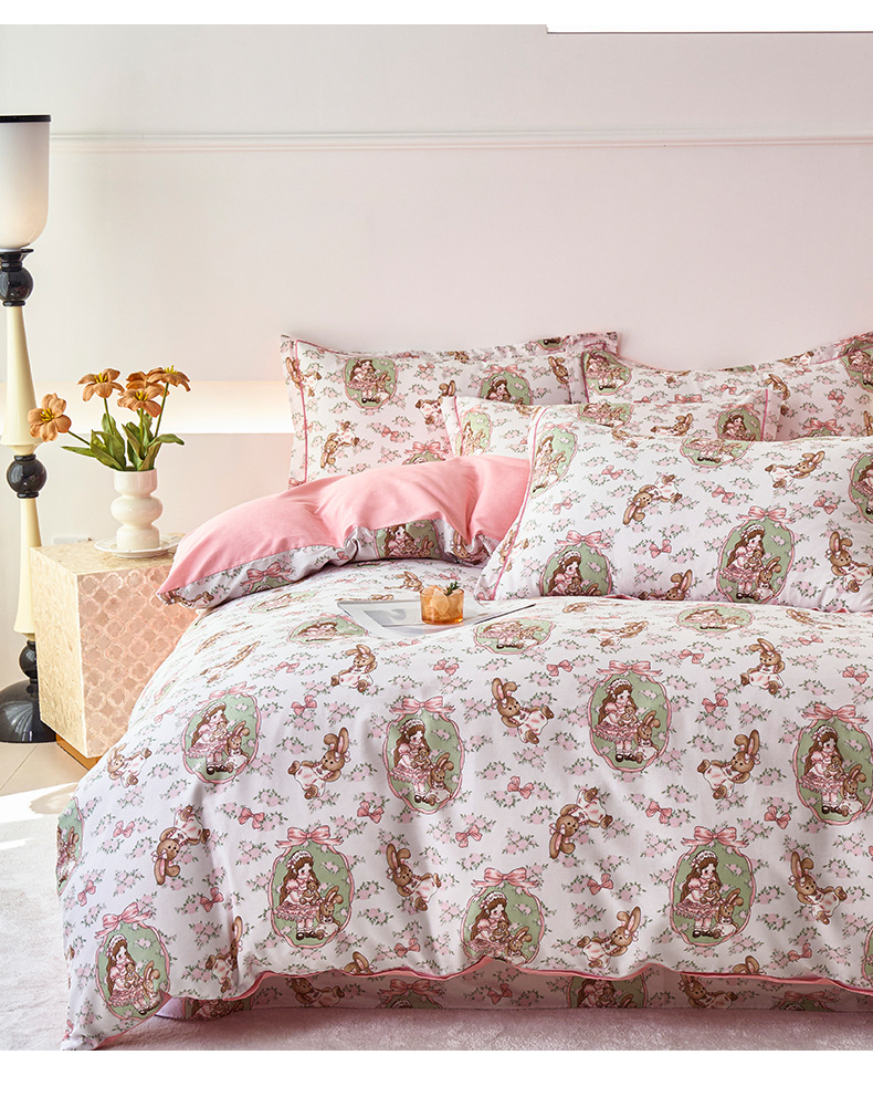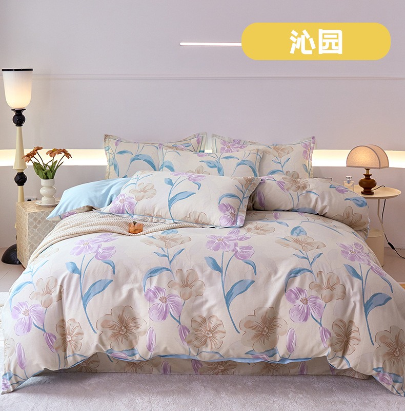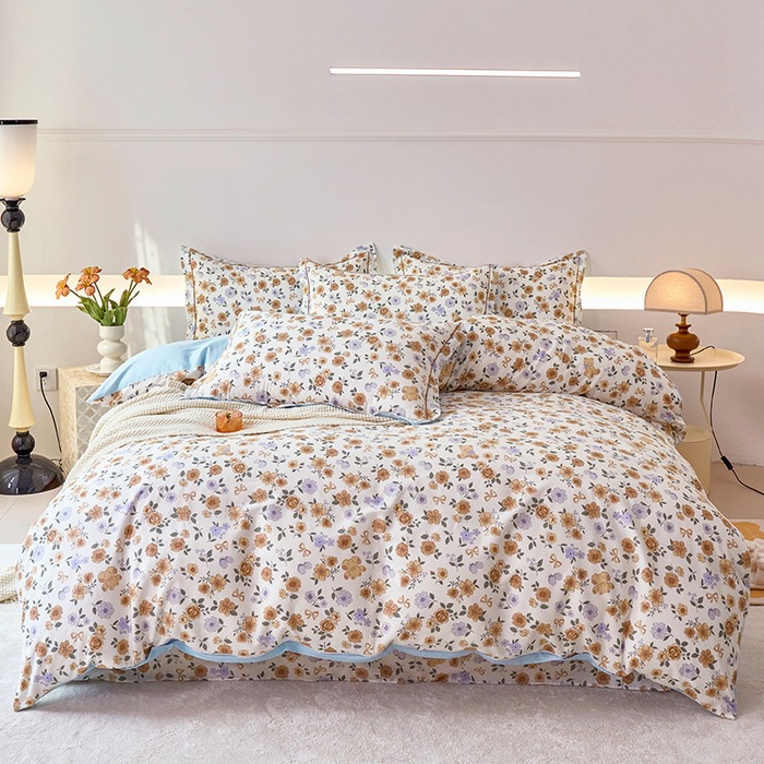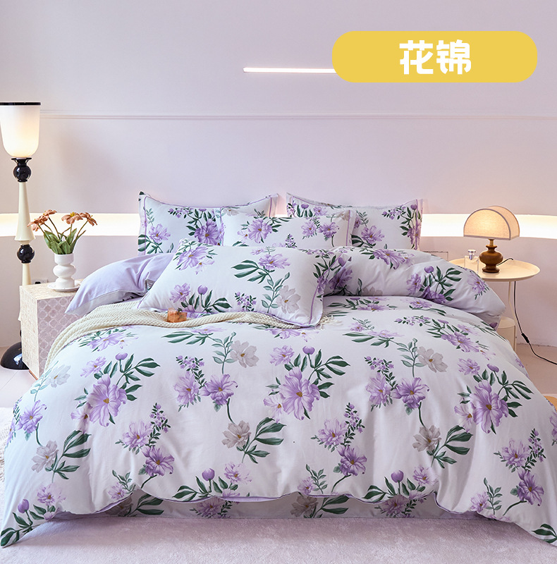 2024 새로운 교수형 가장자리 한 단어 자수 면화 퀼트 커버 침대 시트 침구 4 피스 세트