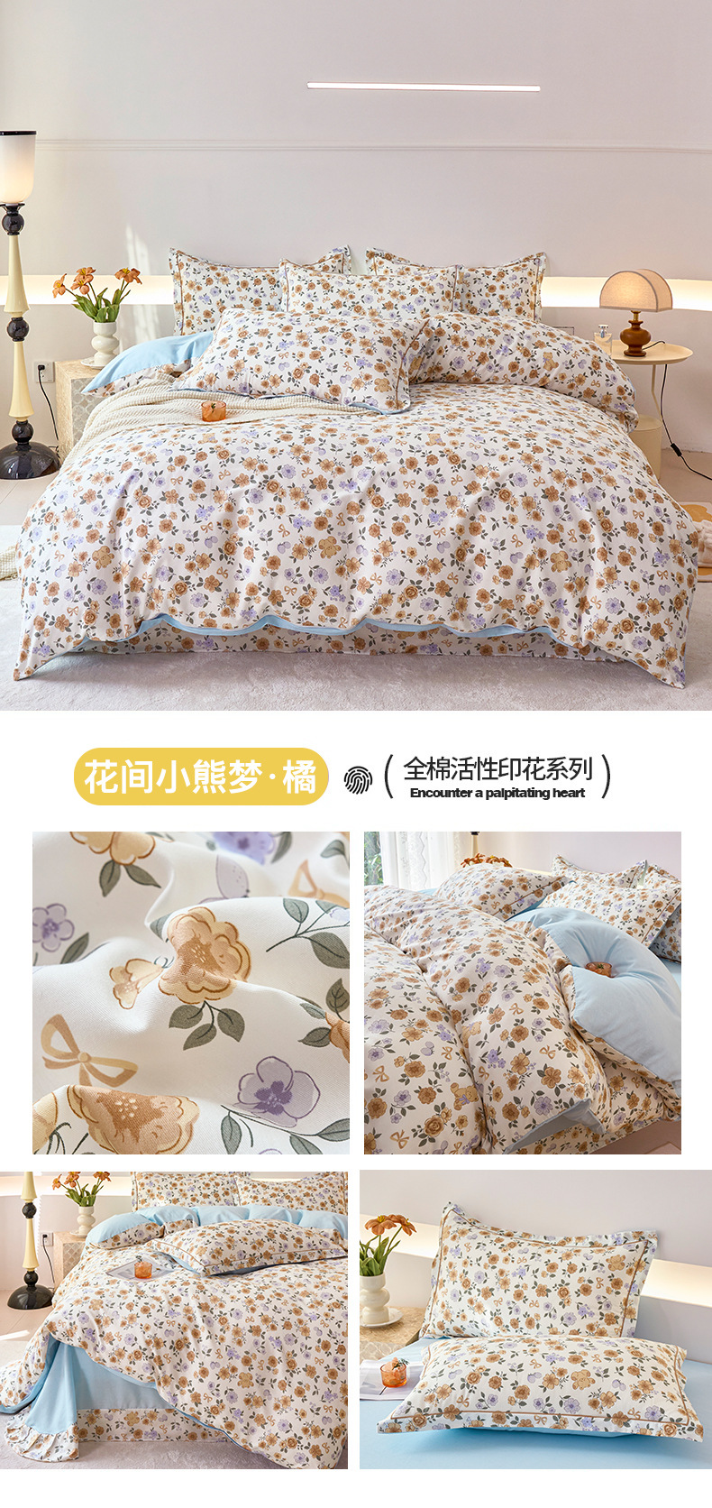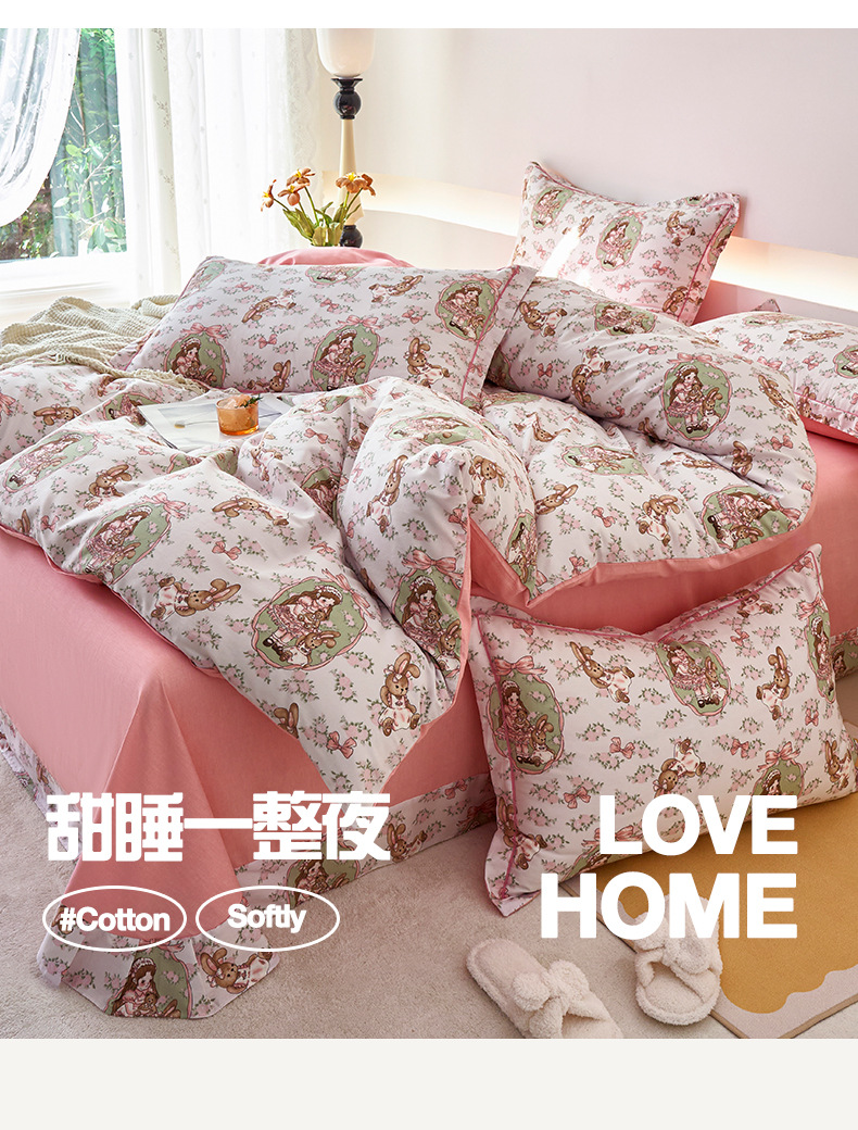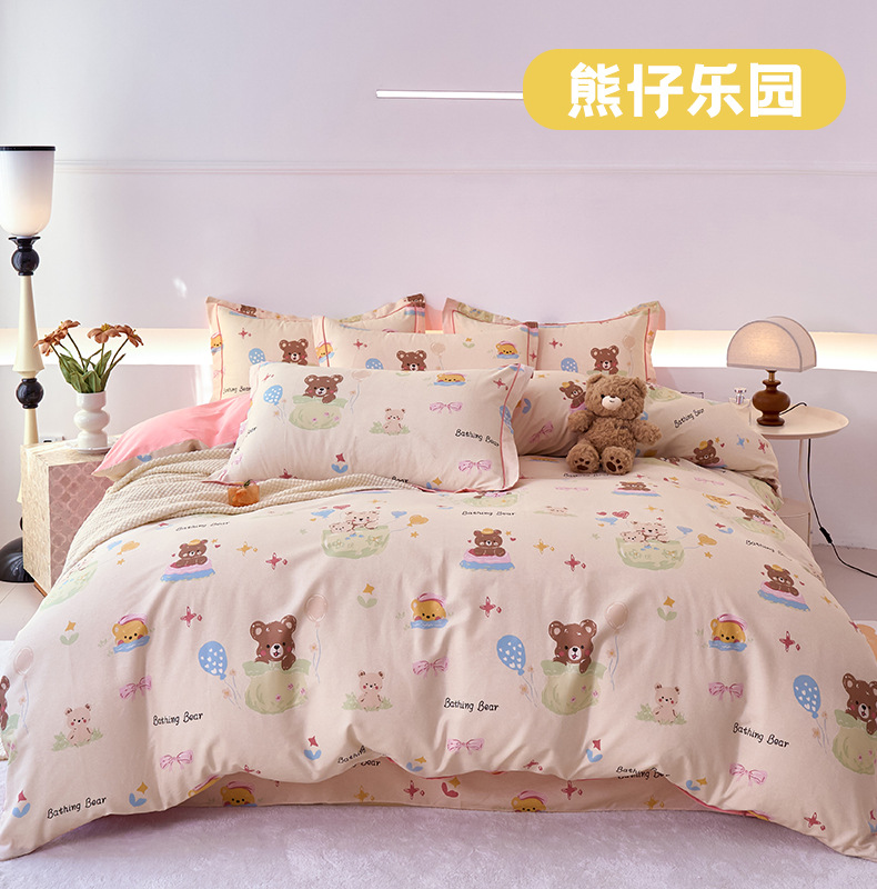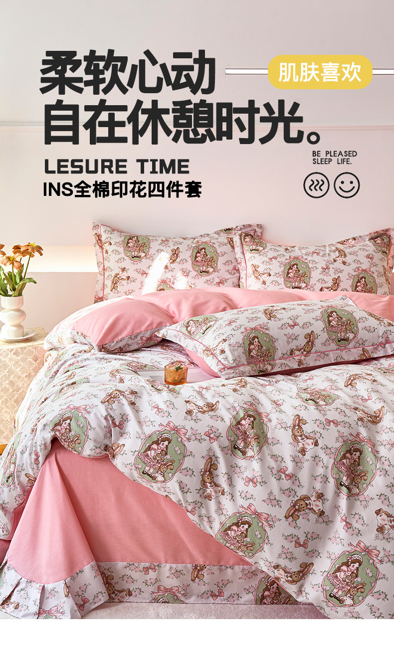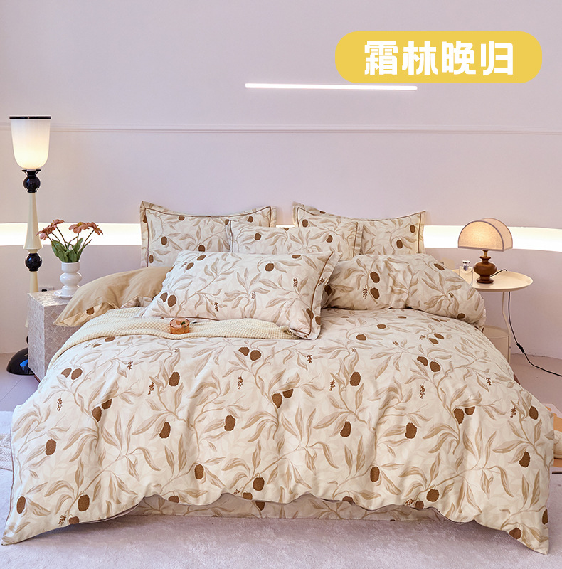 2024 새로운 교수형 가장자리 한 단어 자수 면화 퀼트 커버 침대 시트 침구 4 피스 세트스토어 가기