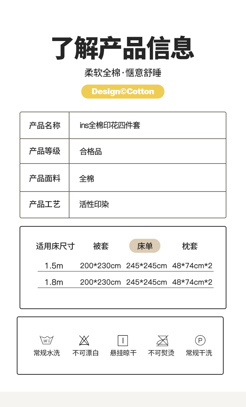 • 1.5m 행잉 엣지 침대 시트 4종 세트
