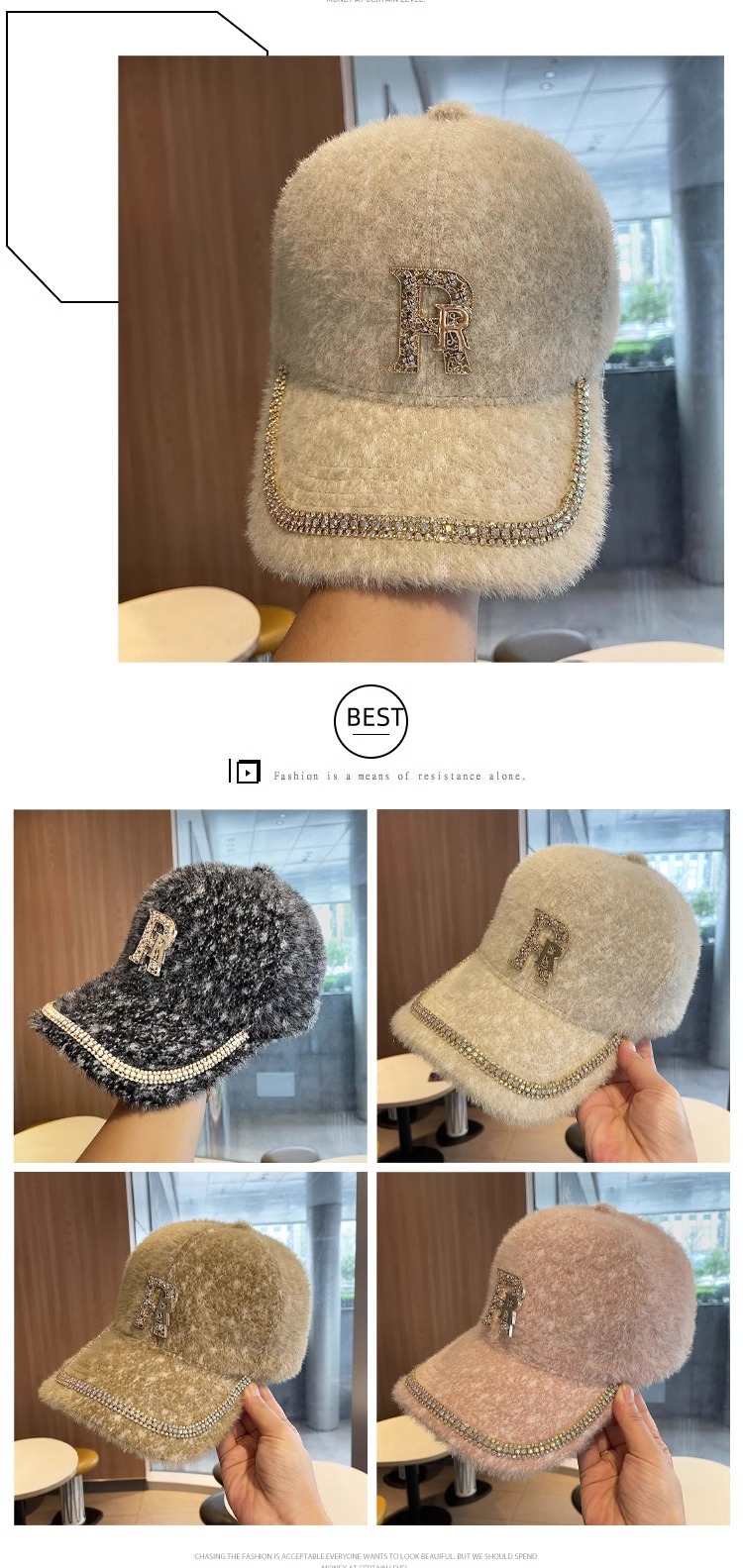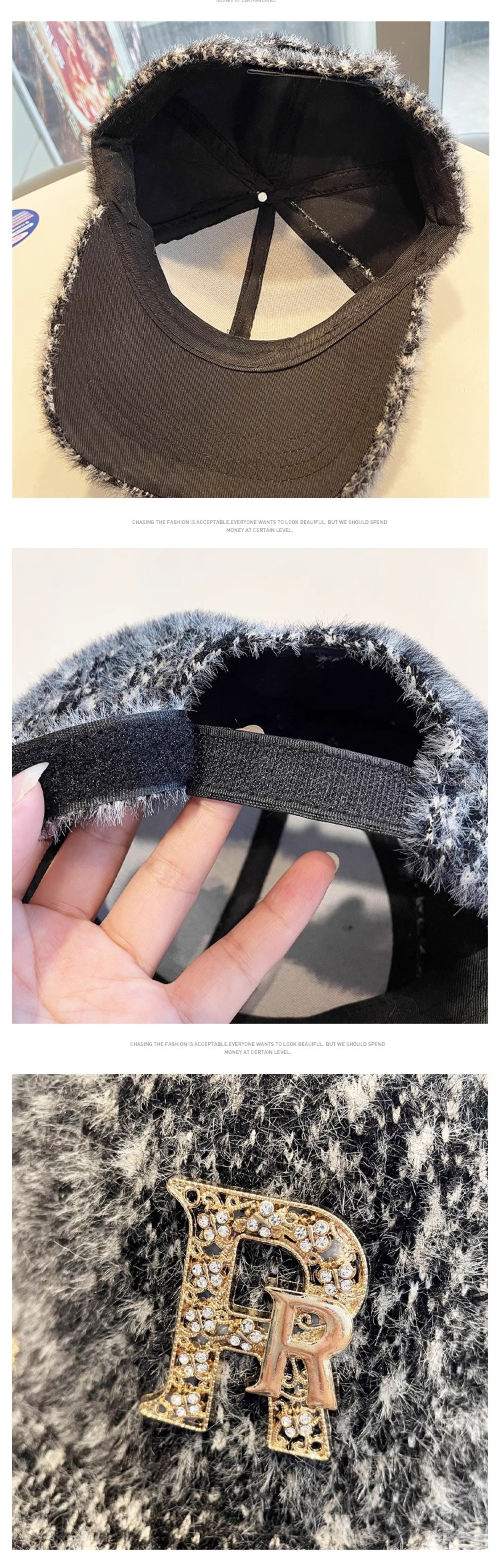 수정석 레터링 야구 모자 여성용 가을 겨울 따뜻한 모자 한국 스타일 패션 다용도 밍크털 챙모자 인스