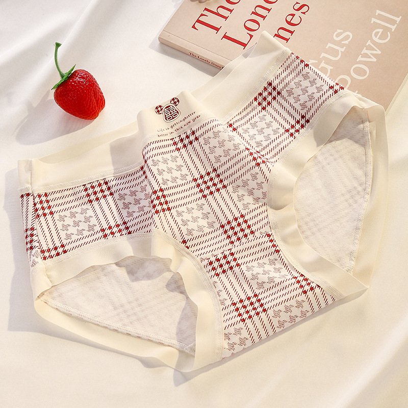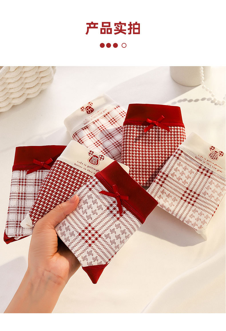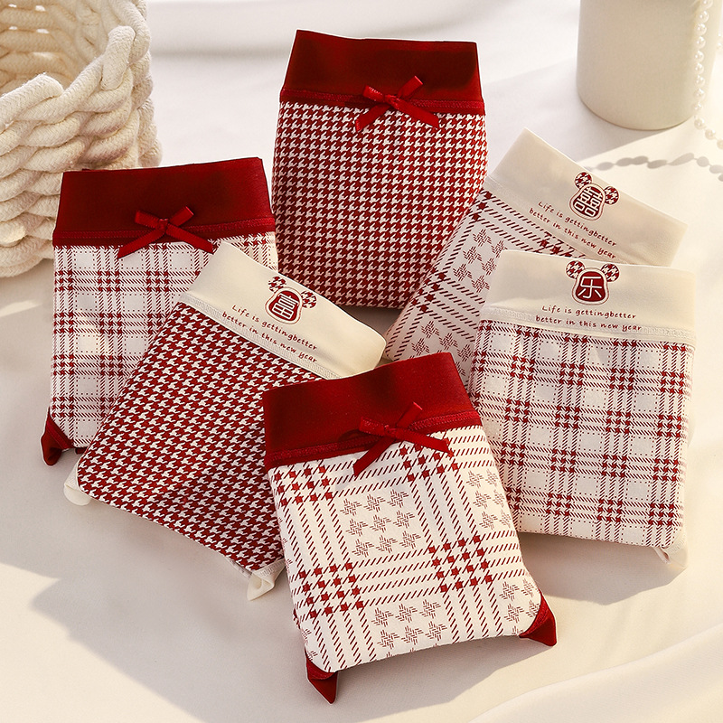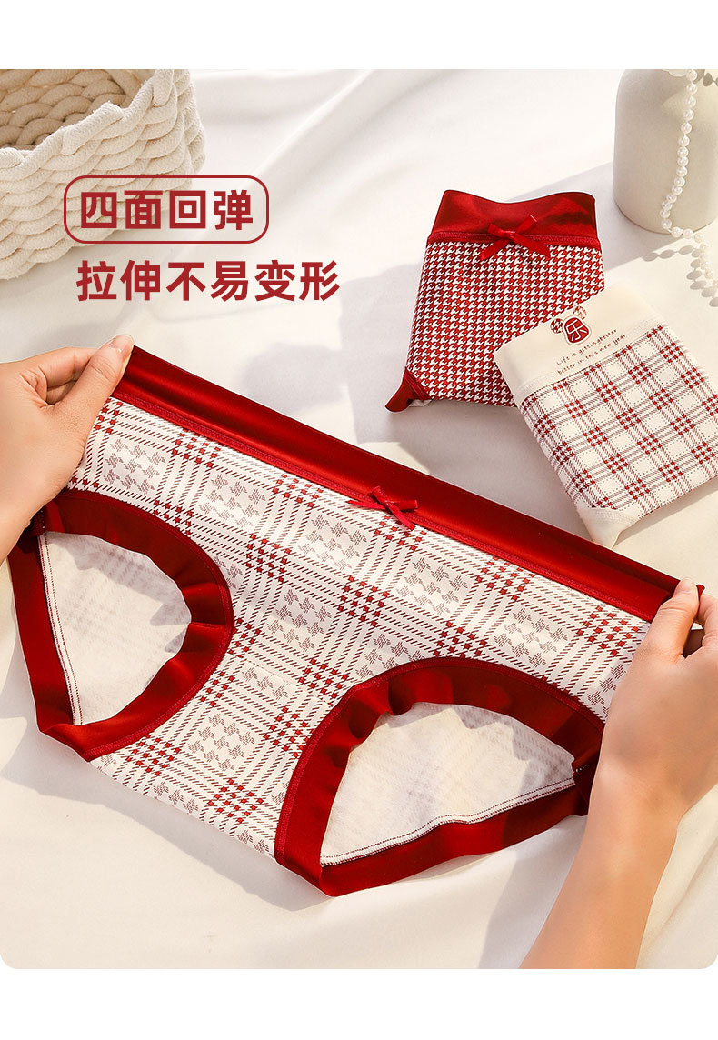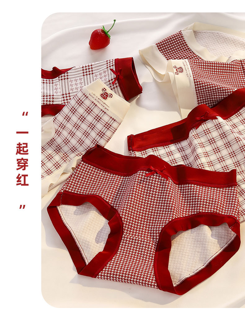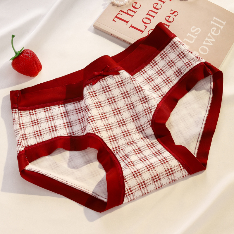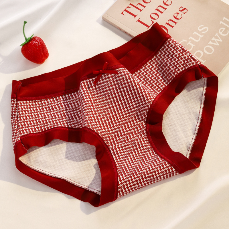 Ancora Red Traceless Cotton 속옷 여성용 항균 코튼 Crotch 중간 허리 신년 웨딩 레드 속옷스토어 가기