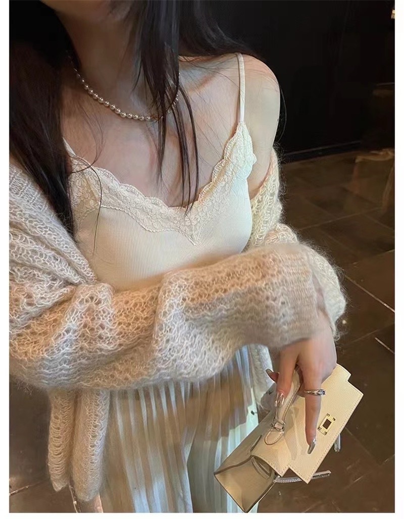 가을과 겨울 새로운 순수한 욕망 원피스 가슴 패드 샌딩 레이스 조끼 세련된 내부 슬링 슬림 핏 슬리밍 탑스토어 가기