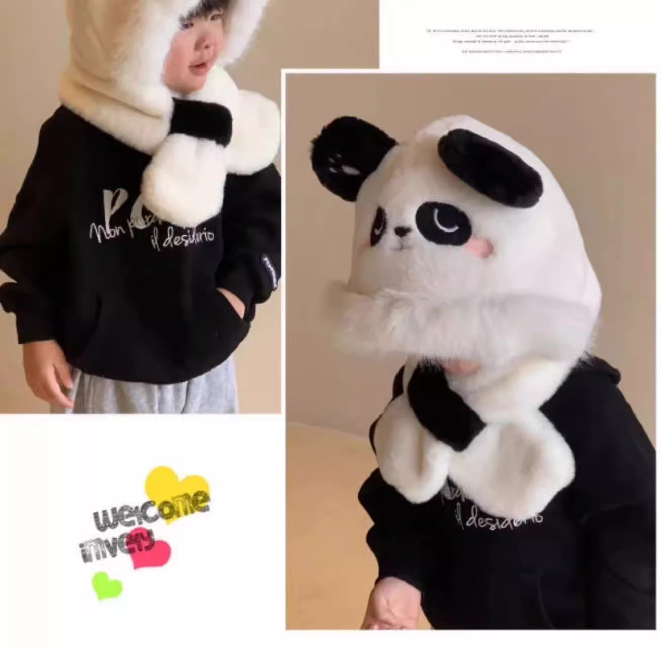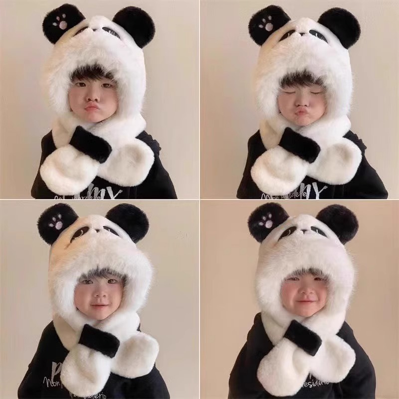어린이 모자와 스카프 새로운 한국 스타일 따뜻한 두꺼운 봉제 팬더 귀여운 슈퍼 귀여운 아기 귀 보호 모자 겨울스토어 가기