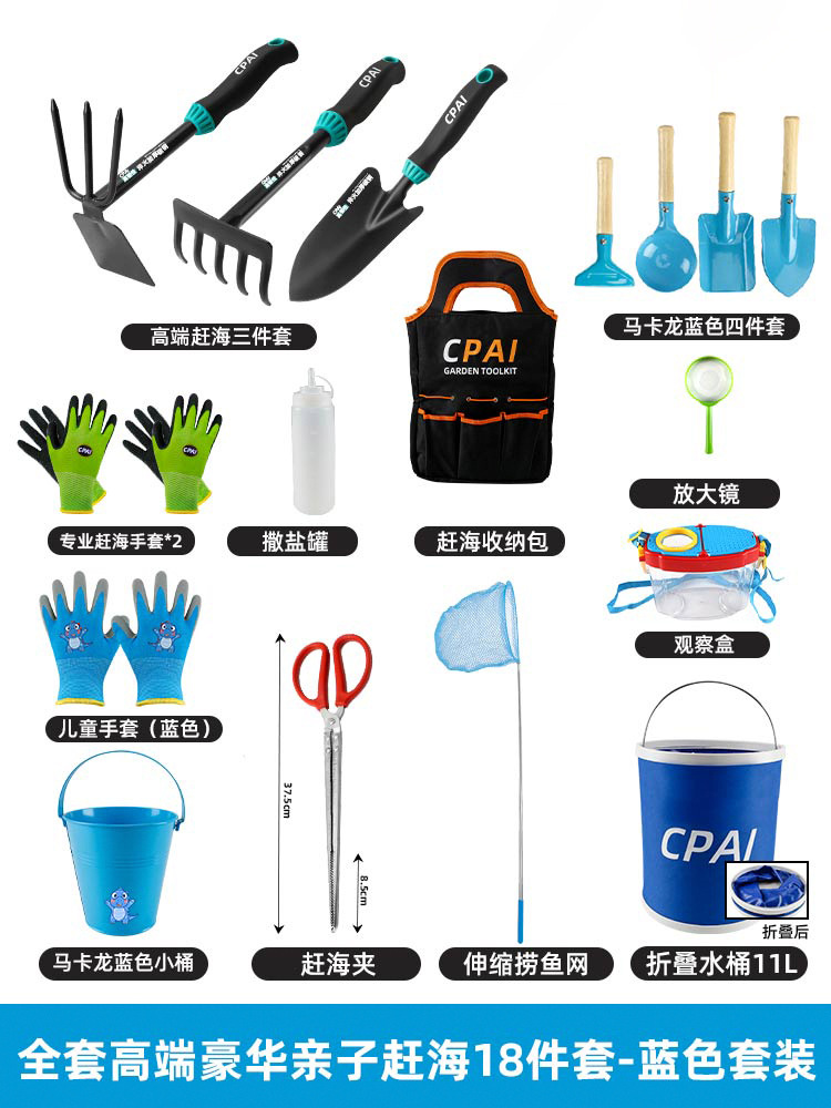 바다 도구 세트 성인 해변 모래 파기 조개 달팽이 파고 바다 유물 장비 어린이 삽 갈퀴 도구