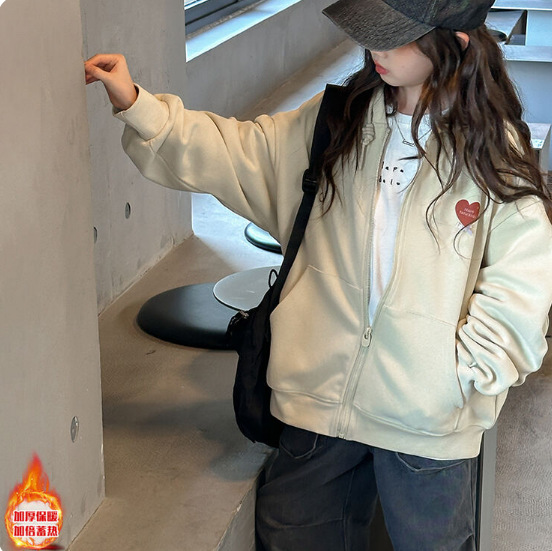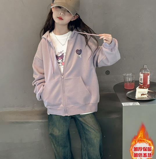 한국 스타일의 새로운 중대형 어린이 카디건 스웨터 후드 벨벳 재킷 느슨한 봄과 겨울 플러스 2024 여자 니트 스웨터스토어 가기