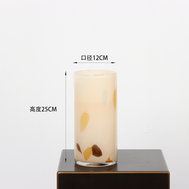 젠틀 인 밀크 옐로우 컬러 포인트 스트레이트 바스 캔들 컵 콤비네이션 수제 유약 꽃 꽃병 꽃 장식품 꽃 정렬 모델 룸스토어 가기